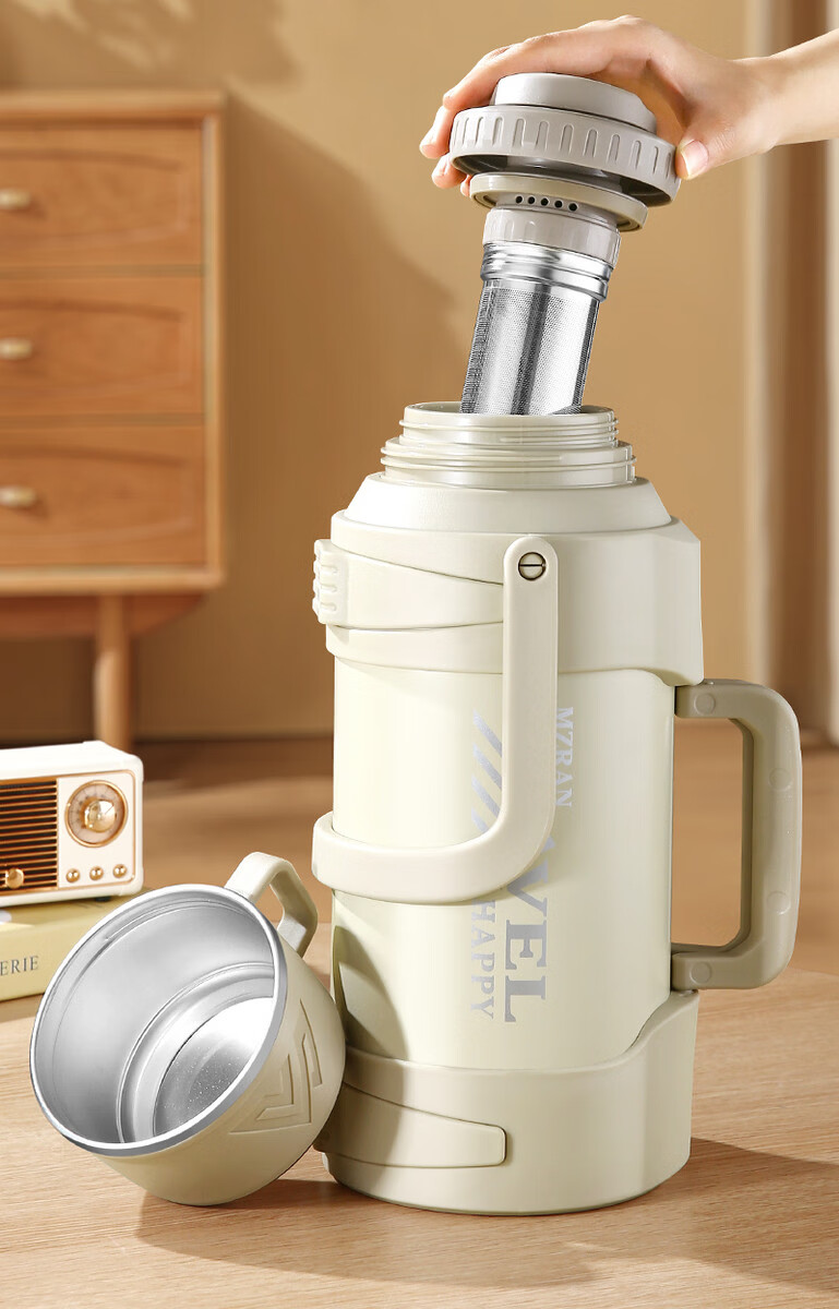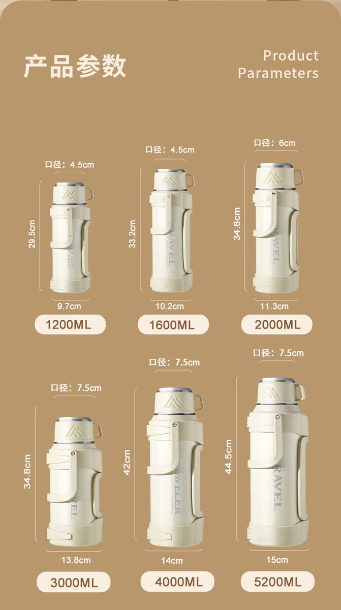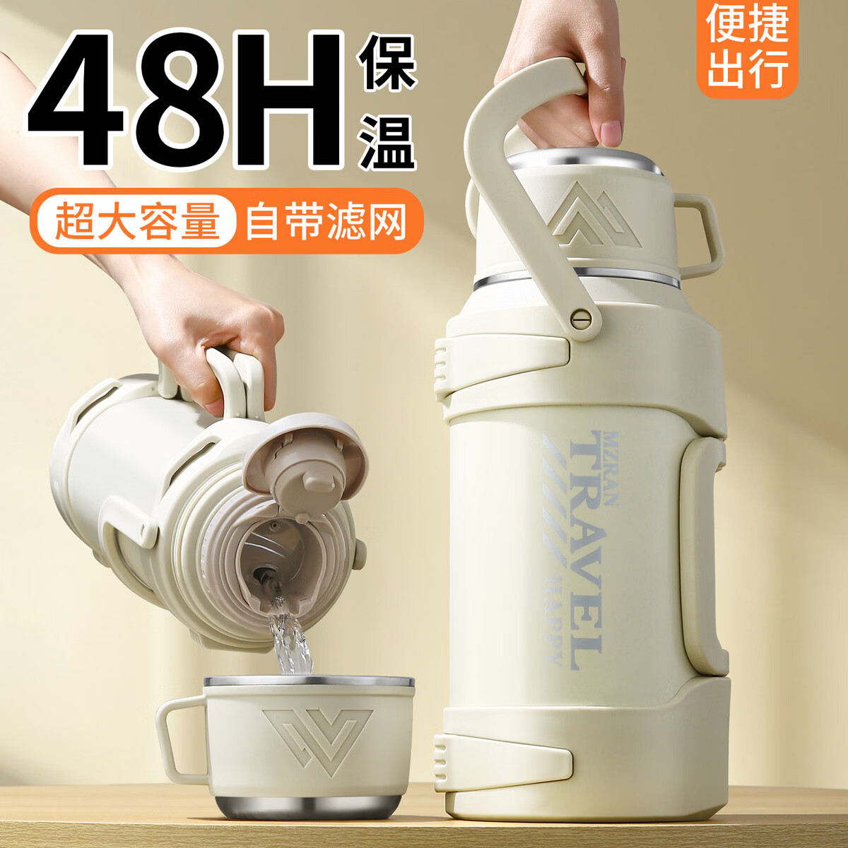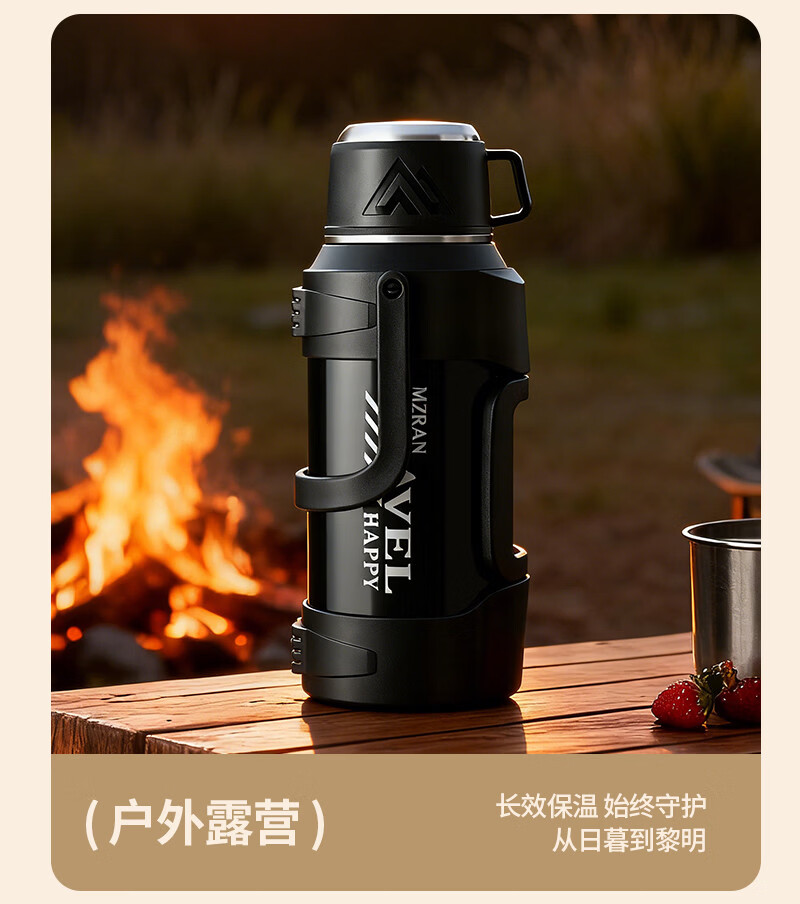 溥畔不锈钢大容量壶户外车载泡茶暖壶学生宿舍暖瓶 钢本色5200ml(约10斤水)