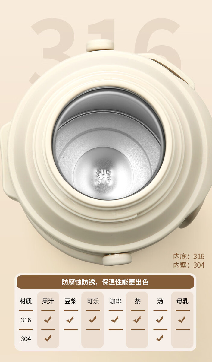 迪士尼保温壶家用玻璃内胆暖水壶办公室水壶学生宿舍保温瓶大容量热水瓶 【店长推荐】奶油白金 2L