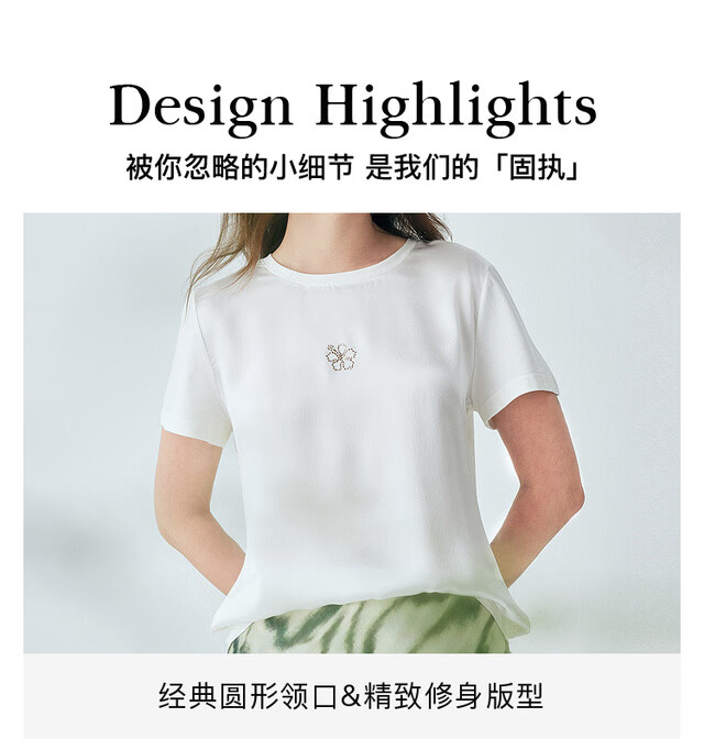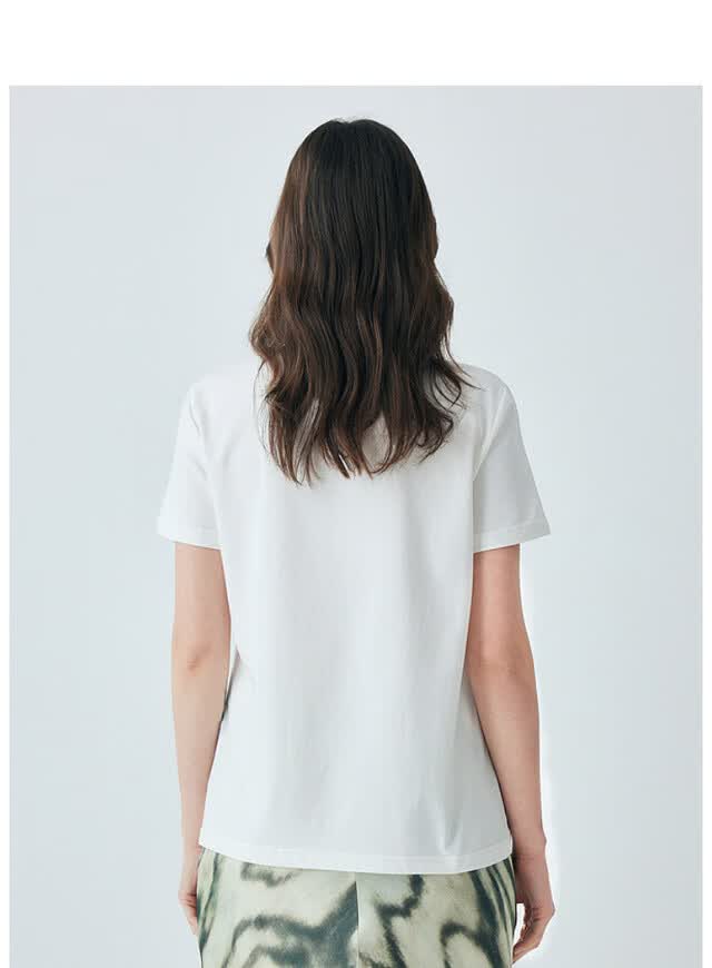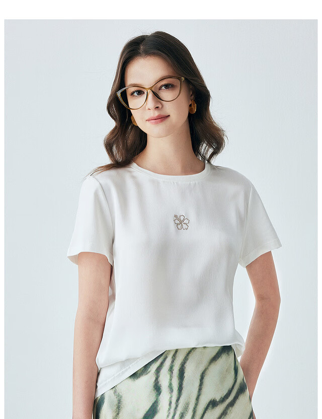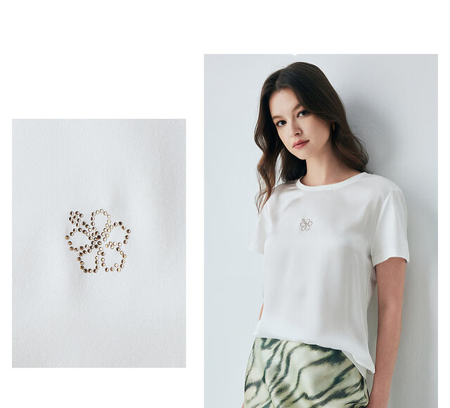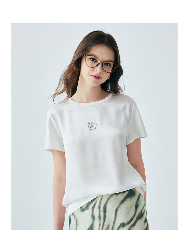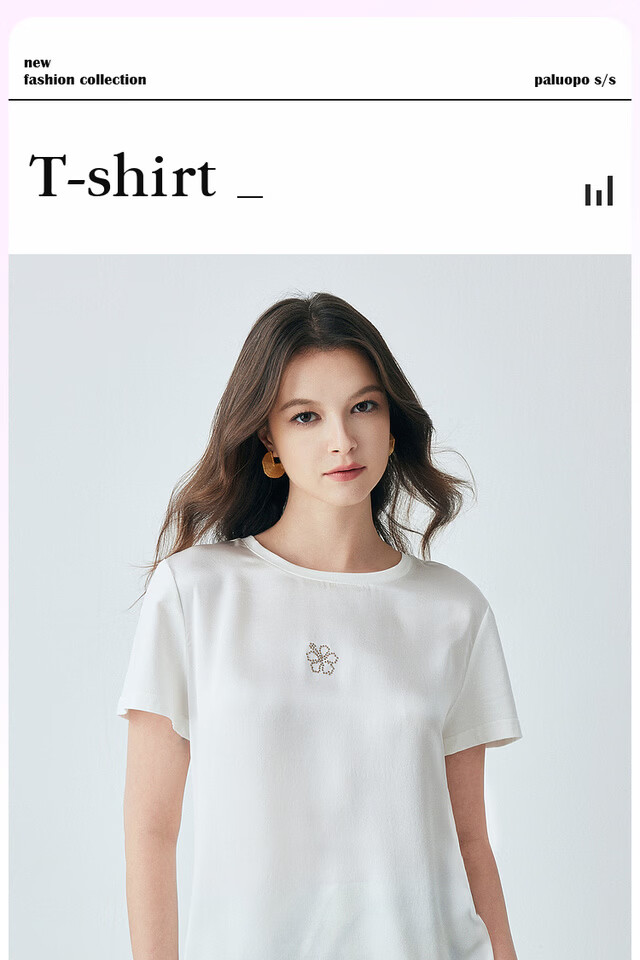 帕罗(PALUOPO)2026夏季新款简约休闲百搭烫钻AB版真丝短袖T恤女白色打底小衫 白色 M 160/84A