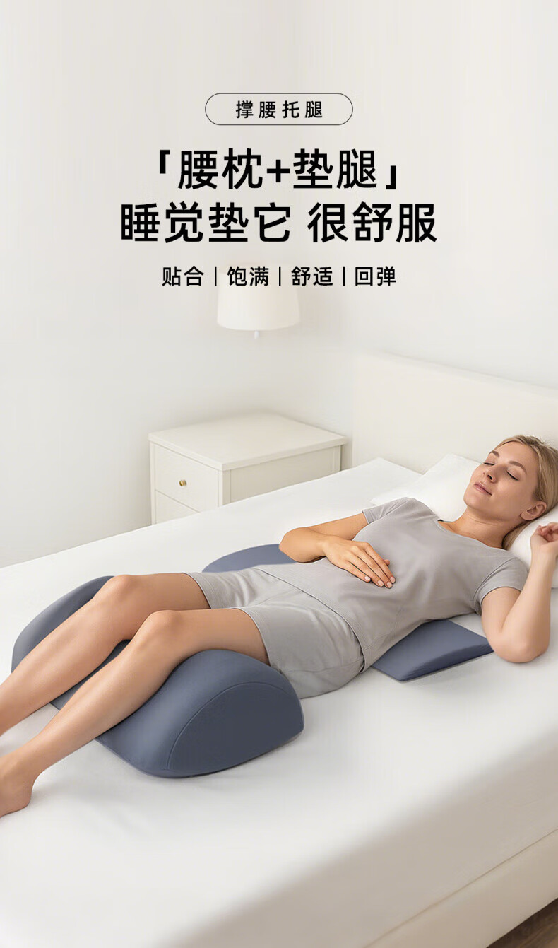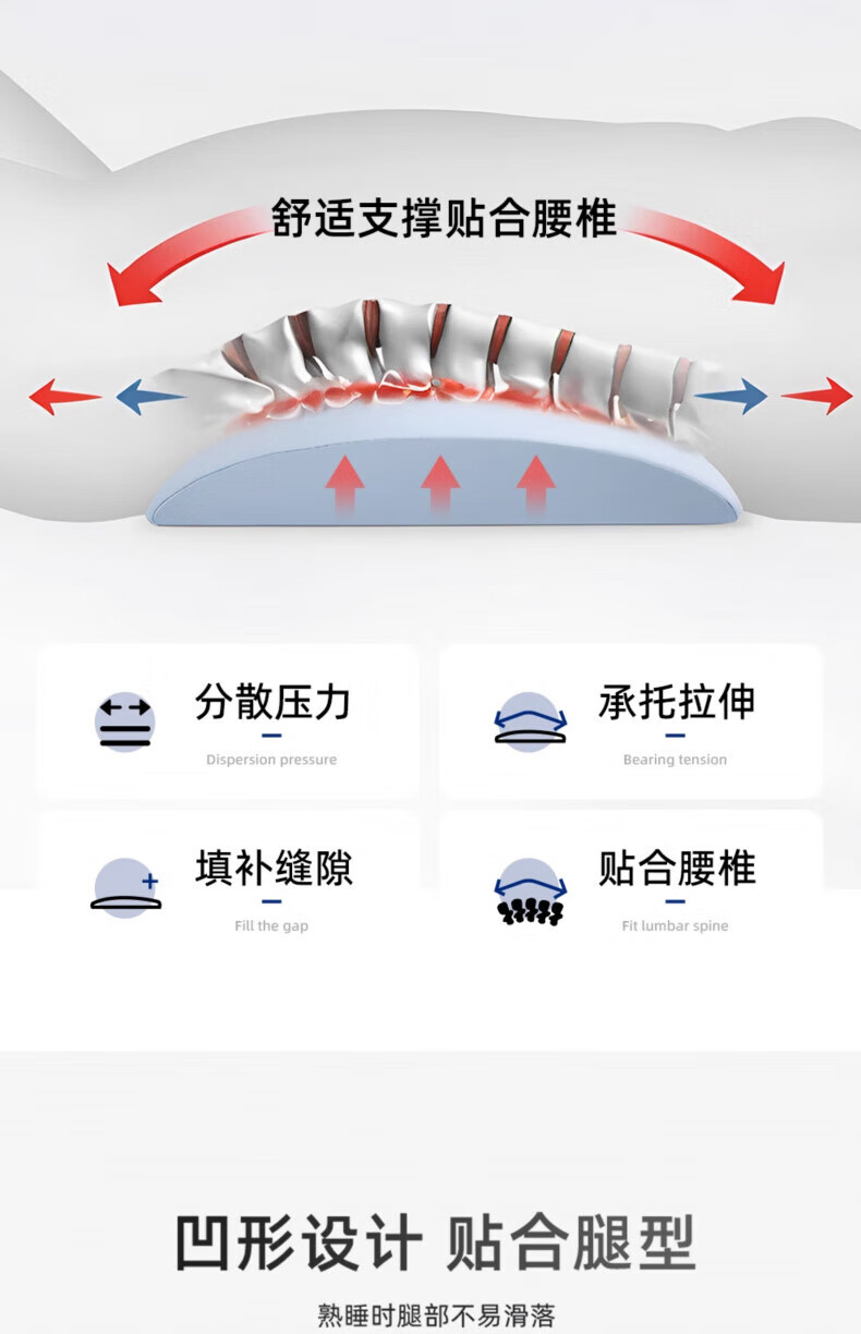 AILUKI日本腰枕睡觉专用腰垫护腰睡垫腰部神器垫脚枕垫腿枕静脉曲张膝盖 【腰枕】低薄款冰丝-深灰色