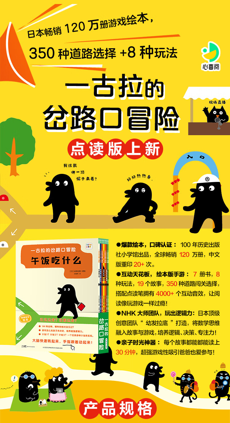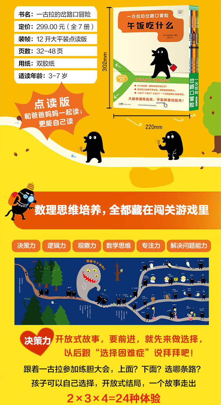 【升级点读版】一古拉的岔路口冒险全7册 日本幼儿益智绘本经典逻辑力游戏图画书 午饭吃什么可怕的练胆大会蹑手蹑脚的行动迷宫大冒险专注力训练 小鸡球球点读书(点读笔需另外购买)生日礼物 心喜阅童书