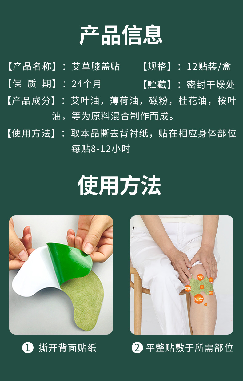 百年扁氏膝盖贴艾草膝盖贴艾灸贴艾叶贴中老年膝盖艾草贴 艾草膝盖贴5盒(发10盒)