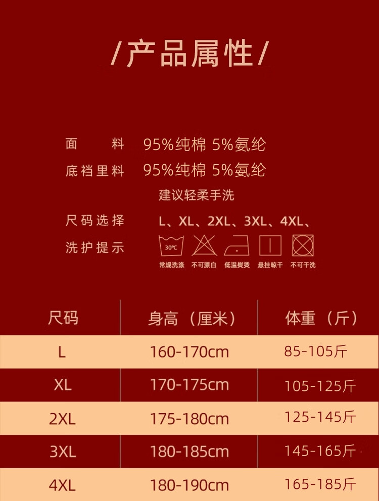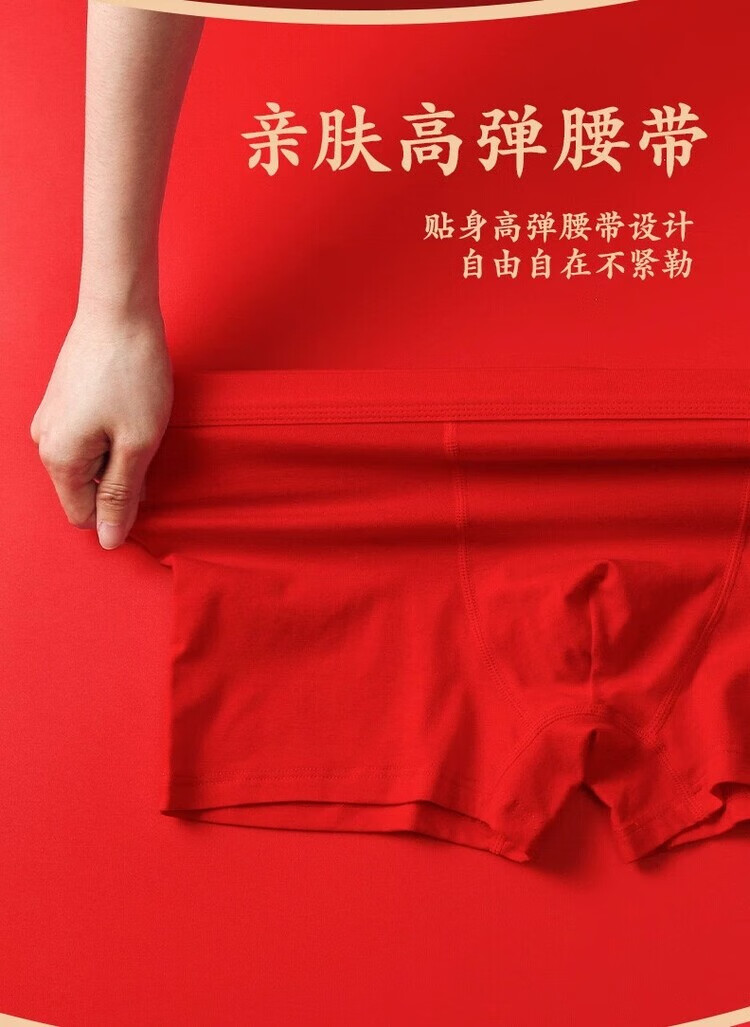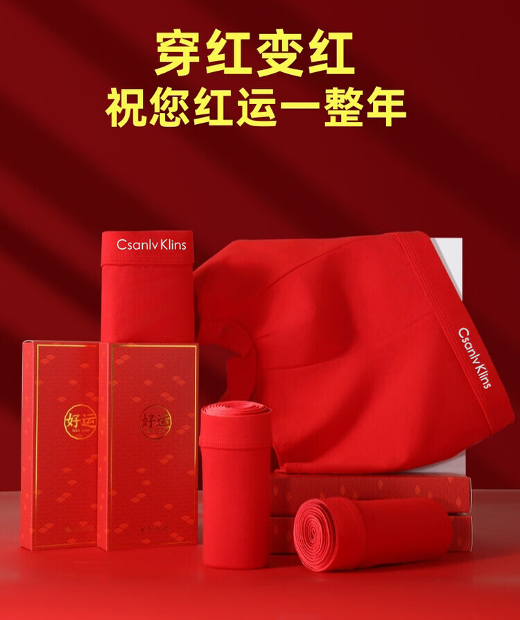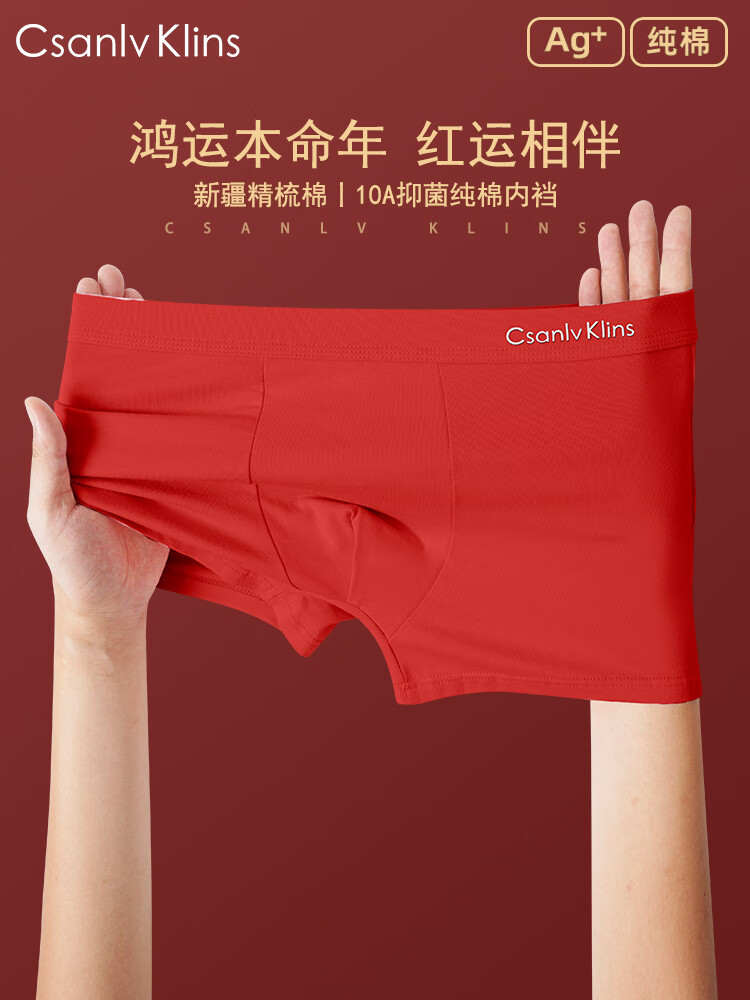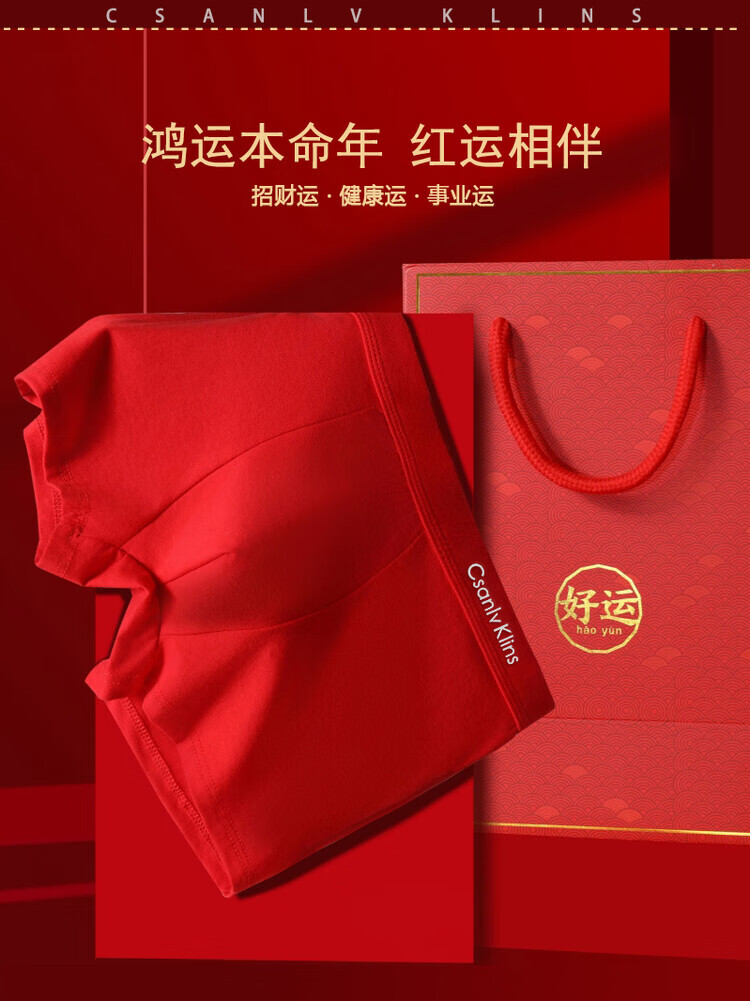 CKCsanlvKlins男士内裤冰丝红色本命年属马年莫代尔四角平角裤结婚 纯棉 4条 礼盒装 2XL 适合125-145斤