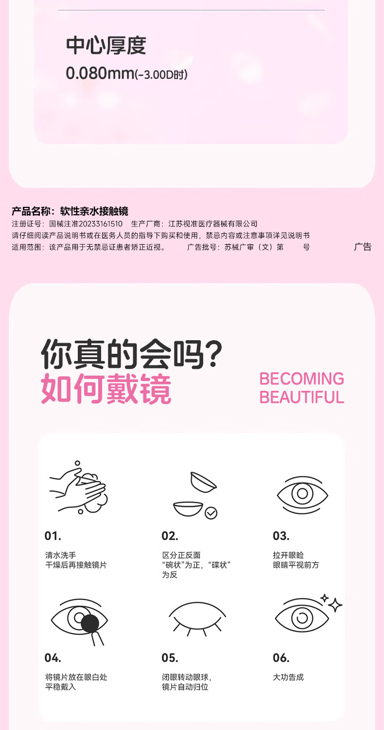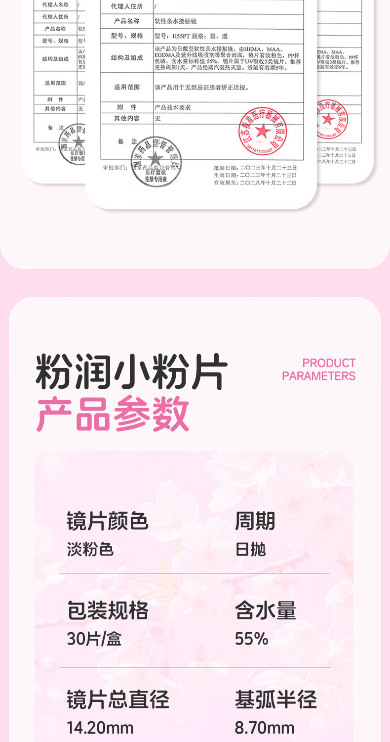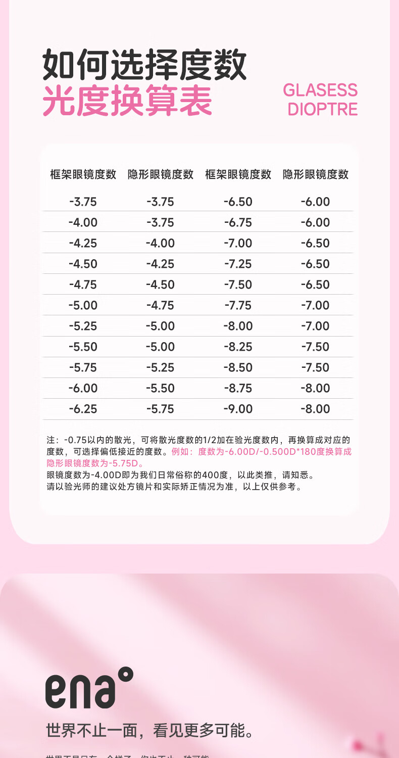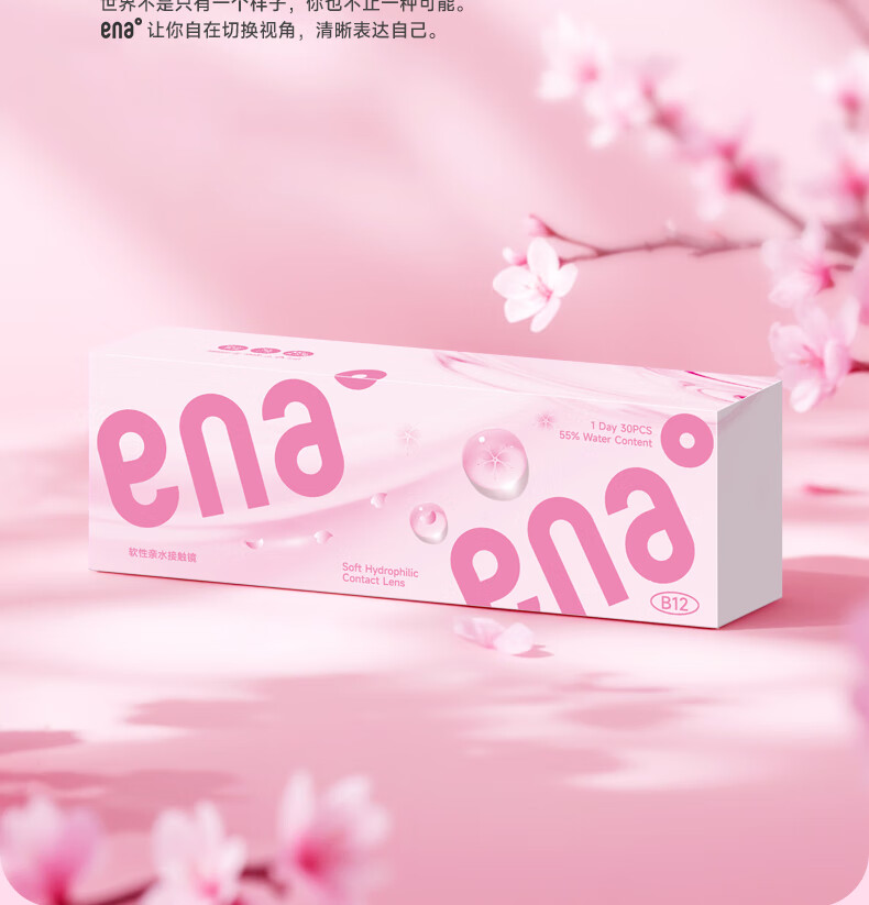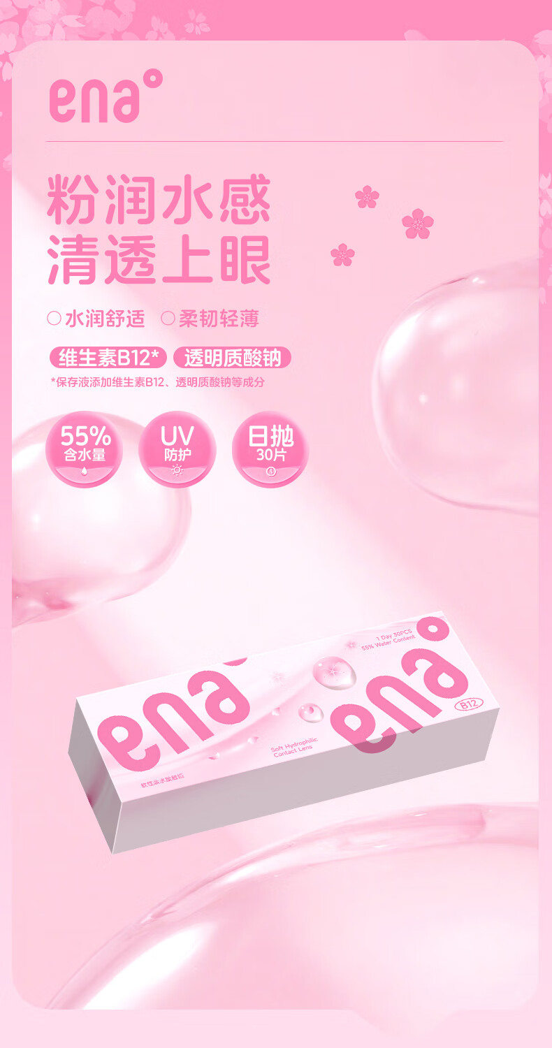 Ena粉润日抛30片隐形眼镜近视透明片B12粉水55%高含水高透氧防紫外线 日抛30片 475度