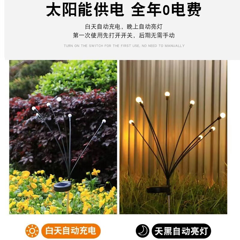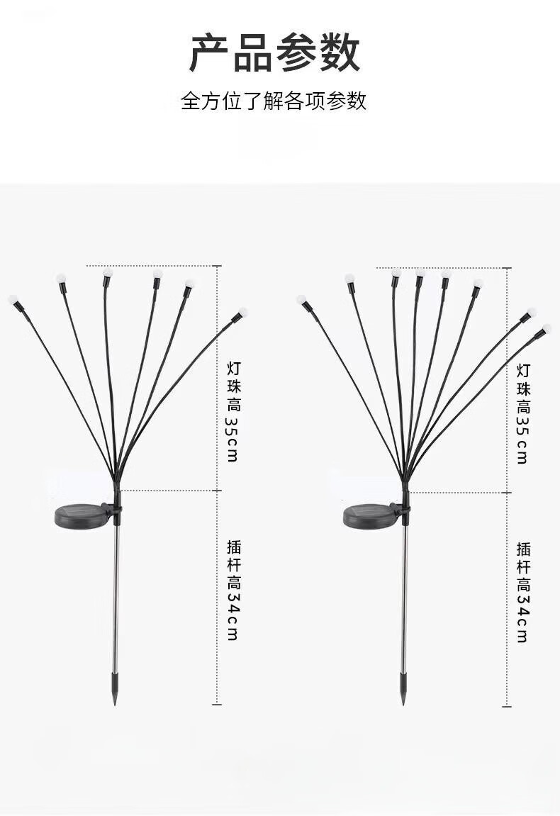 现货太阳能灯户外庭院灯植物萤火虫灯地插灯草坪灯小夜灯景观灯灯 6LED半圆壁灯白壳暖光