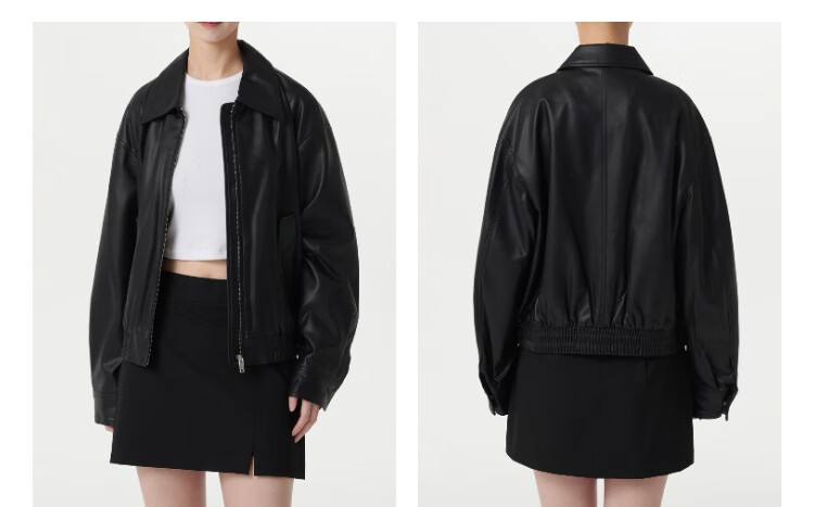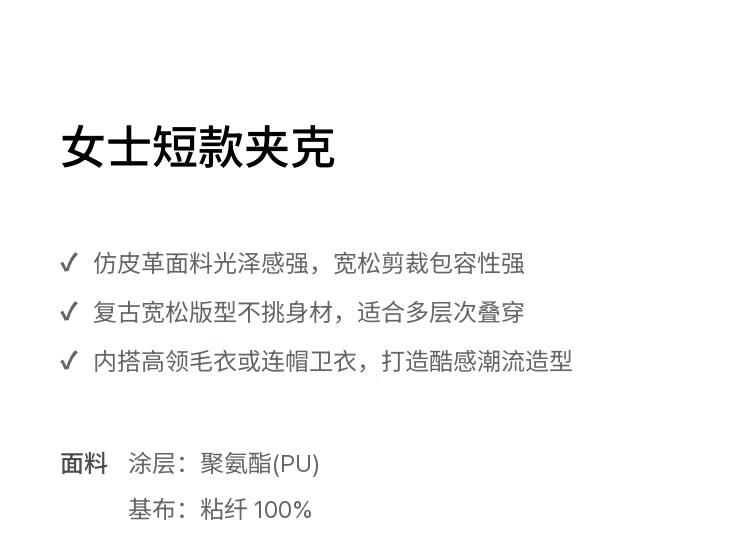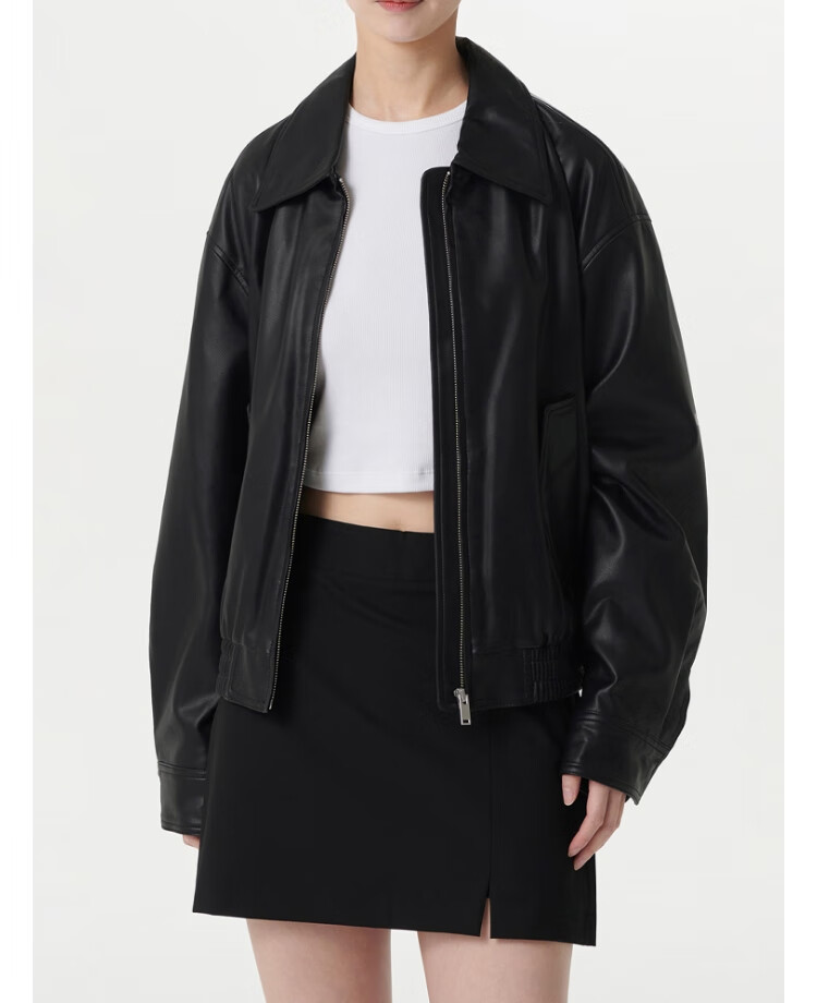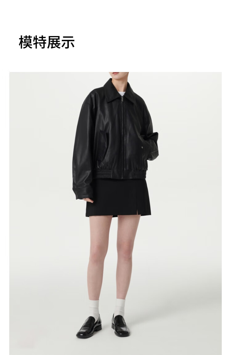 MUSINSA STANDARD韩国春季女士短款宽松复古潮酷男友风夹克外套 黑色(BK) S