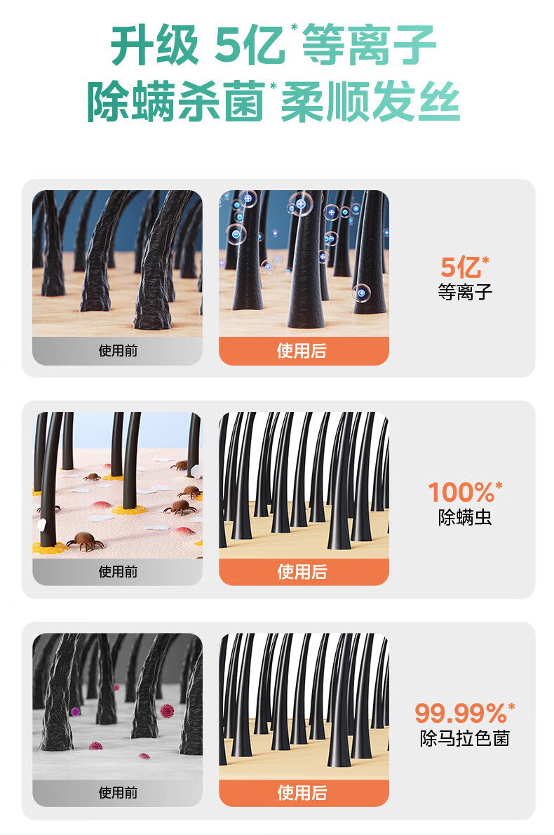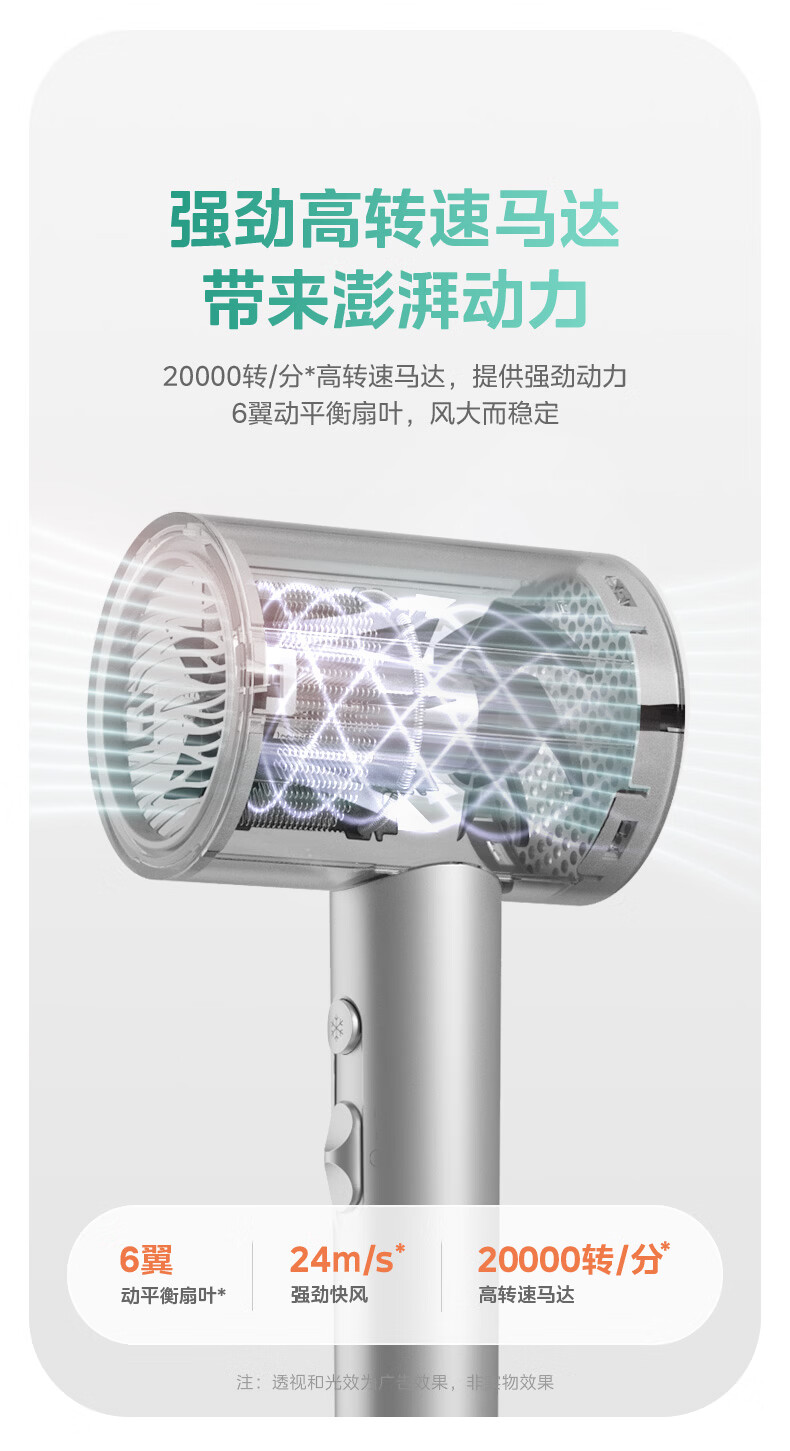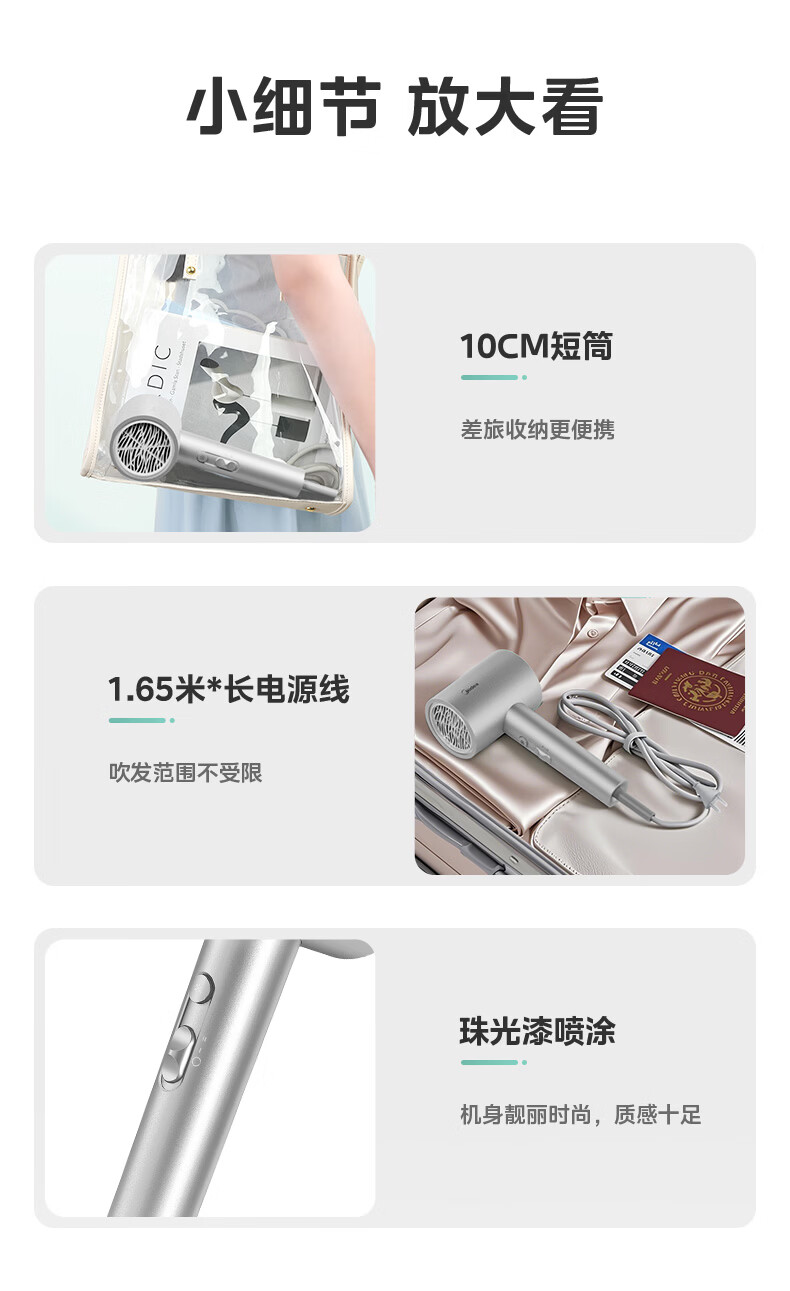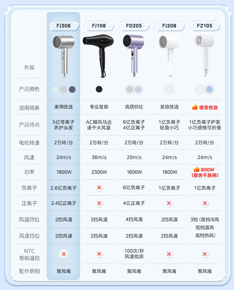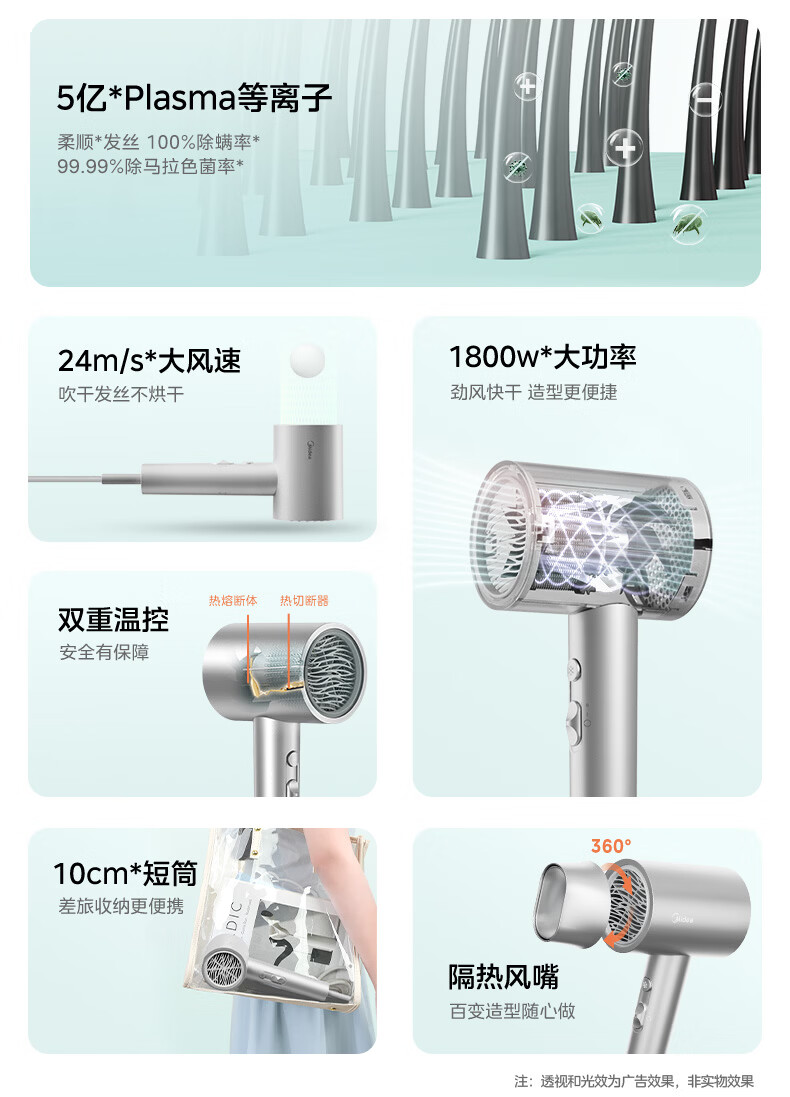 美的(Midea)5亿等离子护发电吹风 家用负离子护发吹风筒 1800W大功率快干吹风机 FJ308银 国家补贴 生日礼物