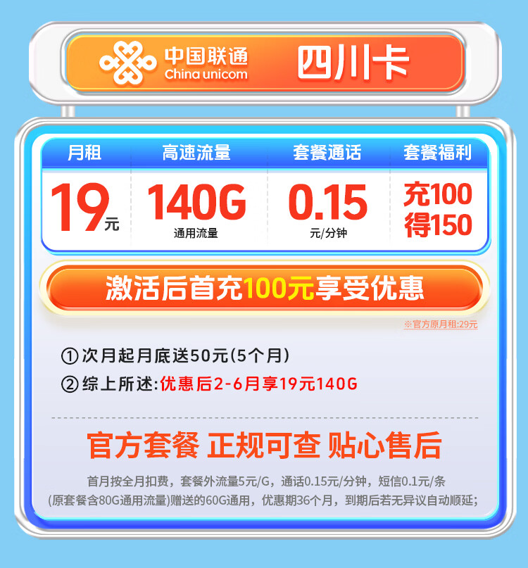 中国联通(UNICOM)流量卡5G全国不限速手机卡电话卡低月租无限流量卡大流量上网卡大王卡非永久 仅发广东18元220G全国通用本地套餐首月免费