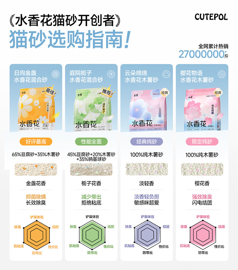 囧宝猫砂云朵绵绵水香花木薯猫砂除臭香味纯木薯猫砂木薯砂除臭猫砂 【顺丰送上门】云朵淡香木薯砂2.5斤*8包