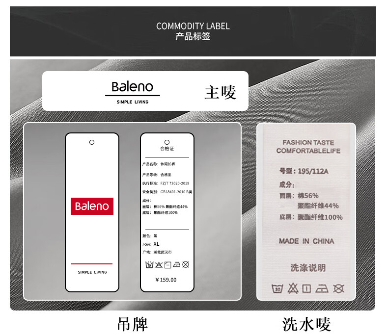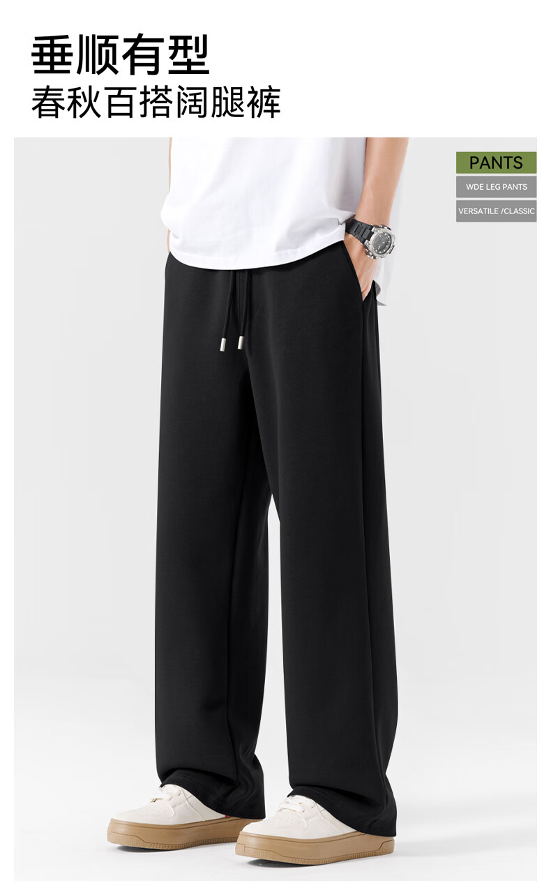 班尼路(Baleno)裤子男春秋季重磅针织休闲裤学生运动百搭系带宽松阔腿男士直筒裤