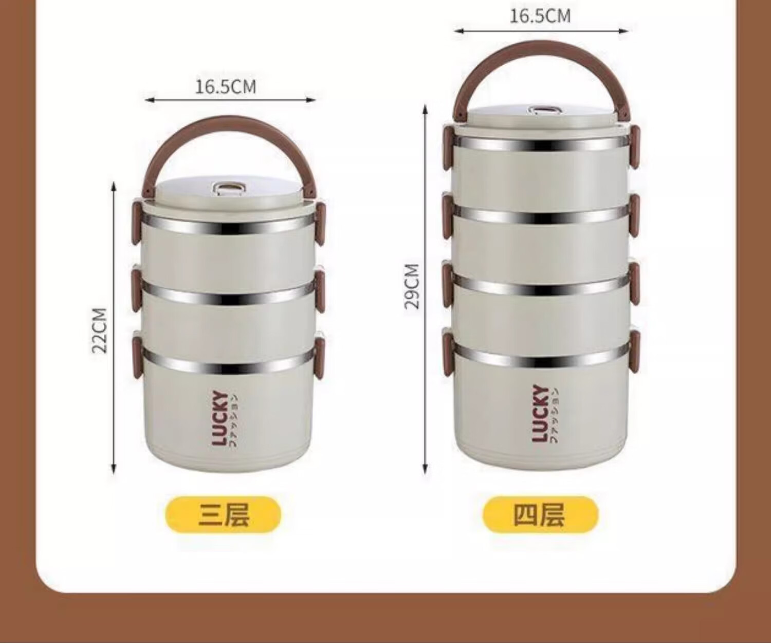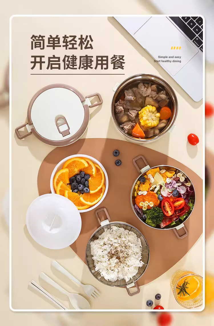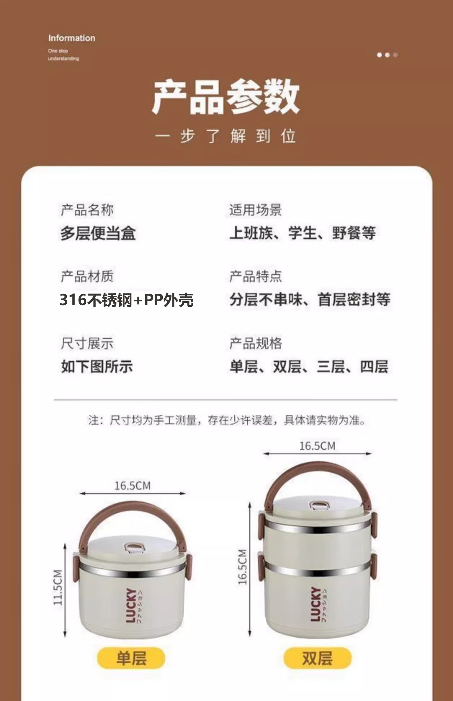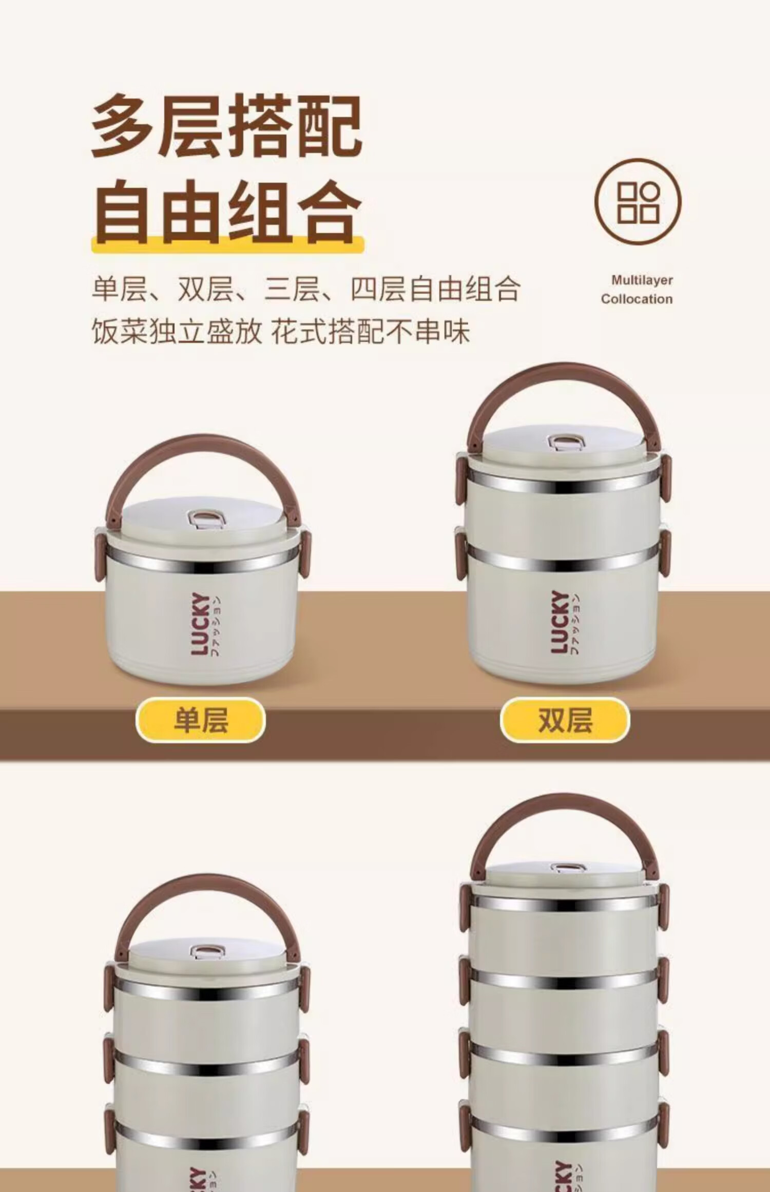 百亿熊316不锈钢保温饭盒上班族大容量手提饭桶便携式带盖三四层便当盒 316不锈钢【四层装/配提手盖】