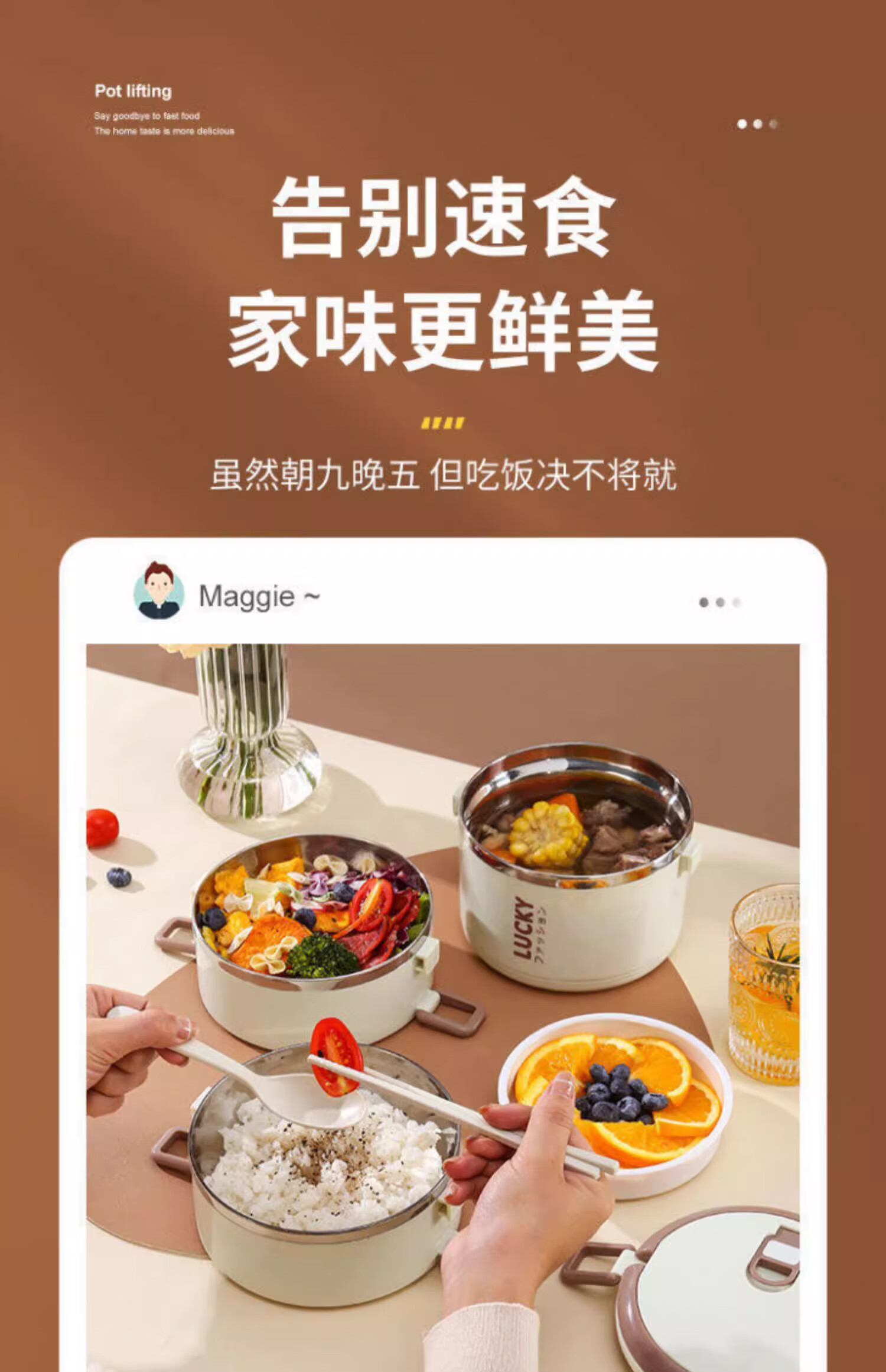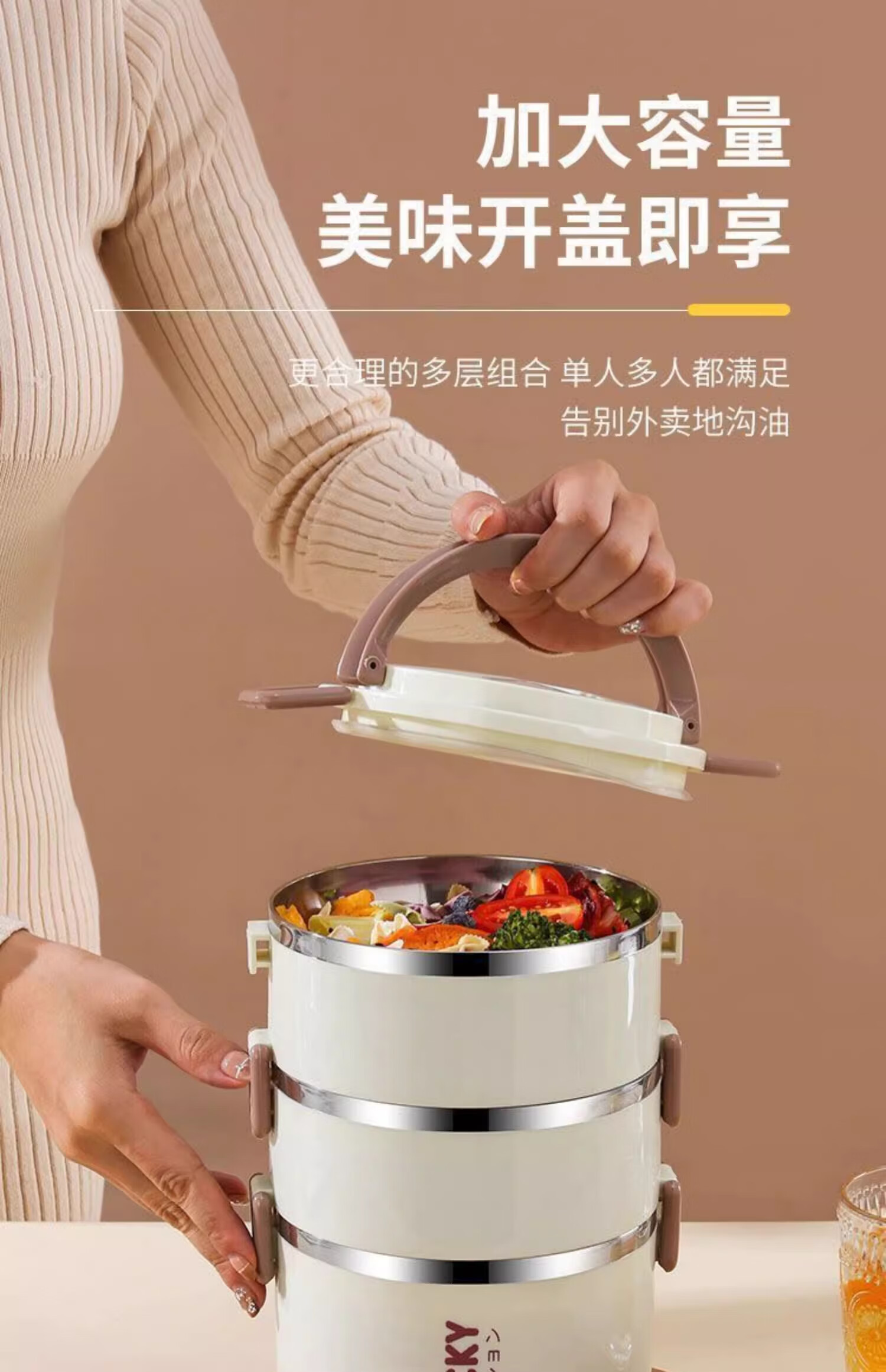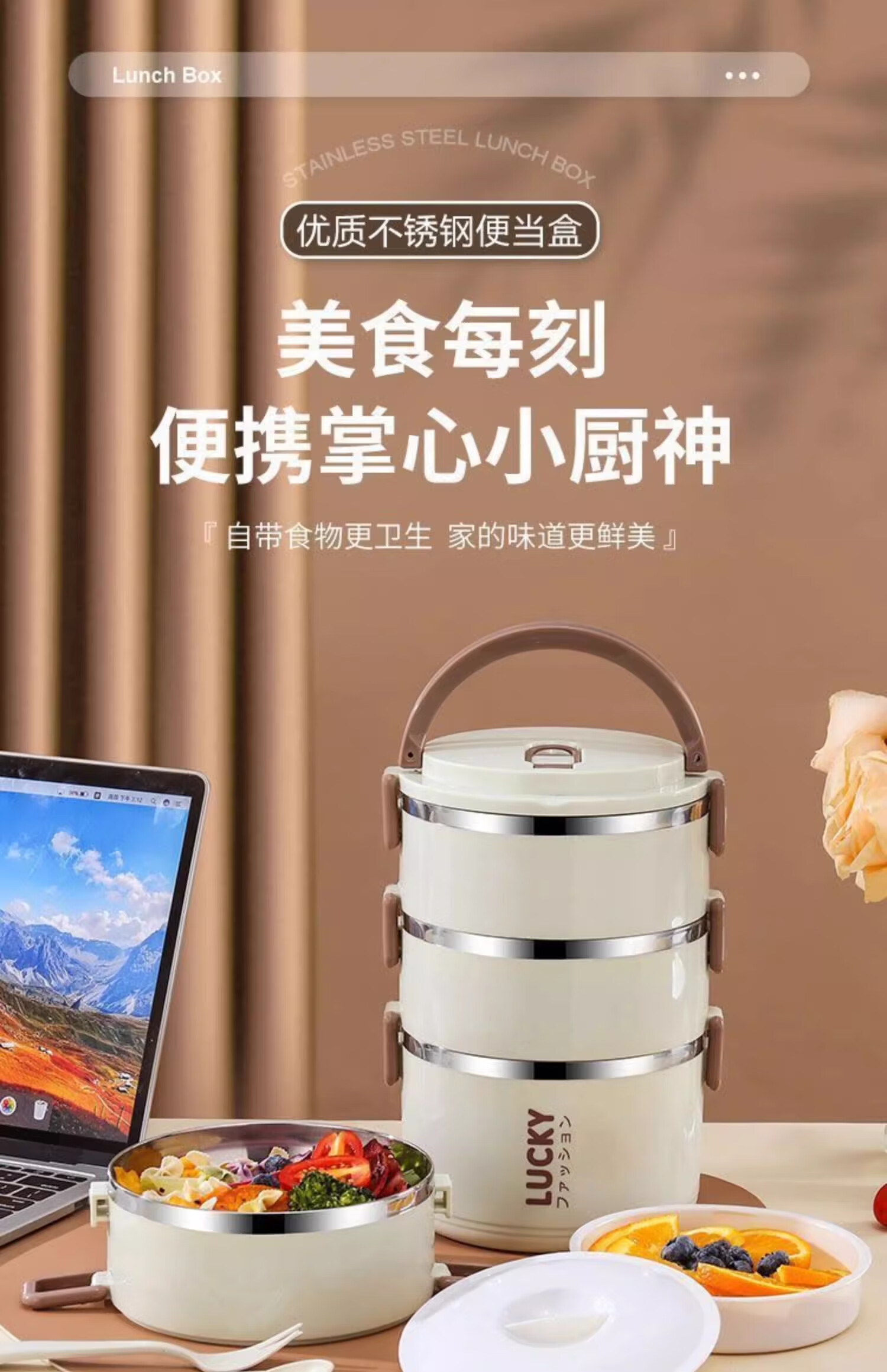 百亿熊316不锈钢保温饭盒上班族大容量手提饭桶便携式带盖三四层便当盒 316不锈钢【四层装/配提手盖】