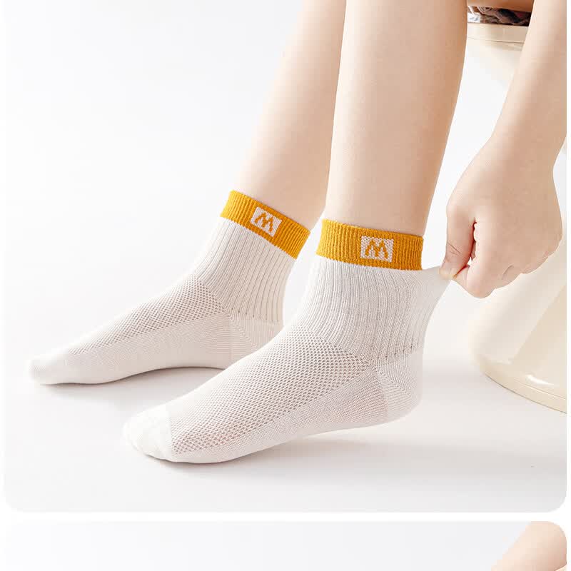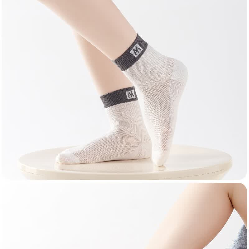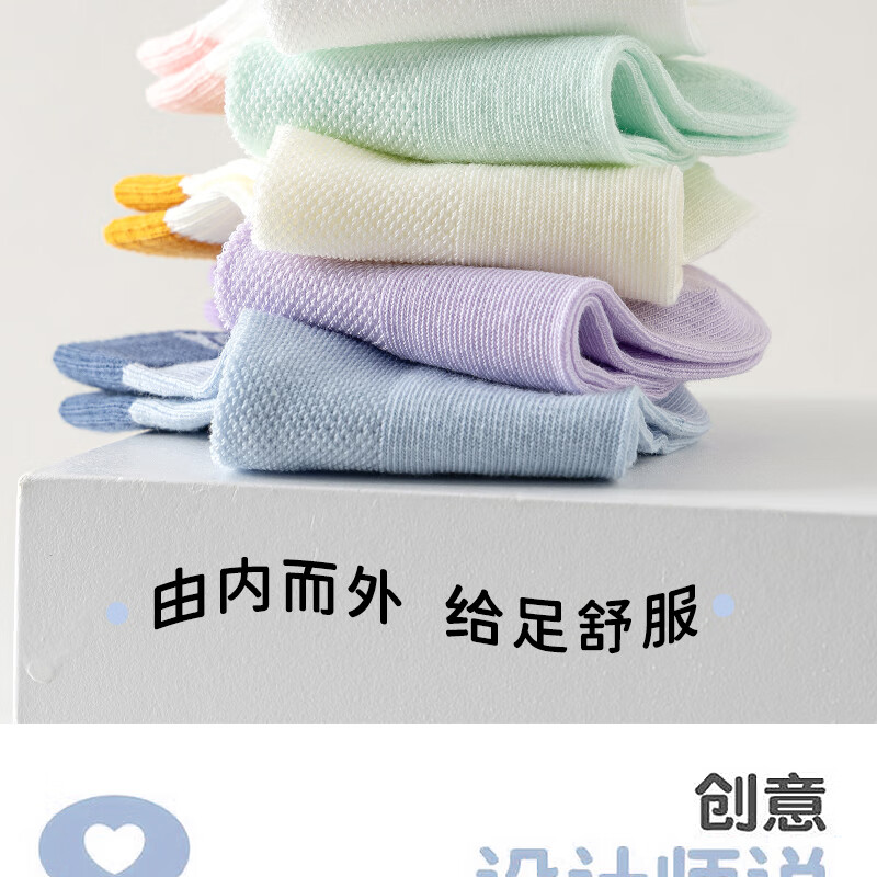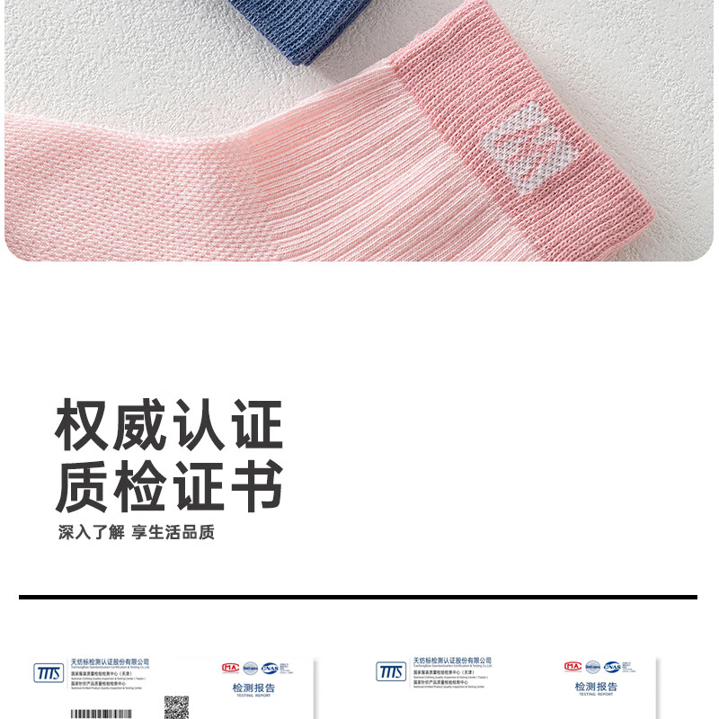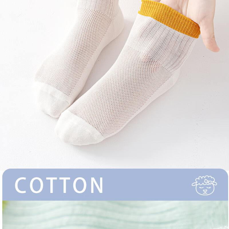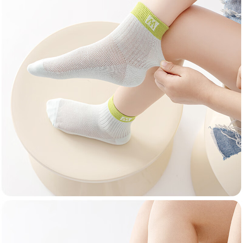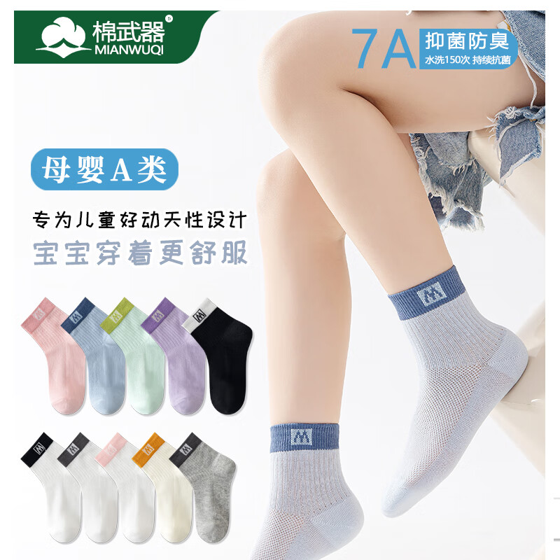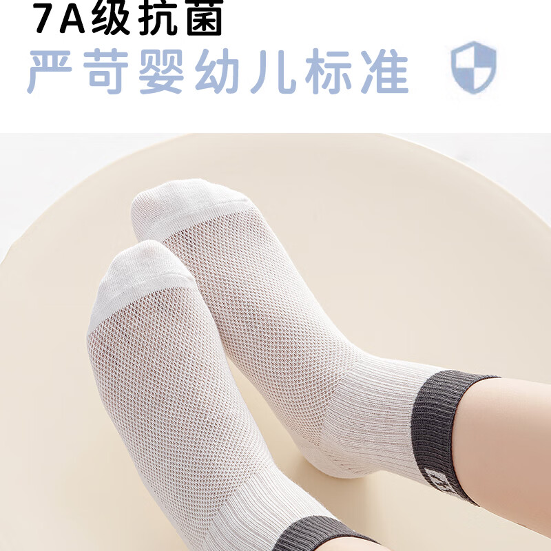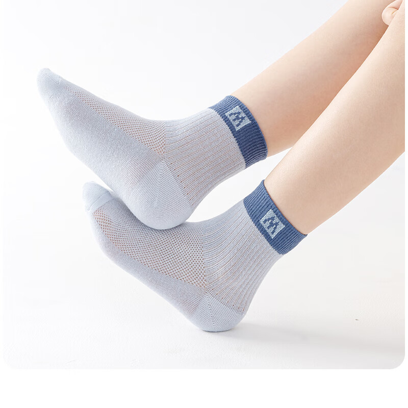 棉武器【邮政甄选】夏季薄款网眼袜吸汗透气母婴A类防臭中短筒男女童袜 2502蓝+白+灰+暖白+绿 5双 6-8岁 (M) 27~31码