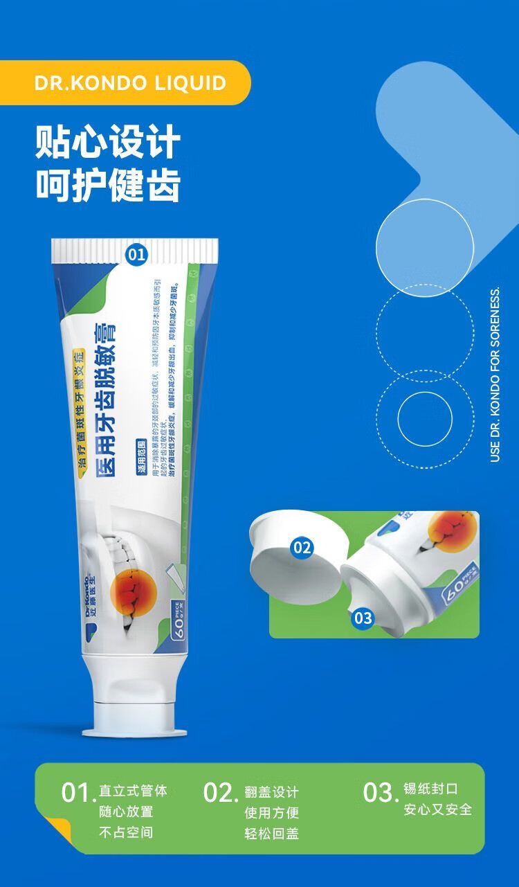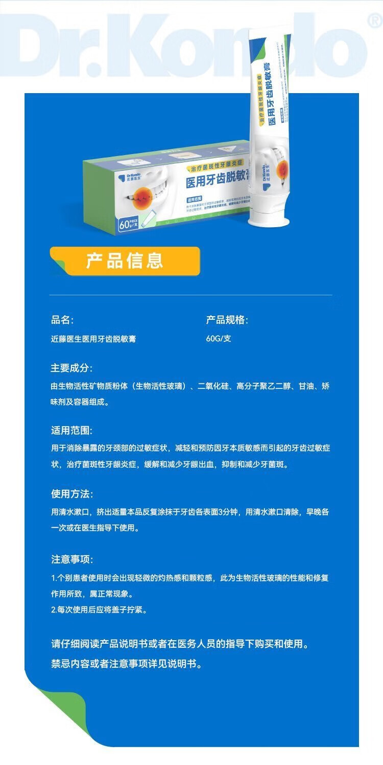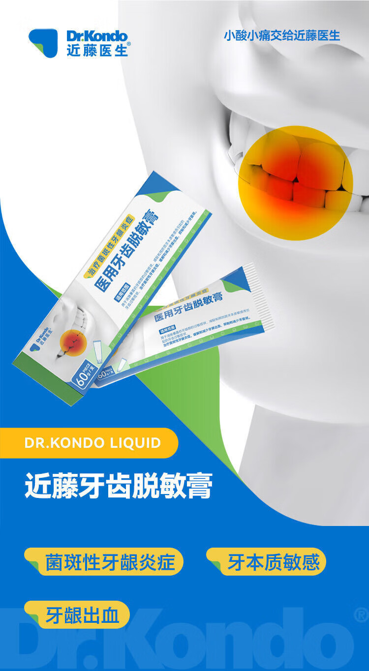 近藤医生医用牙齿脱医敏膏 牙齿敏感牙松牙痛 牙菌斑牙龈出血肿 5盒145(29//盒)20%用户选择