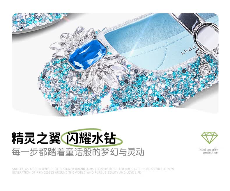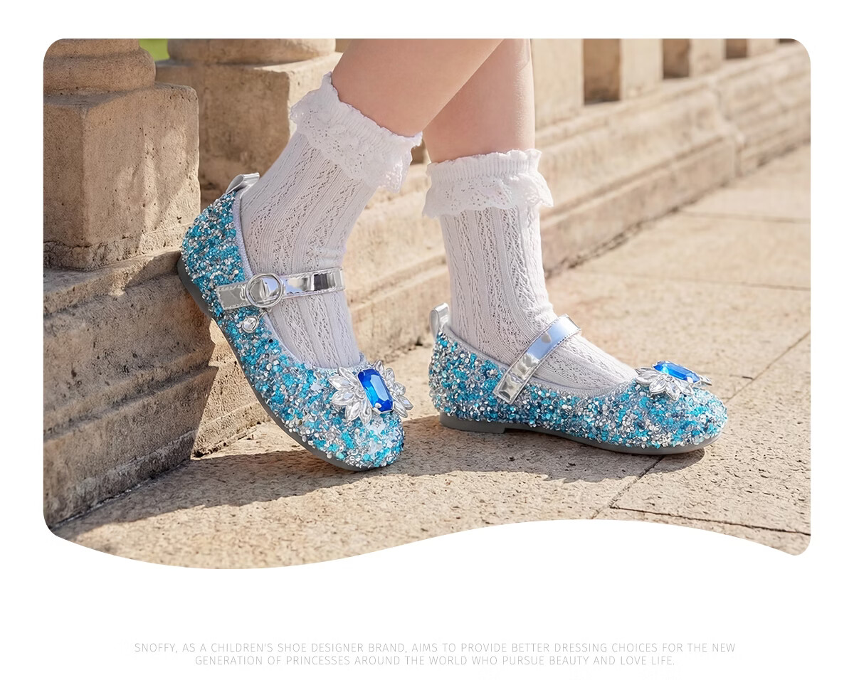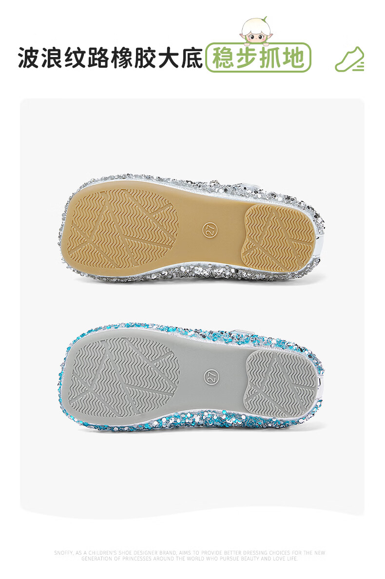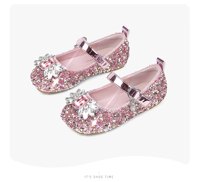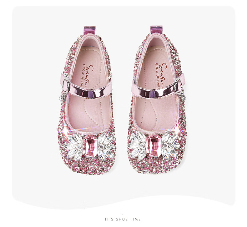 斯纳菲【小方头】儿童水晶鞋女童皮鞋爱莎公主鞋2025年春秋新款单鞋 公主粉 28 内长18.1/适合脚长17.3cm