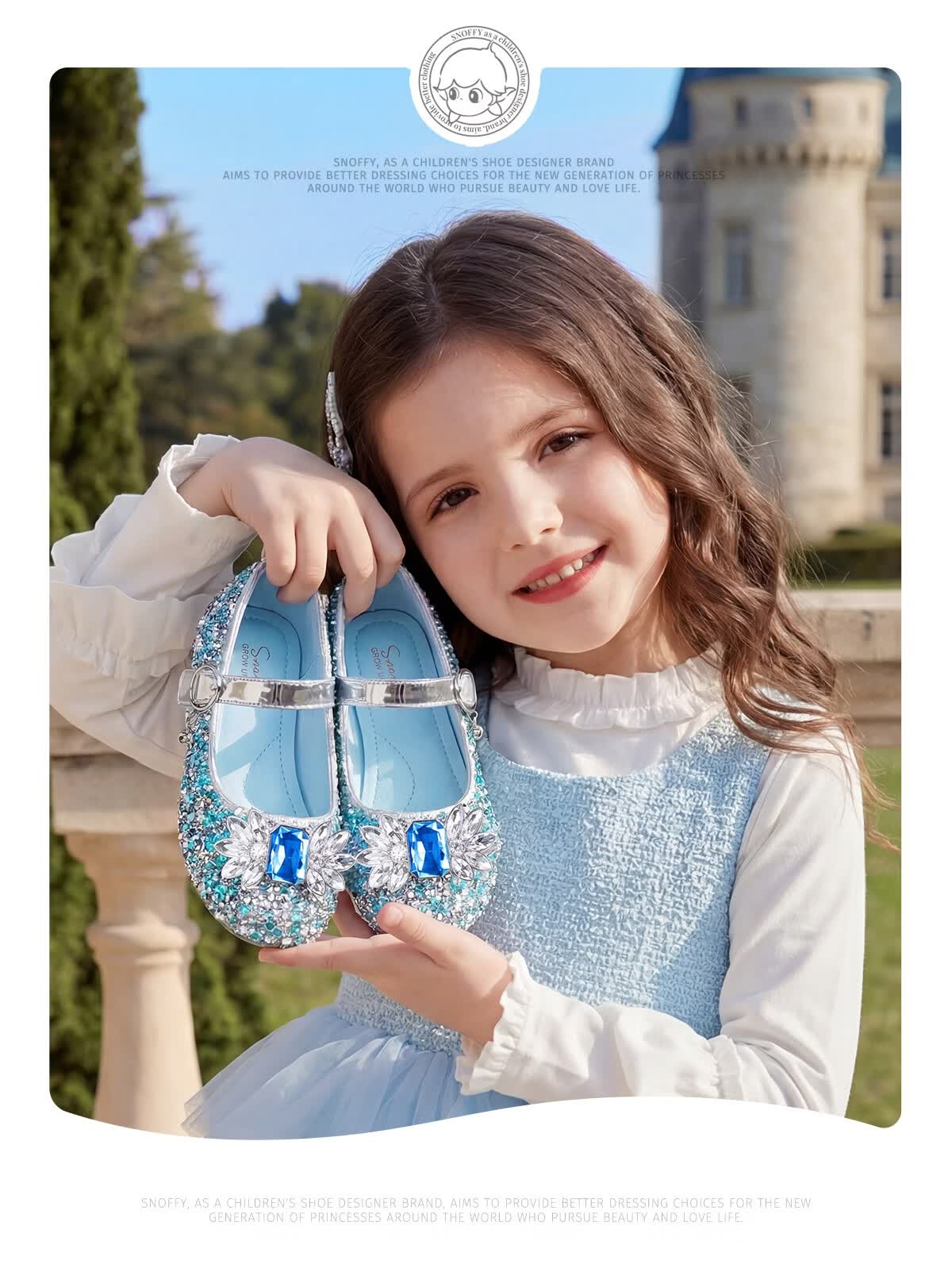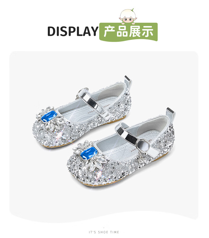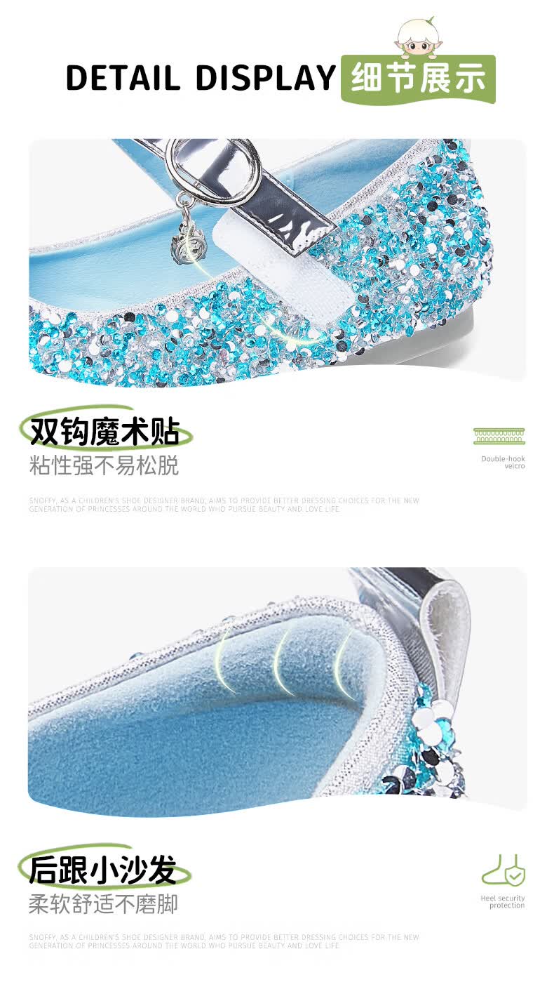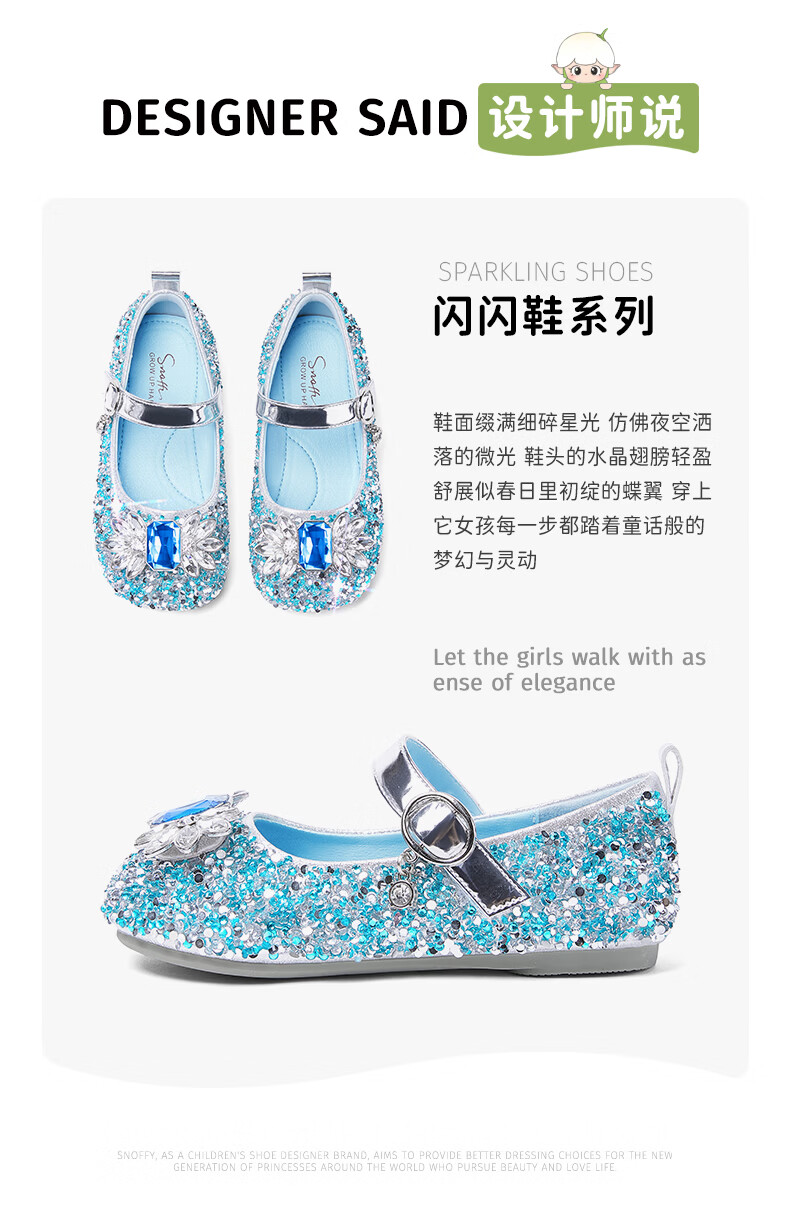斯纳菲【小方头】儿童水晶鞋女童皮鞋爱莎公主鞋2025年春秋新款单鞋 公主粉 28 内长18.1/适合脚长17.3cm
