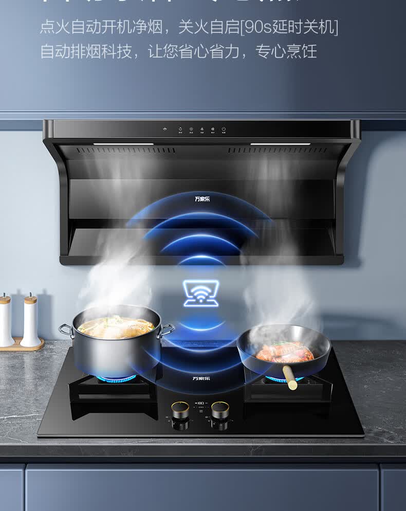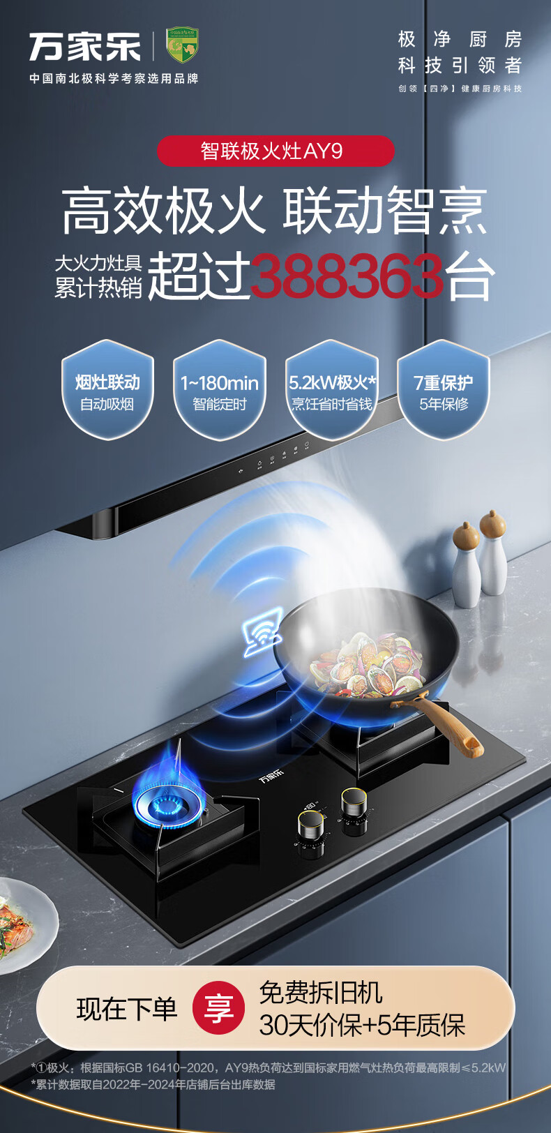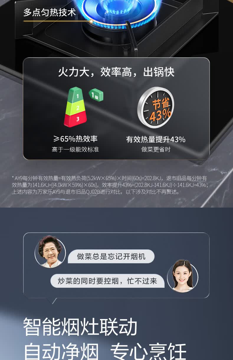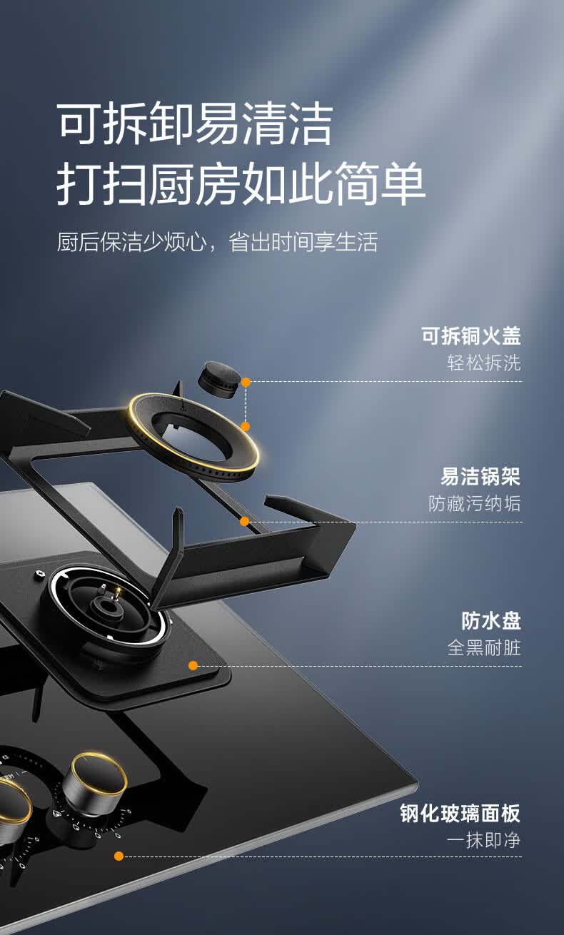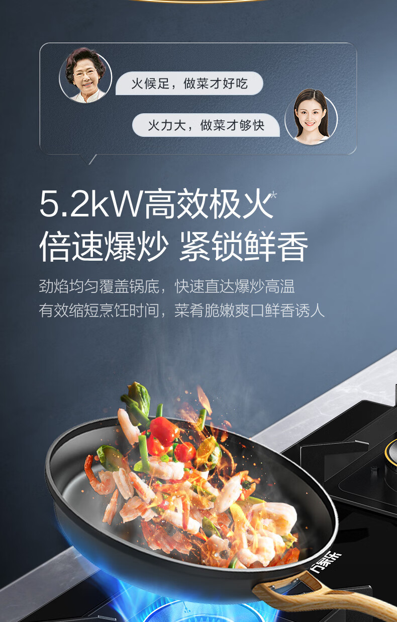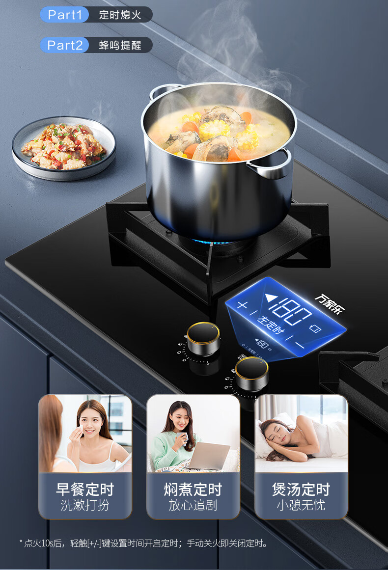 万家乐燃气灶【小鲸喜AY9】180min定时灶 5.2kw大火力嵌入式台式两用灶 全进风烟灶联动智能定时天然气灶