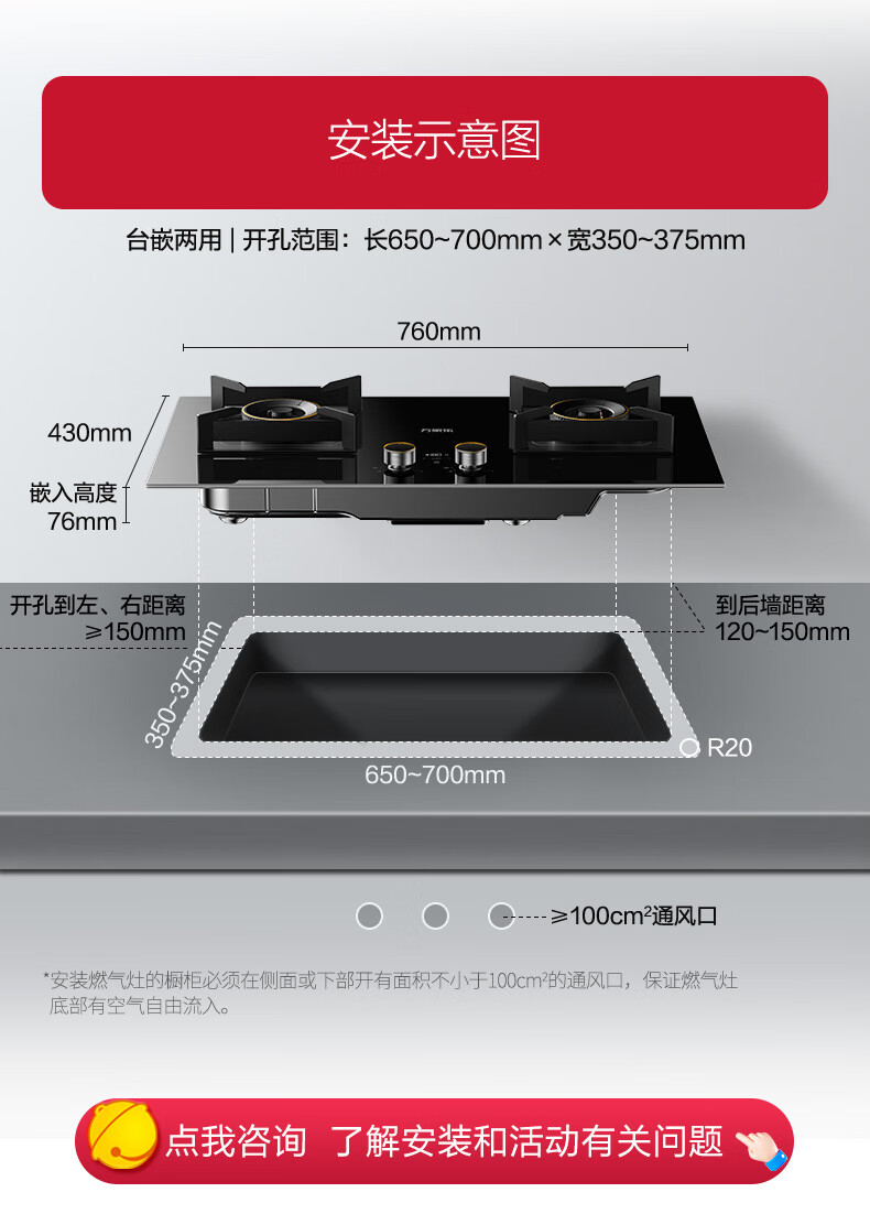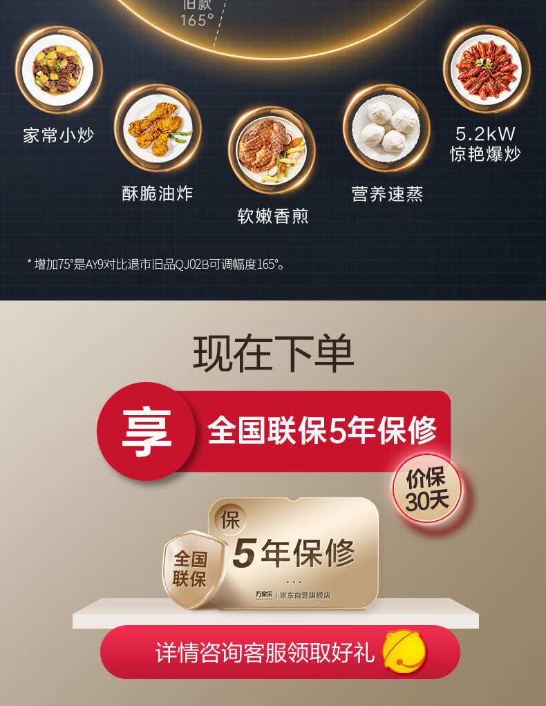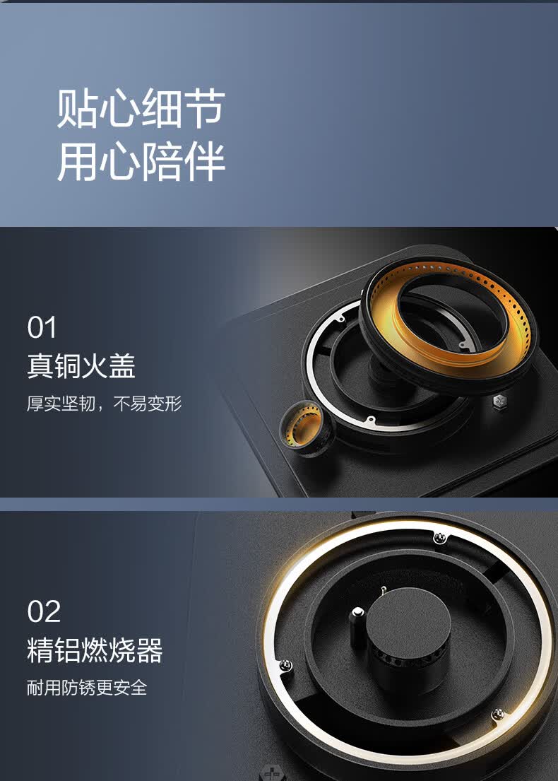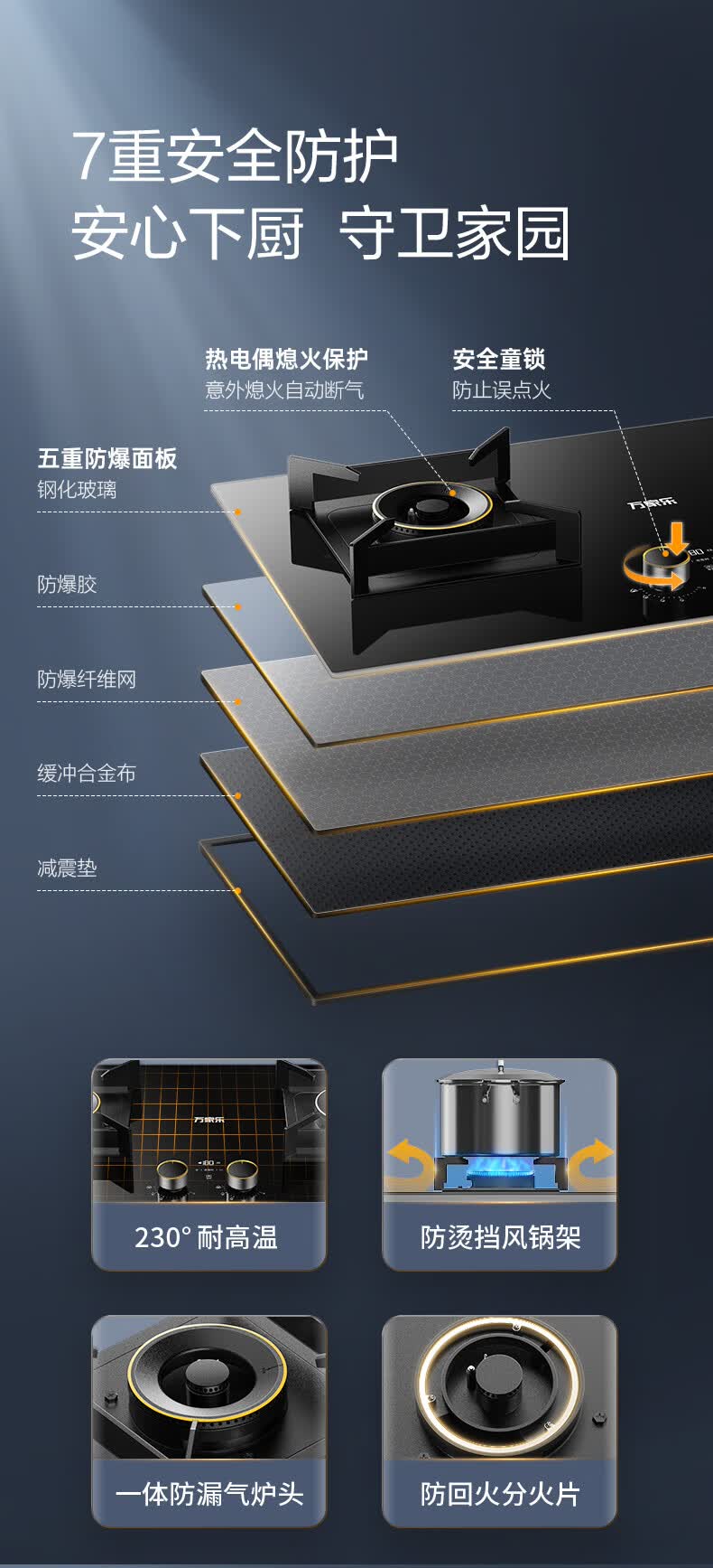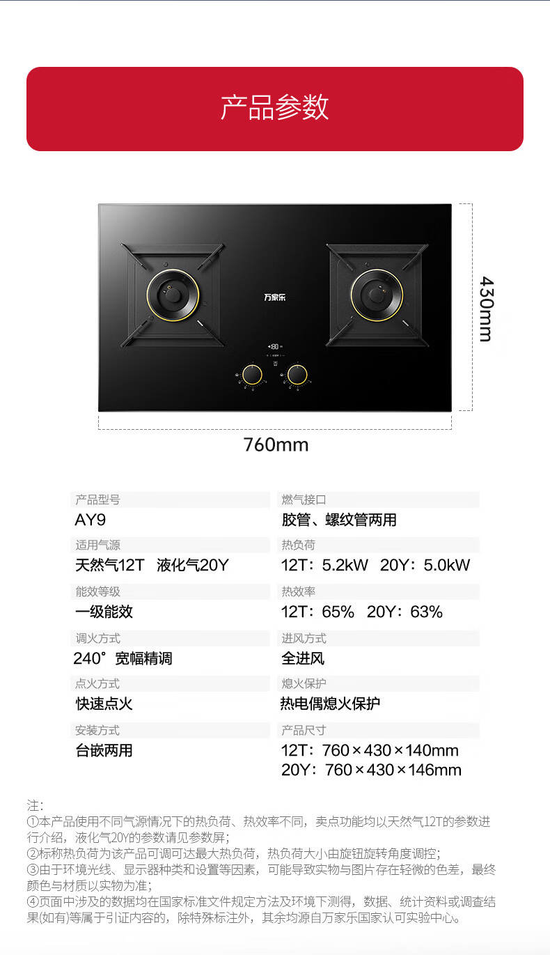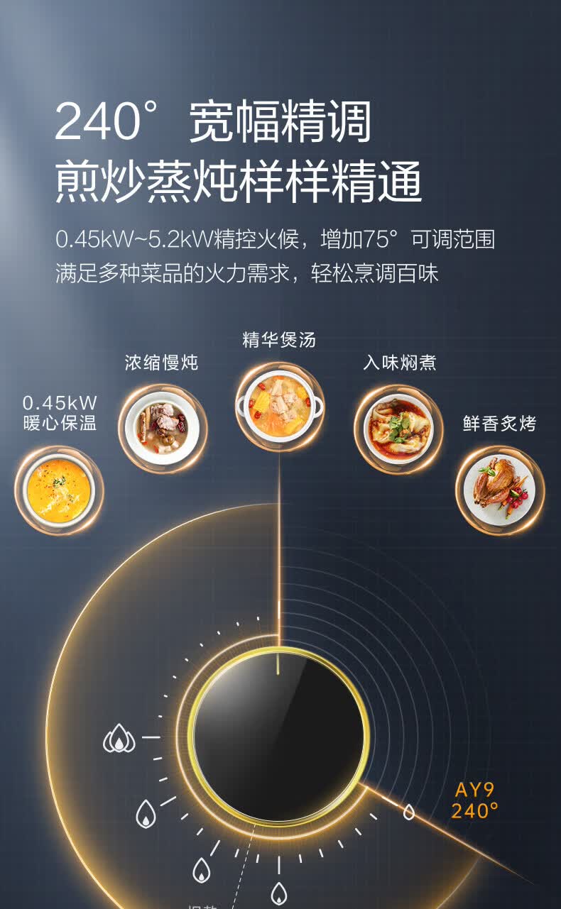 万家乐燃气灶【小鲸喜AY9】180min定时灶 5.2kw大火力嵌入式台式两用灶 全进风烟灶联动智能定时天然气灶