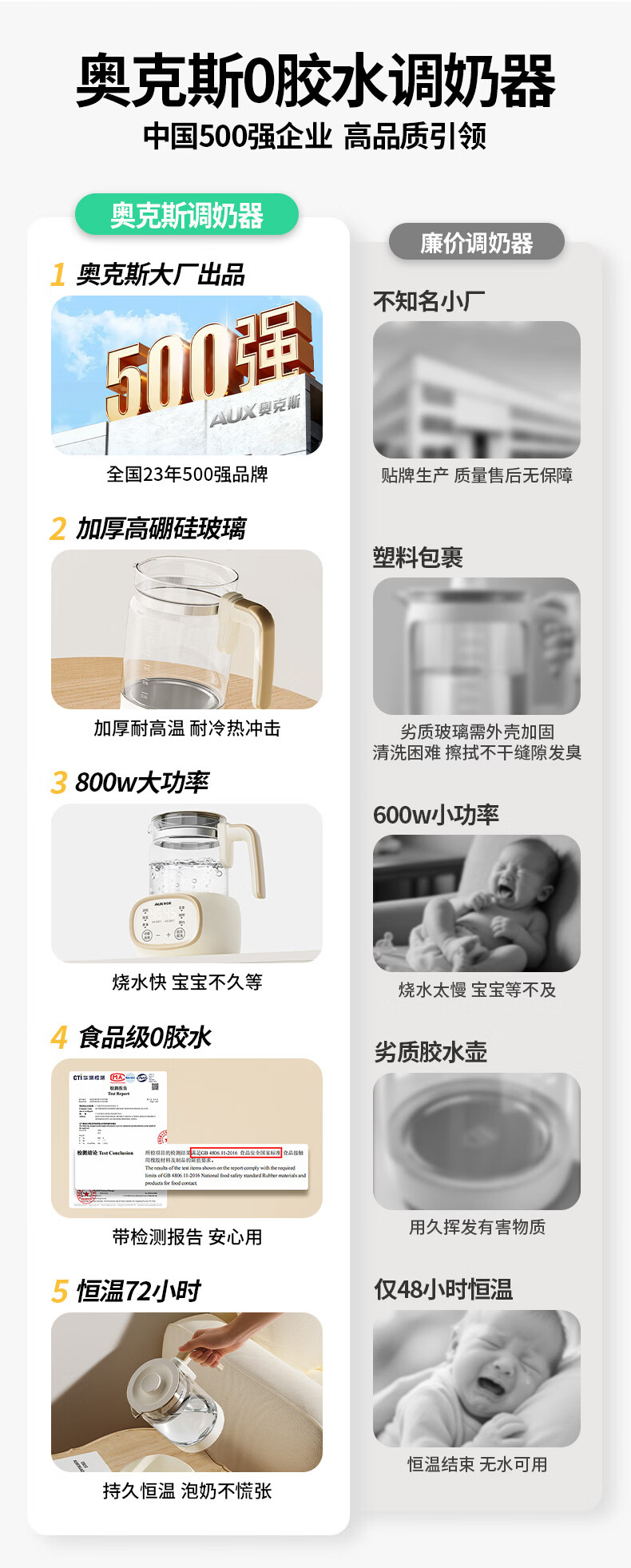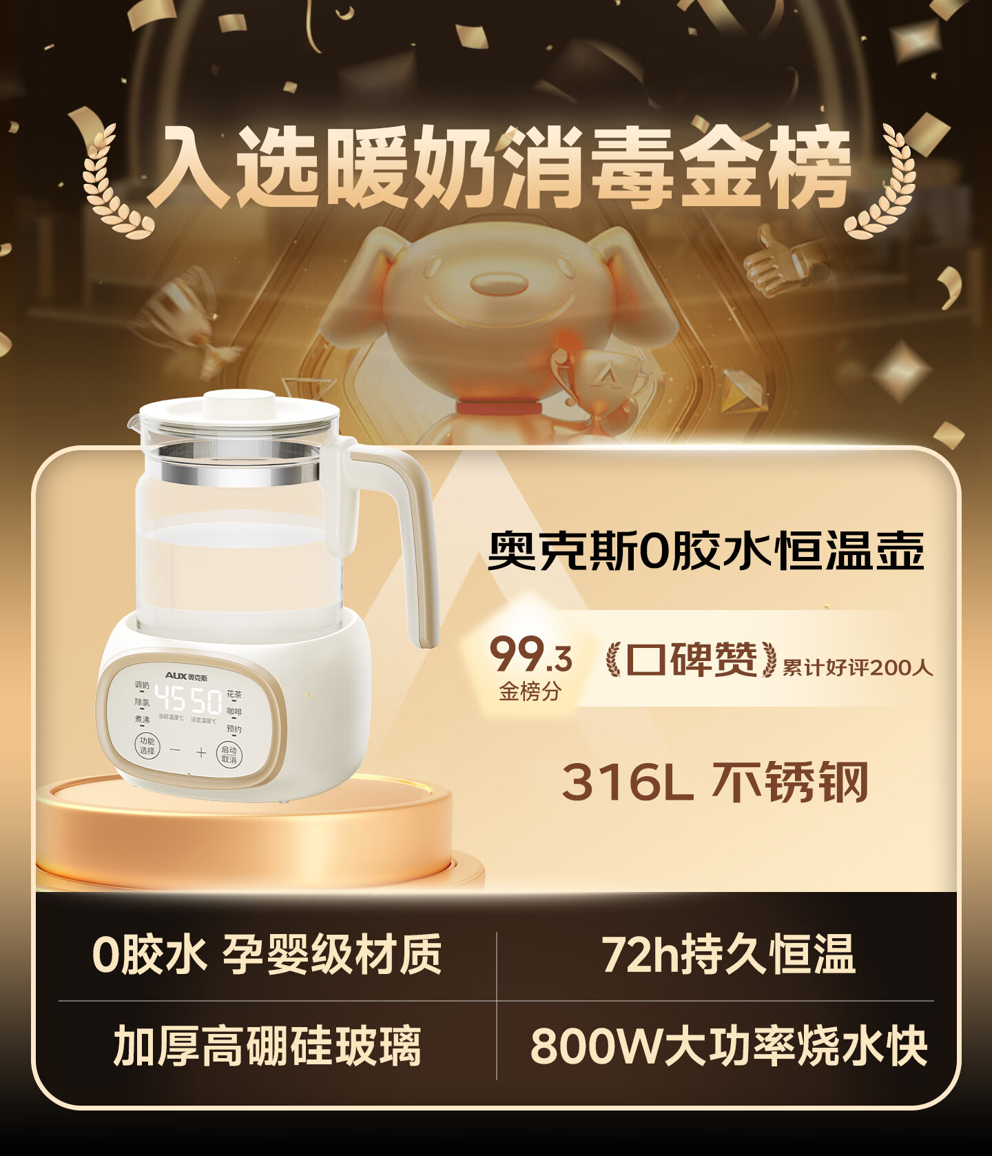 奥克斯恒温壶婴儿调奶器冲泡奶保温暖奶器玻璃电热烧水壶1.3L 热门商品