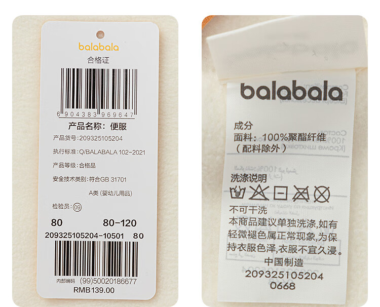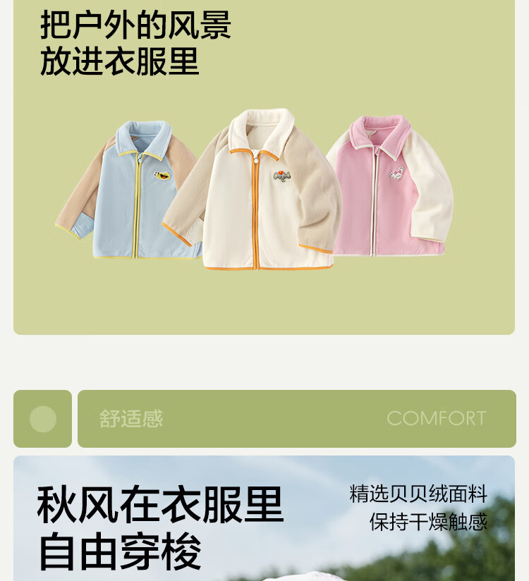 巴拉巴拉宝宝外套儿童上衣2025秋装男童女童户外柔软毛绒衣服209325105204