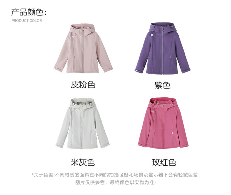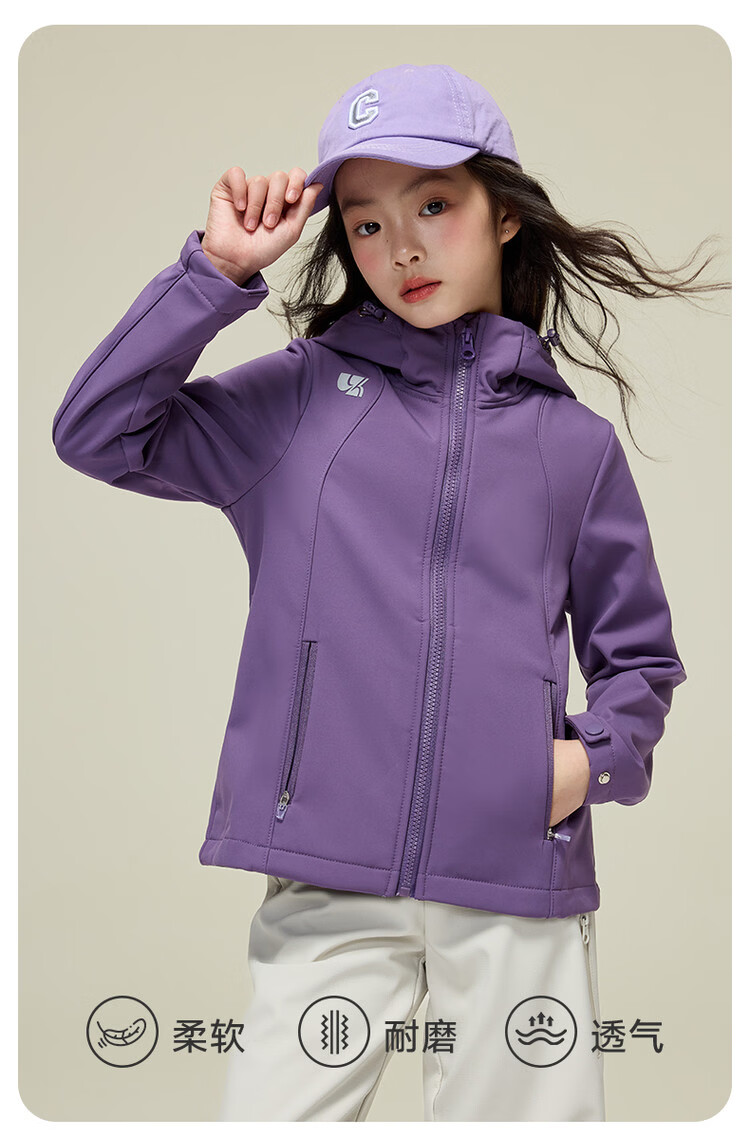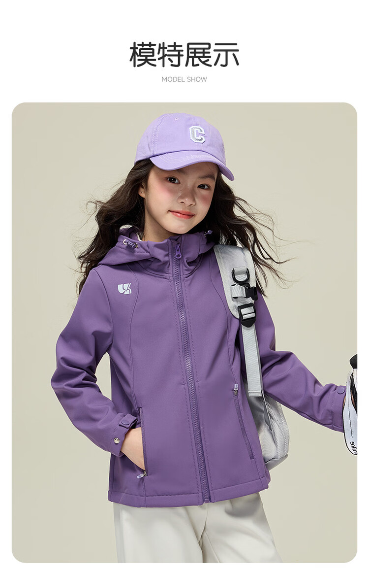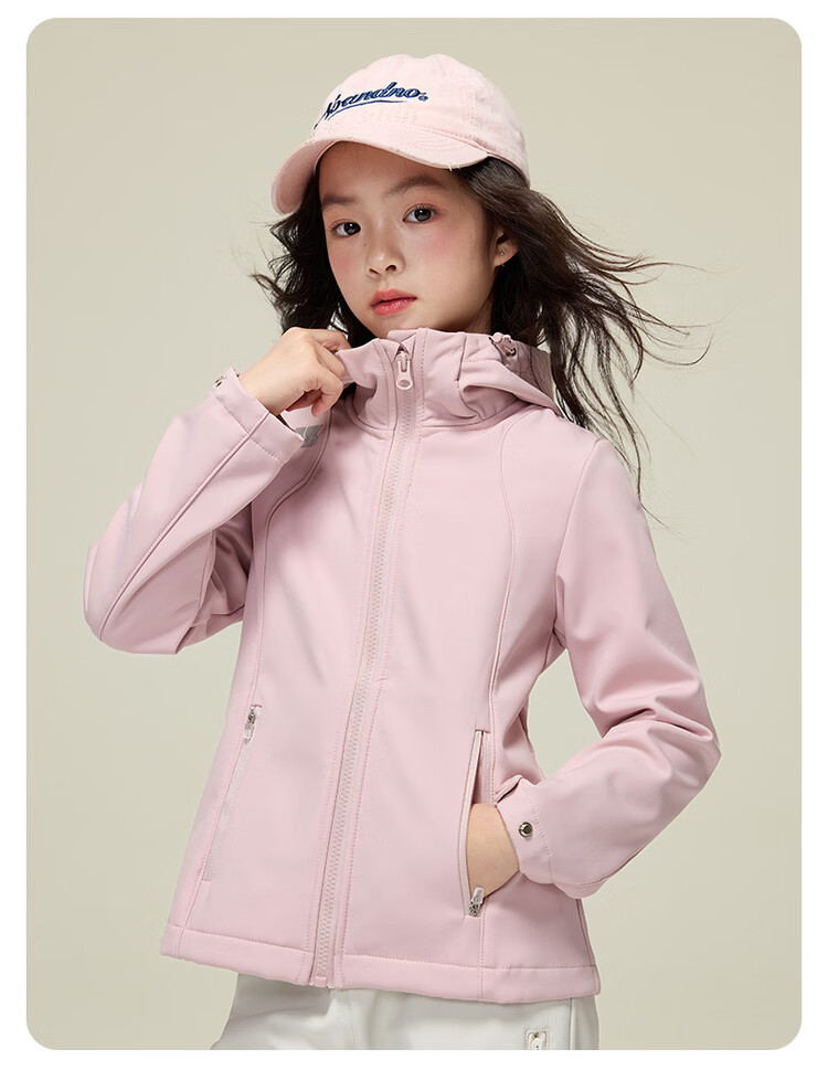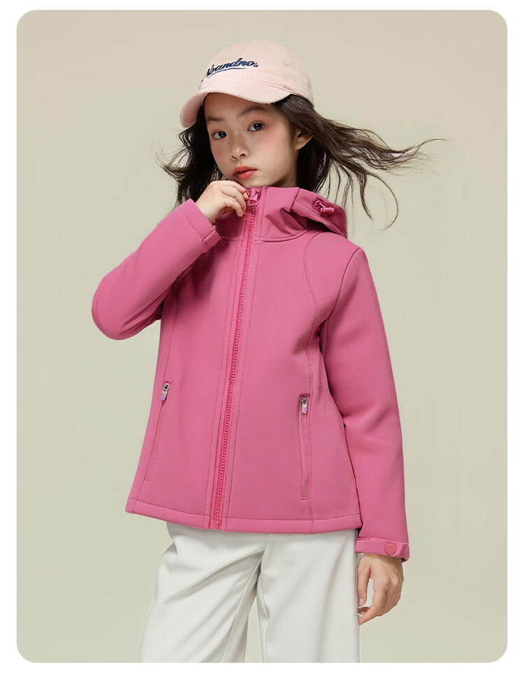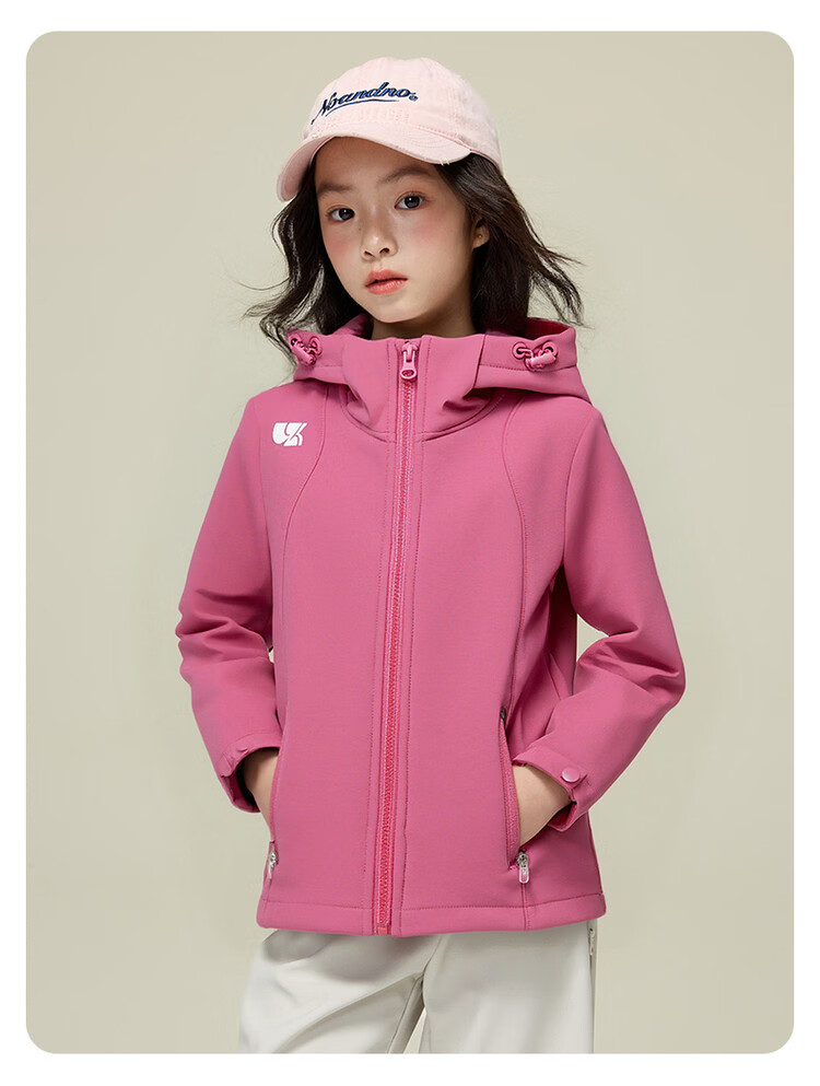 媛媛公主【山系户外】女童薄绒外套初春儿童软壳登山服中大童春秋款派克服 玫红色【防风软壳登山服】 110
