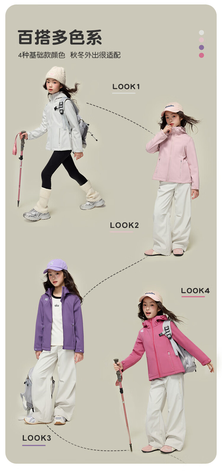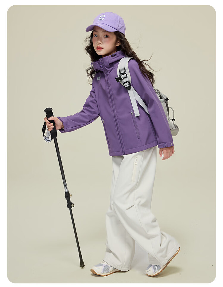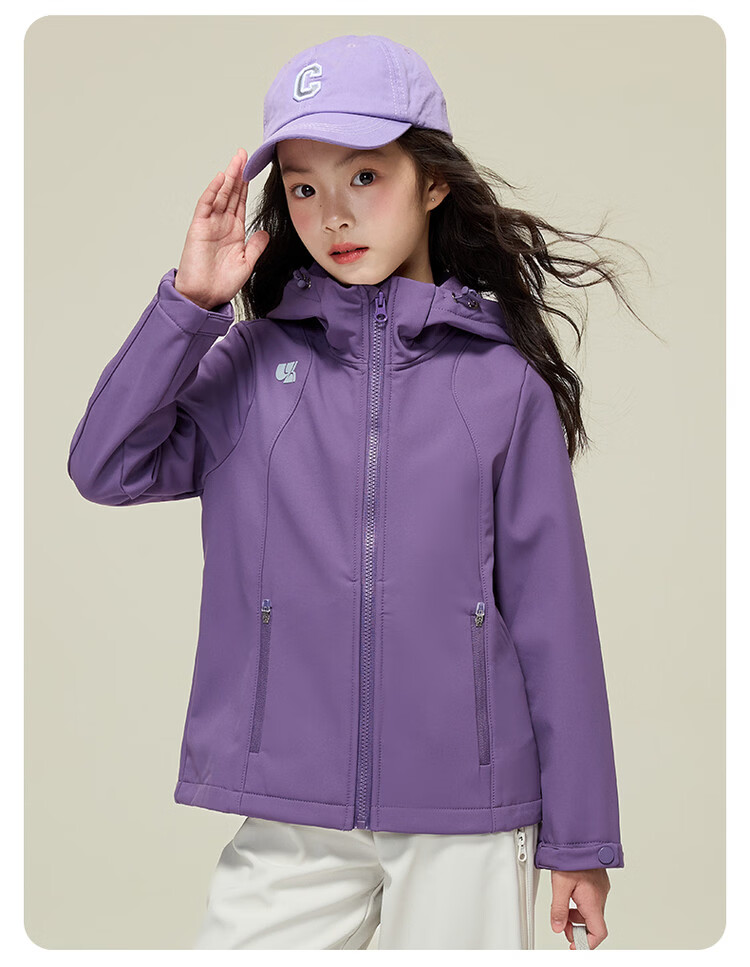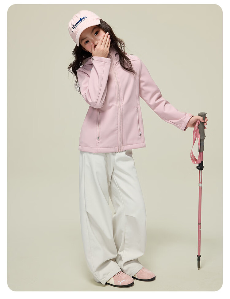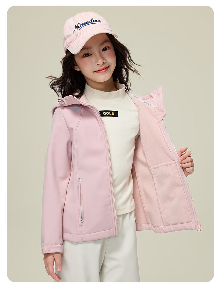 媛媛公主【山系户外】女童薄绒外套初春儿童软壳登山服中大童春秋款派克服 玫红色【防风软壳登山服】 110