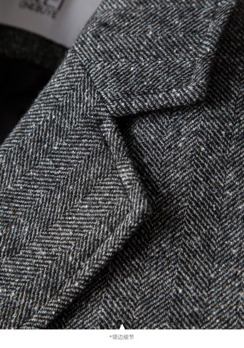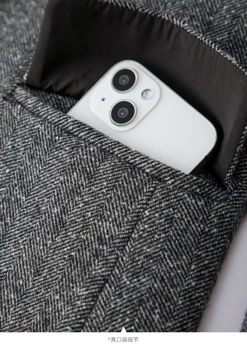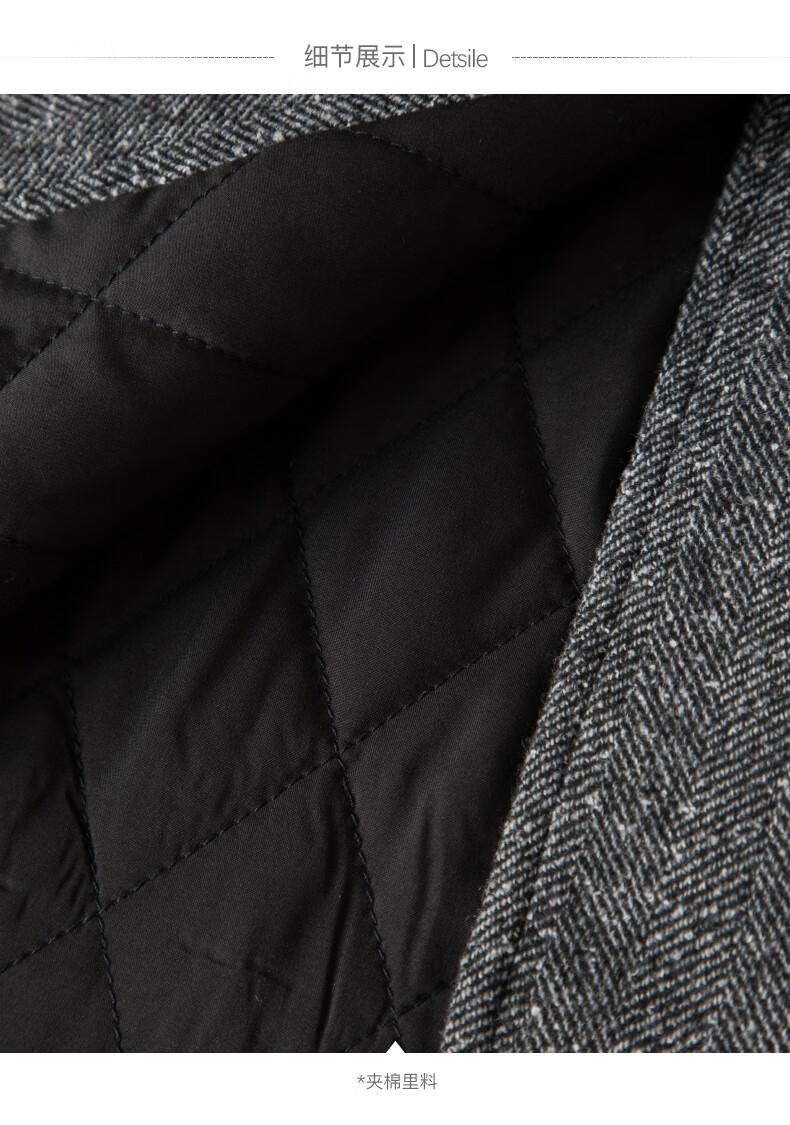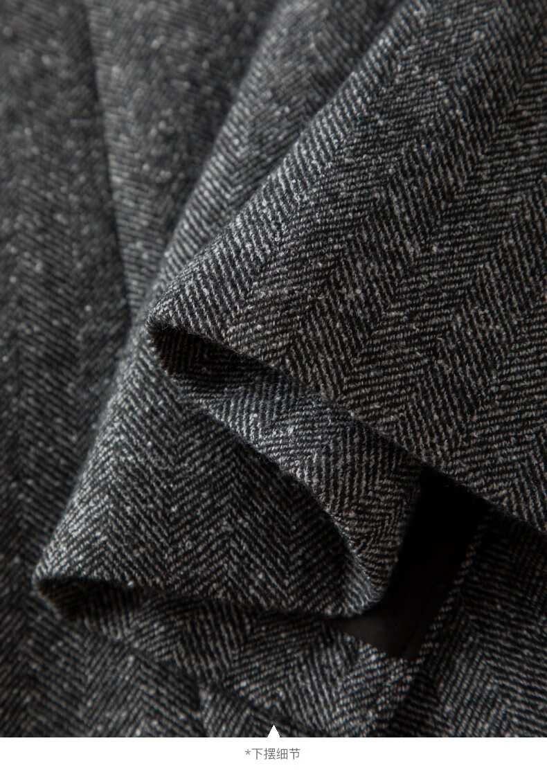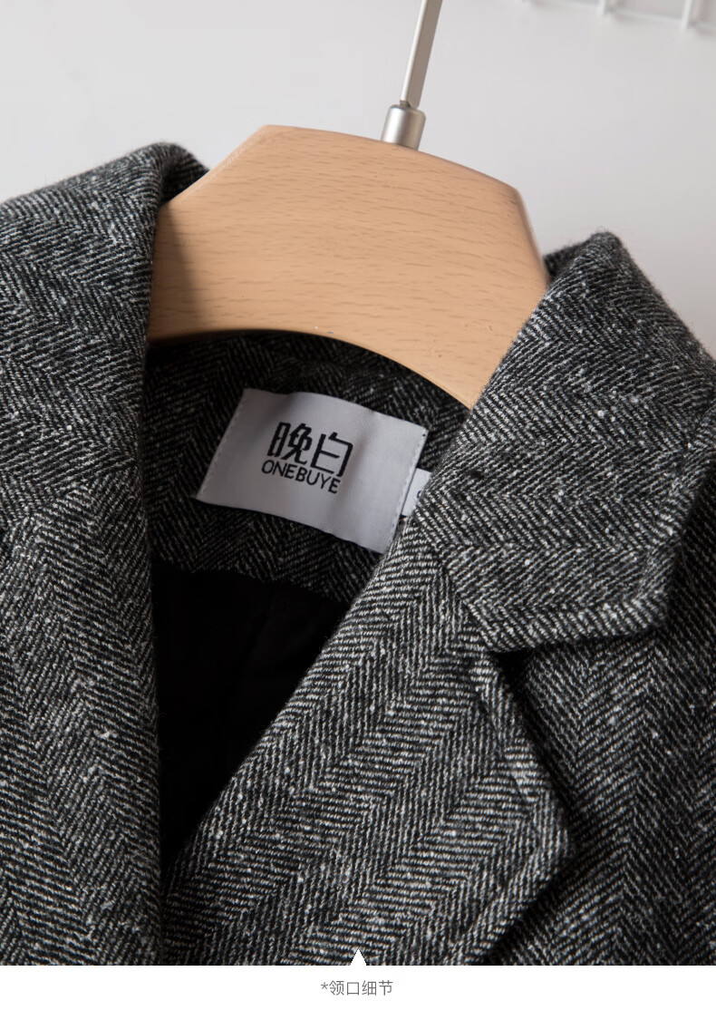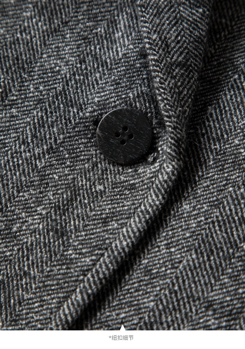 晚白【新品】冬款老钱静奢风粗花呢羊毛翻驳领西装气质夹棉格雷灰外套 深灰色 L