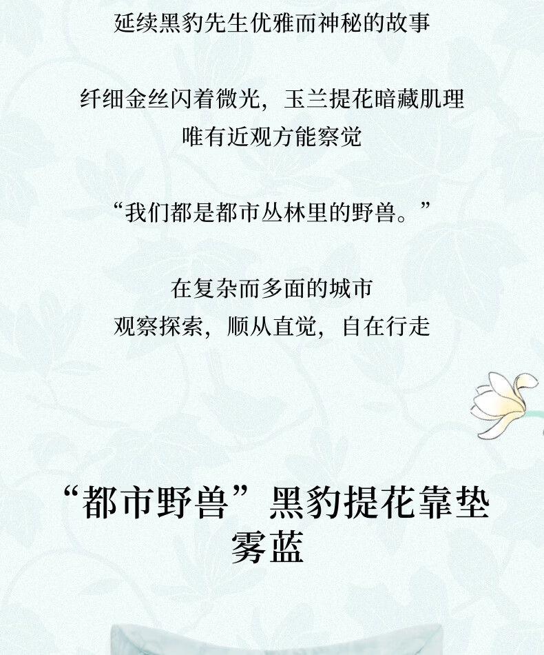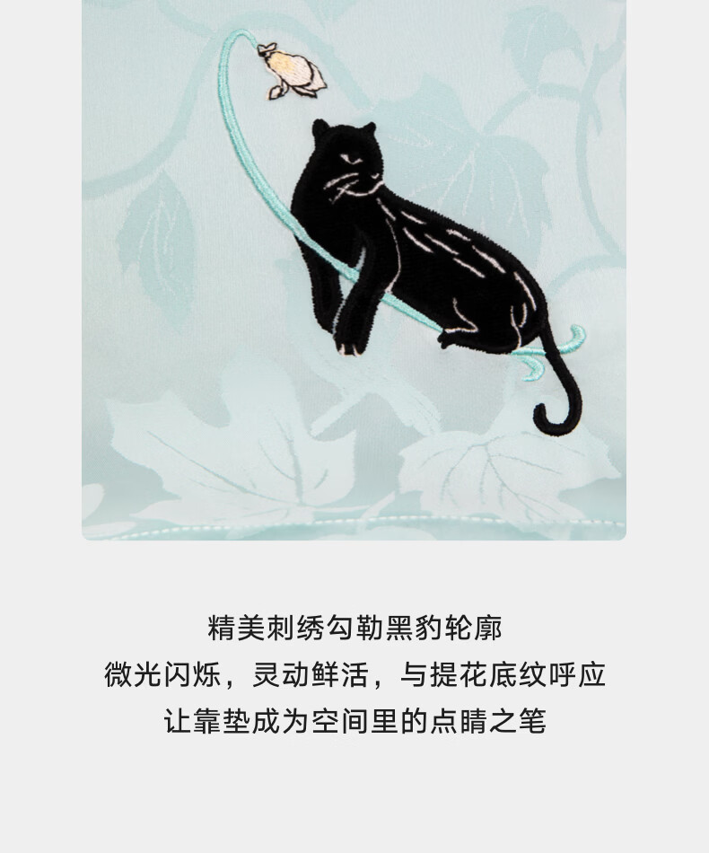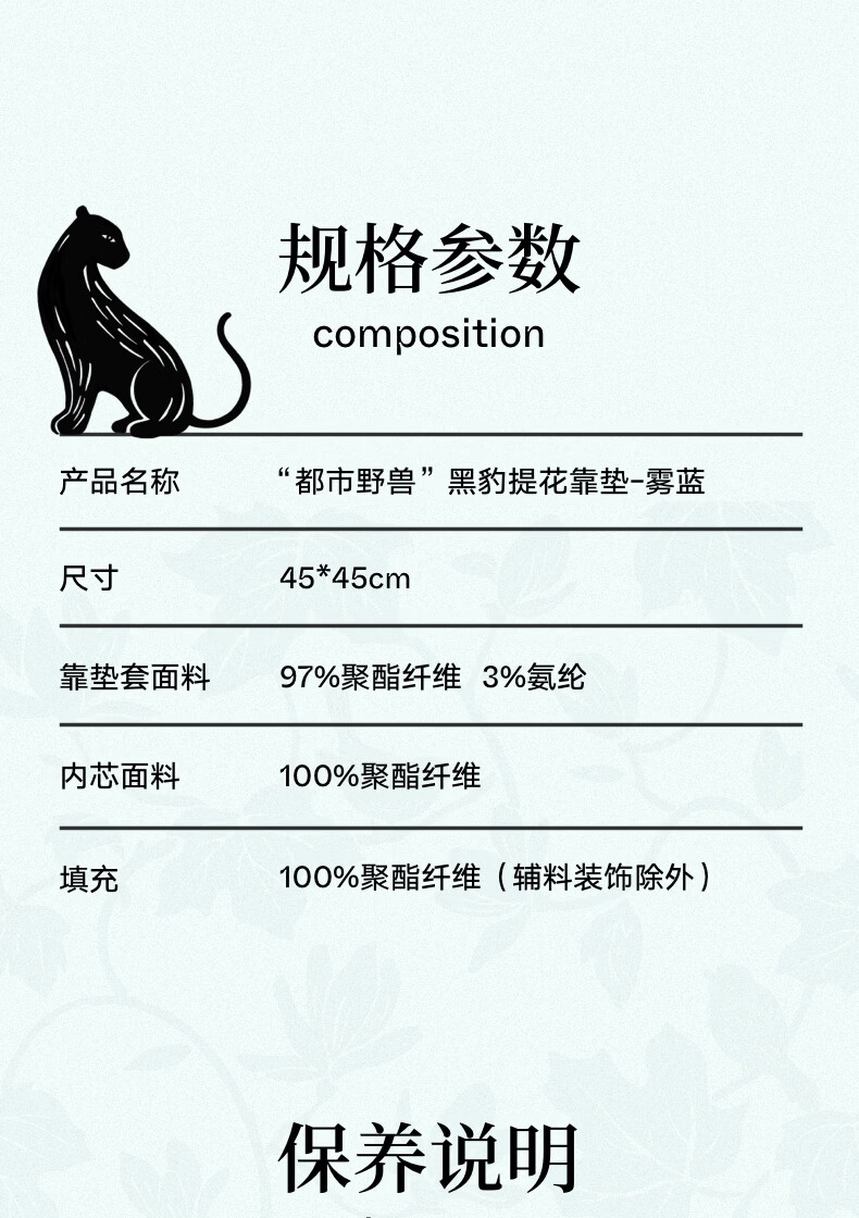 野兽派家居(tbh)都市野兽黑豹提花靠垫客厅沙发抱枕办公室靠枕礼物 “都市野兽”黑豹提花靠垫 雾蓝