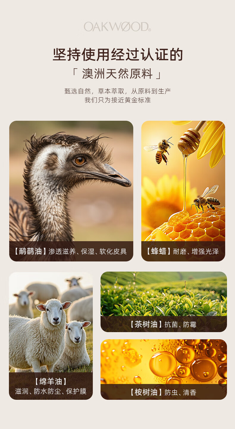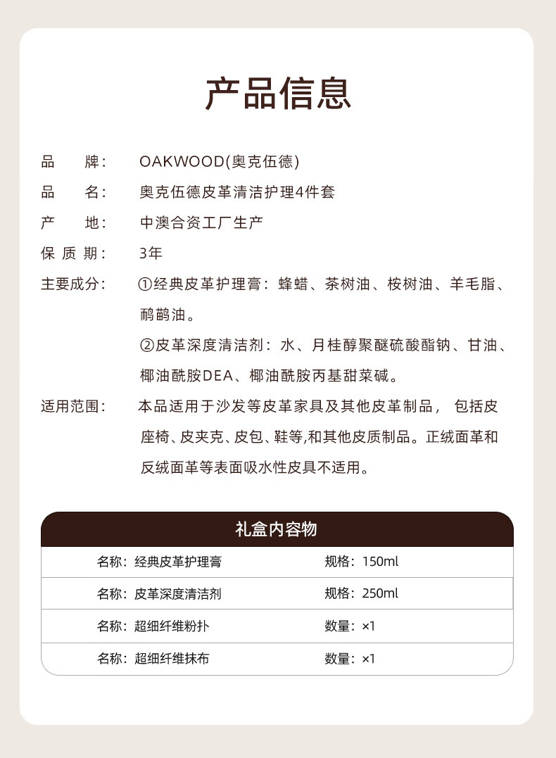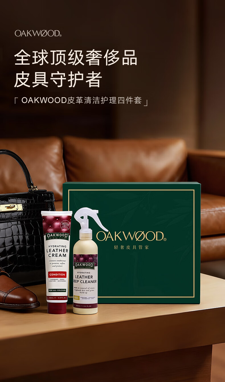 奥克伍德(OAKWOOD)澳洲轻奢皮具养护四件套400mL 皮革清洁护理真皮沙发皮衣皮具保养