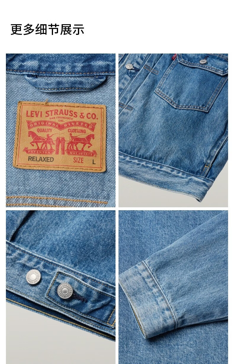 Levi's李维斯26年春夏新款男士美式复古工装风休闲牛仔夹克外套 蓝色 L