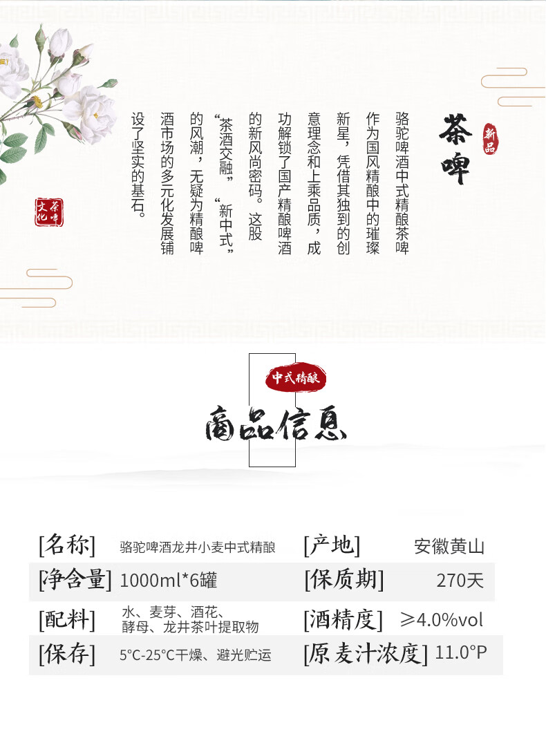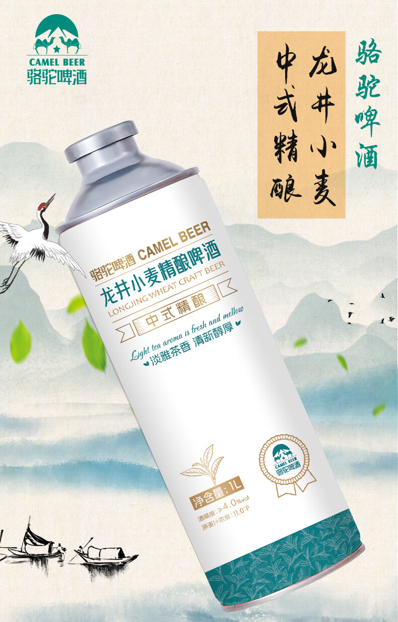 骆驼啤酒原浆精酿啤酒1000ml*6瓶龙井小麦茶啤酒整箱批发桶装京东快递发货 茶香醉人 1000mL 6桶 整箱装