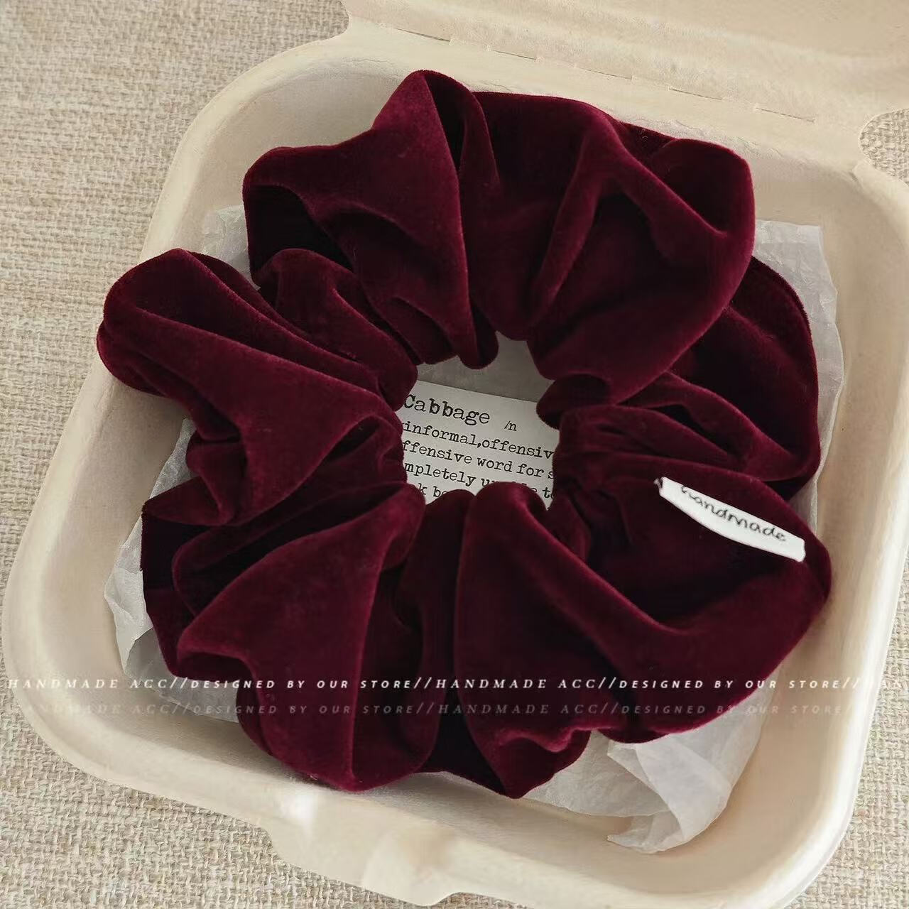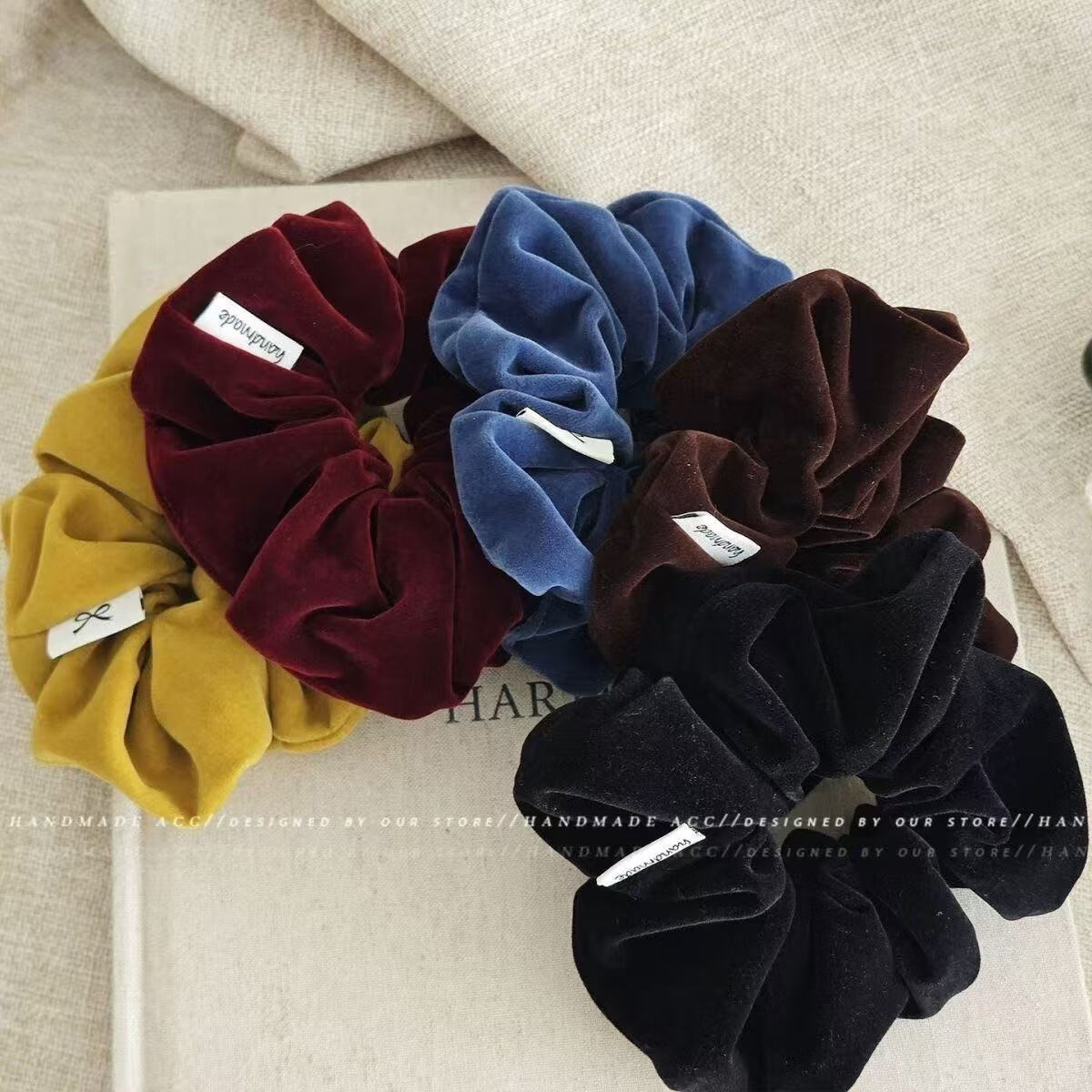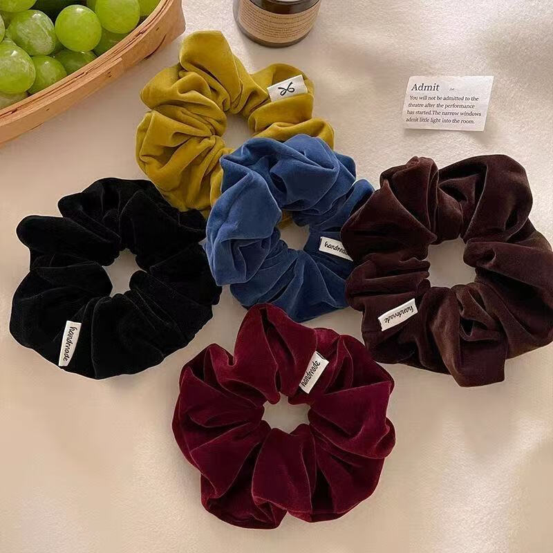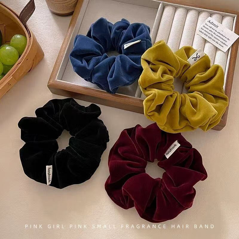 复古丝绒大肠发圈女扎马尾头绳高级感丸子头发绳2025儿童皮筋发饰 2个#酒红+黑色