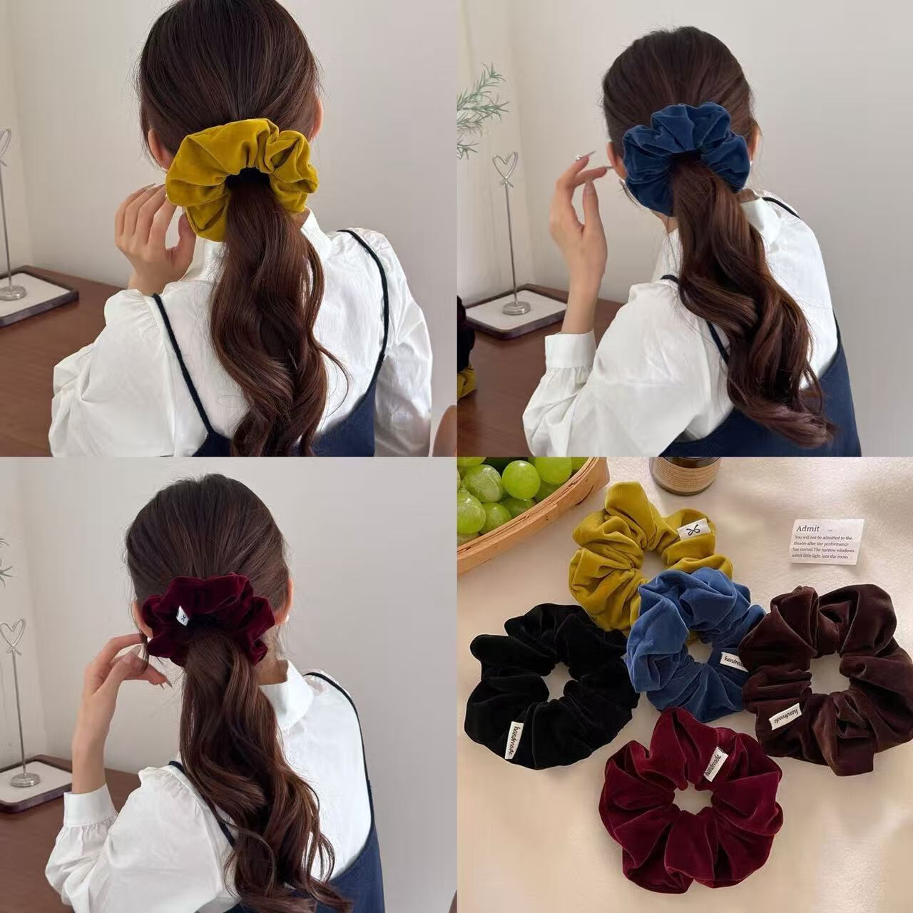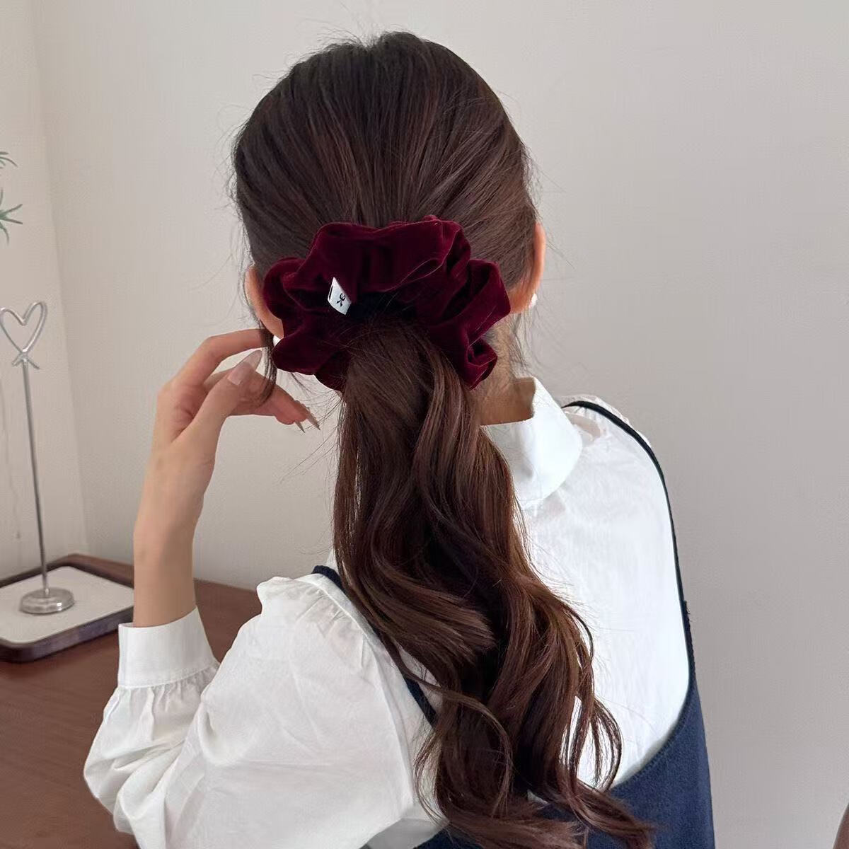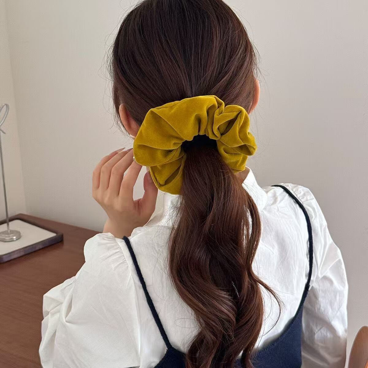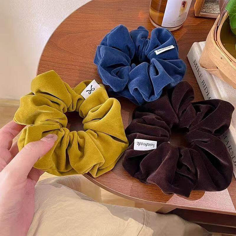 复古丝绒大肠发圈女扎马尾头绳高级感丸子头发绳2025儿童皮筋发饰 2个#酒红+黑色