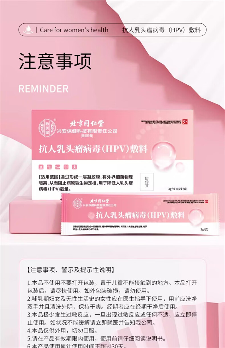 同仁堂(TRT)北京同仁堂抗人乳头瘤病毒HPV敷料生物蛋白功能凝胶私密护理高低 买三送二实发5盒25支