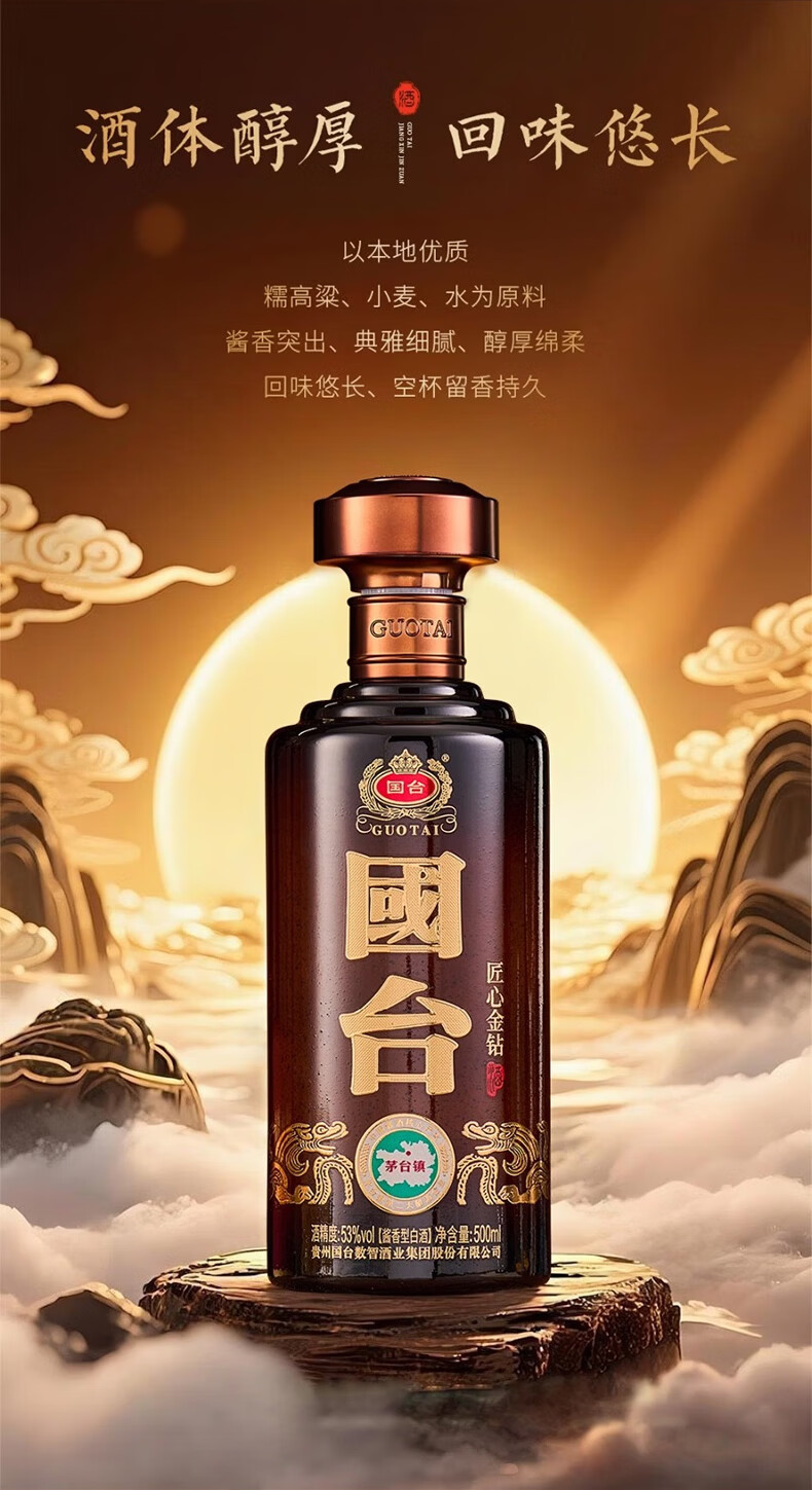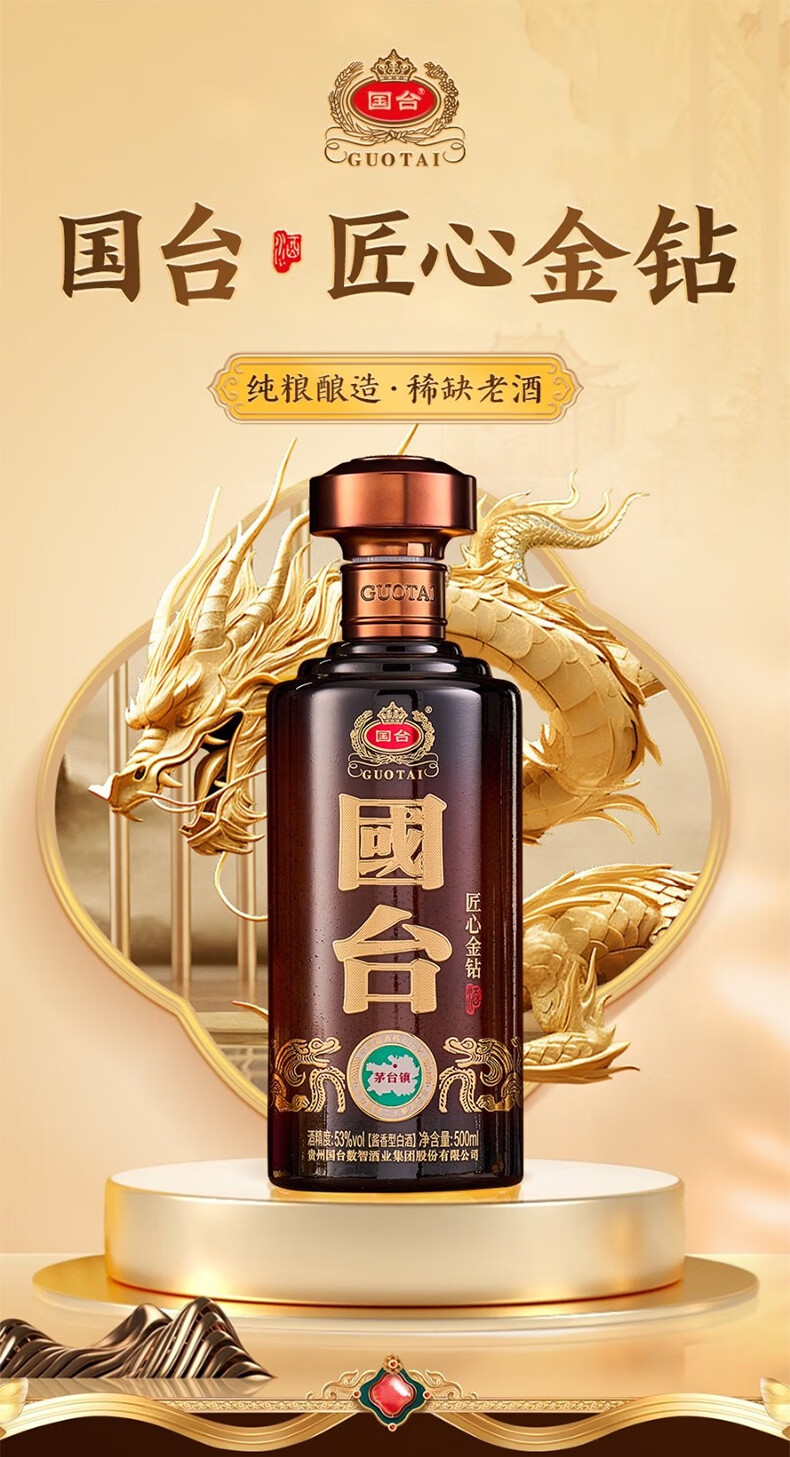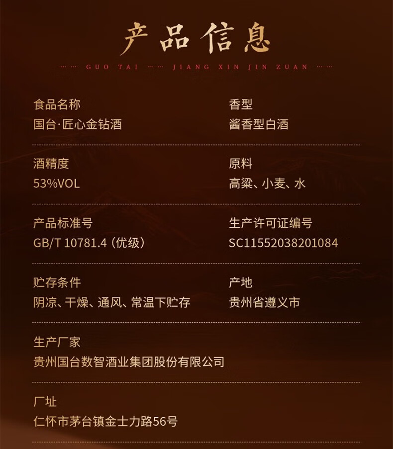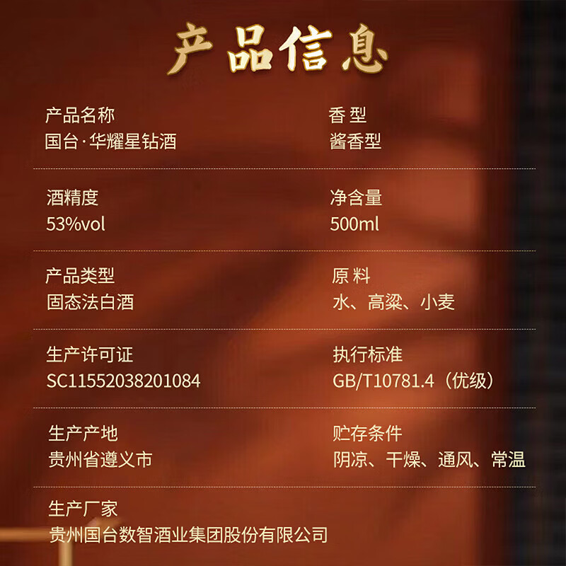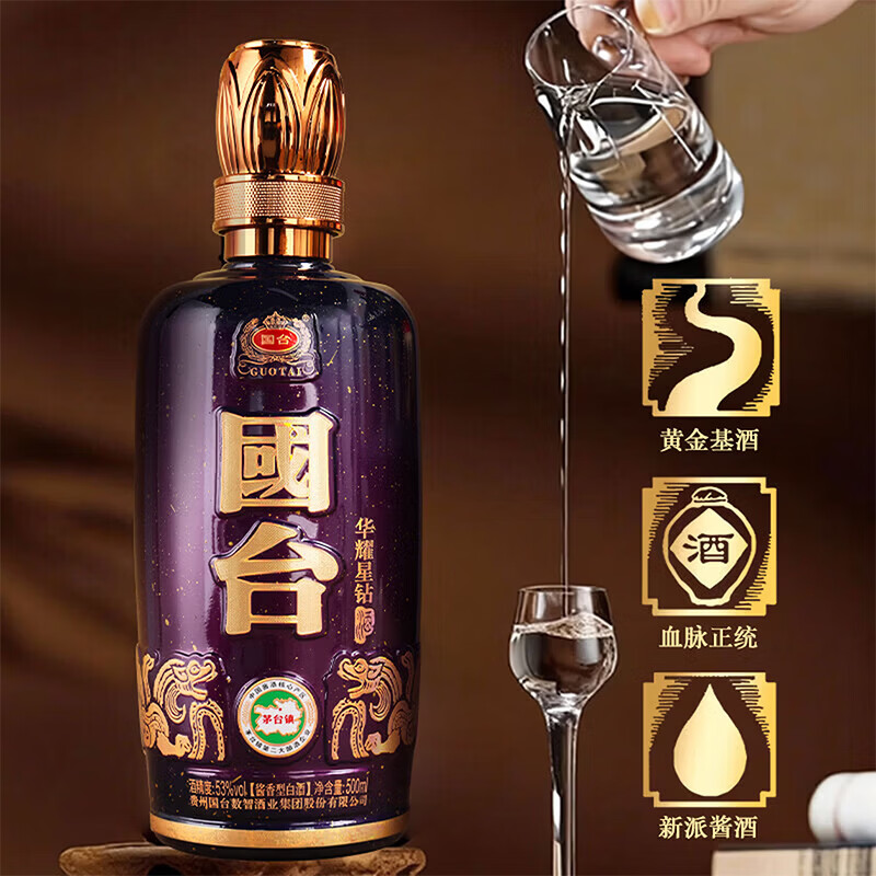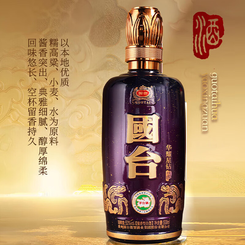 国台华耀星钻/匠心金钻 53度酱香型白酒礼盒装 53度 500mL 1瓶 53度 500mL 4瓶 匠心金钻 整箱