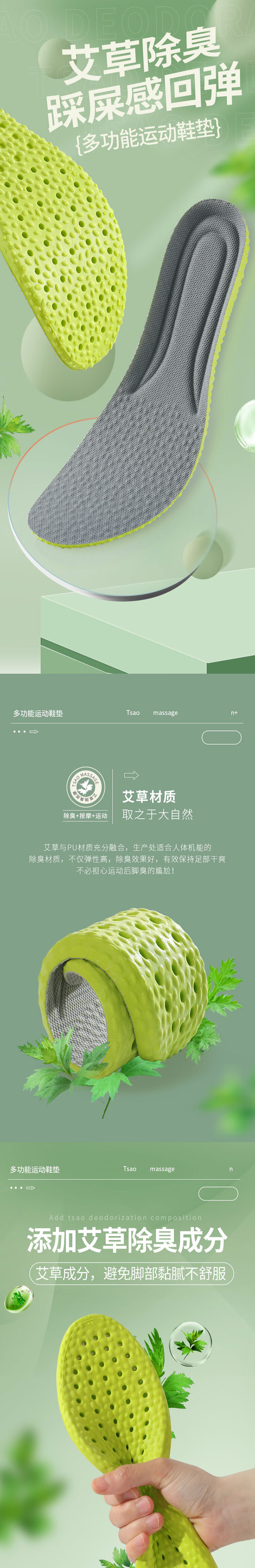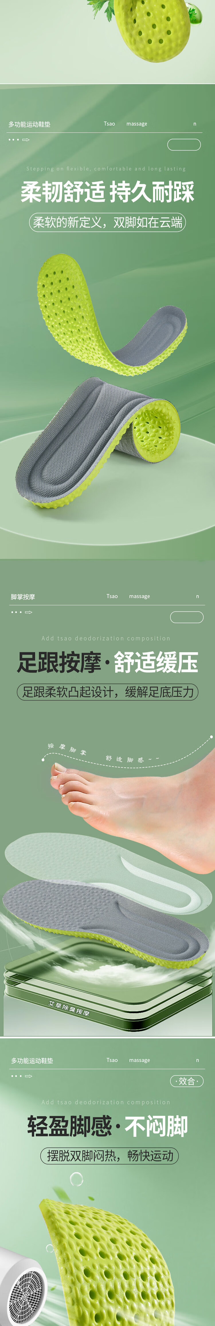 JVBV运动防臭鞋垫男吸汗透气抗菌冬季加厚保暖舒适减震软弹站久不累 2双-绿灰色【四季运动款】 4142码