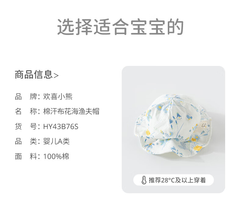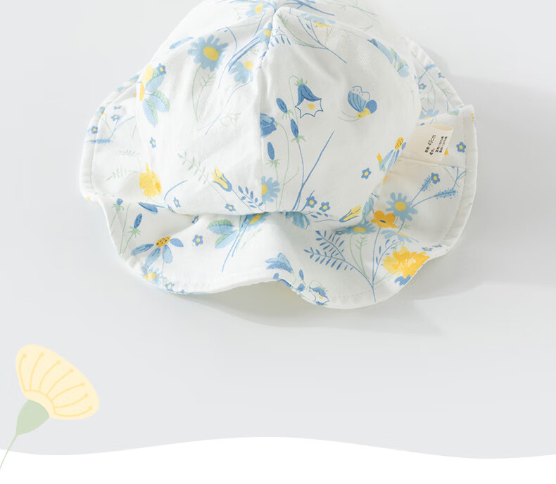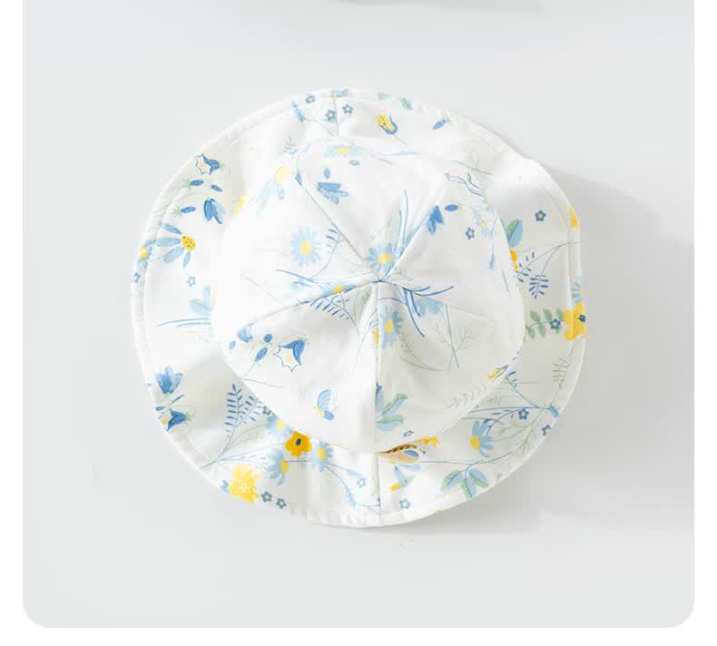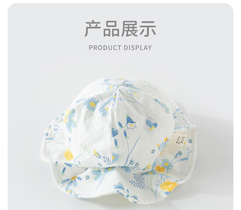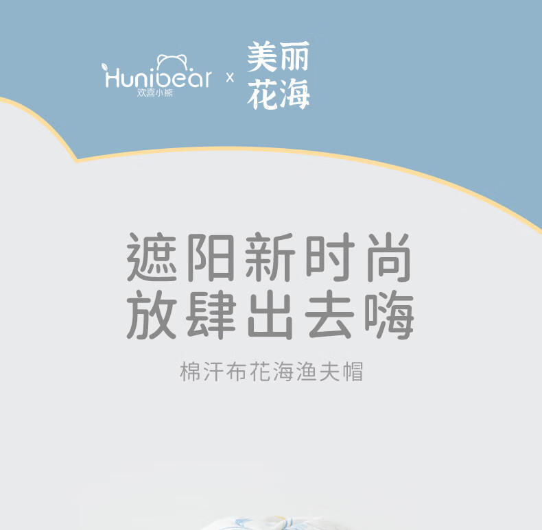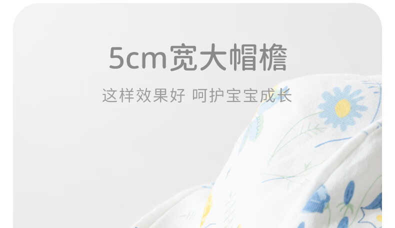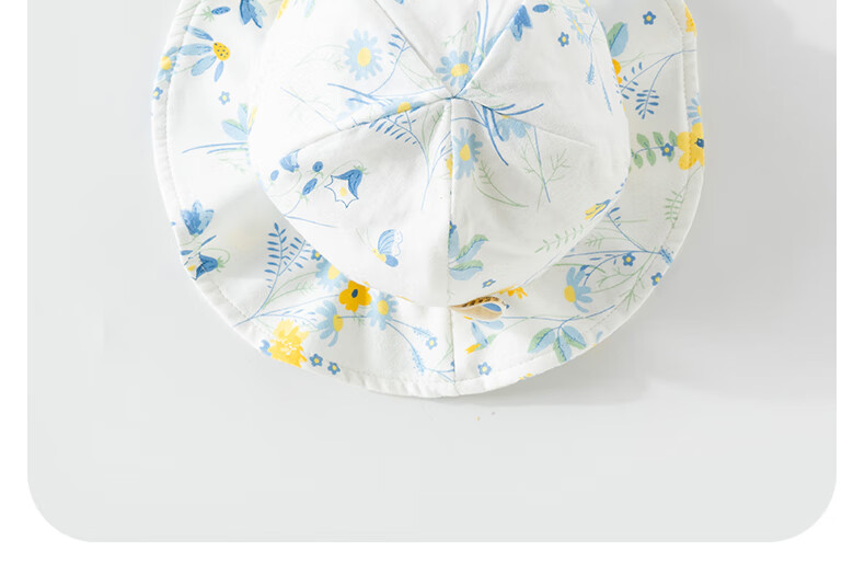 欢喜小熊 婴儿夏季渔夫帽女宝宝薄款遮阳帽幼儿夏天帽子宽檐太阳帽 天空蓝 M(44-47cm)
