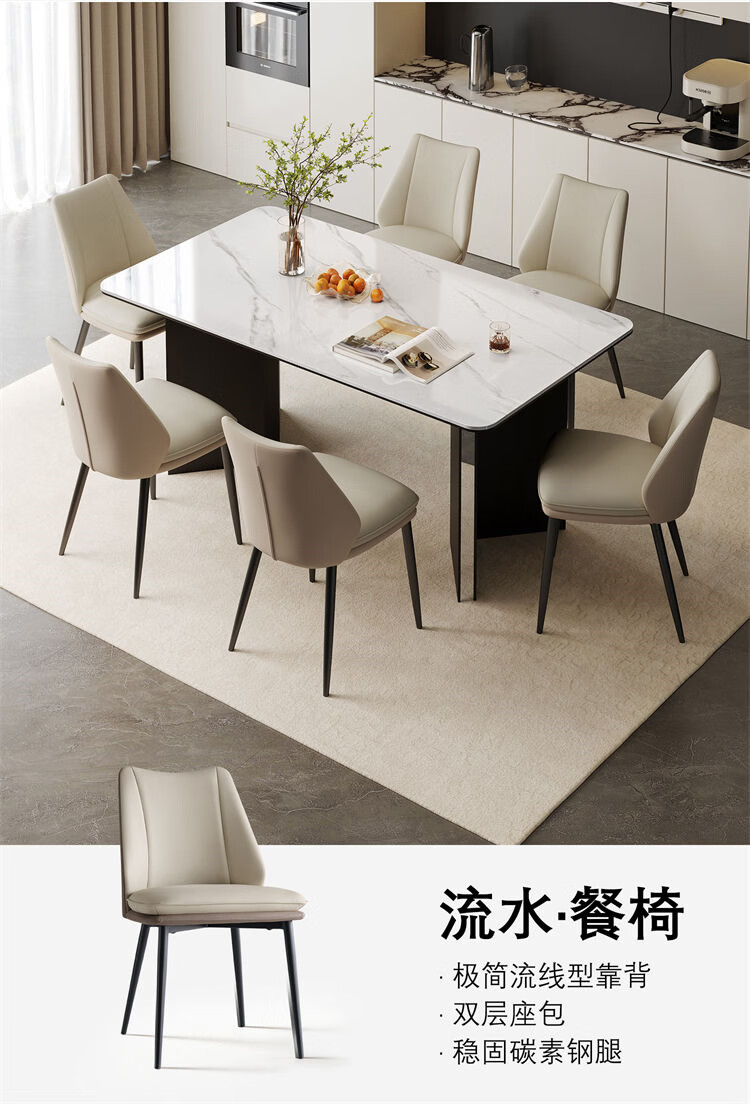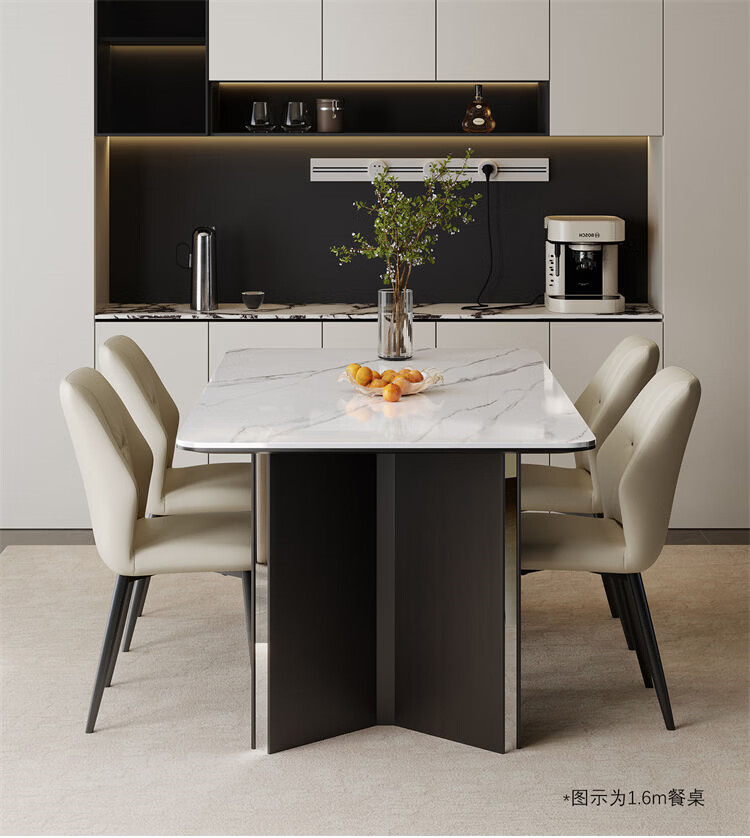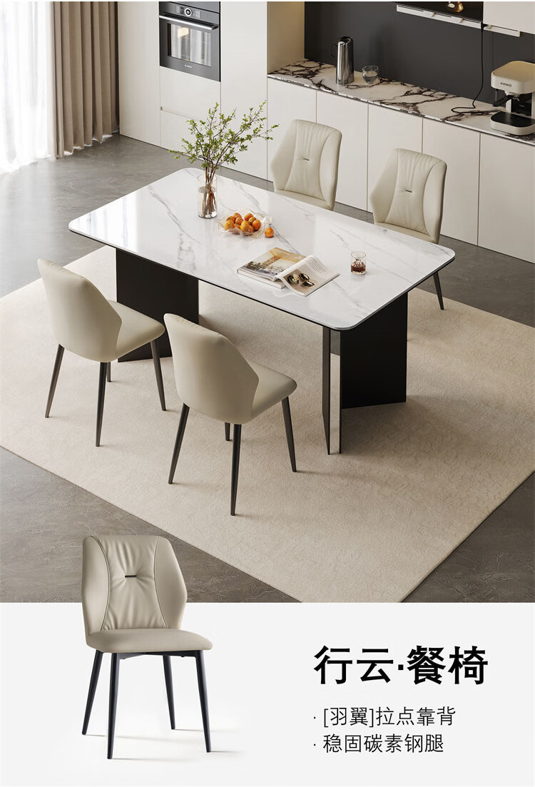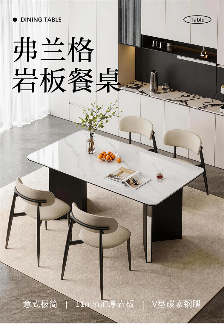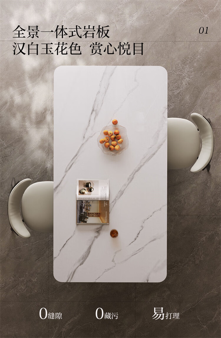 全友家居意式极简餐桌椅全套高级感2026新款岩板餐桌子客厅家用小户型 【汉白玉色 | 亮光岩板】1.6米餐桌