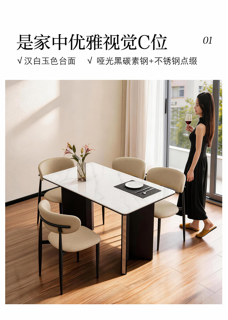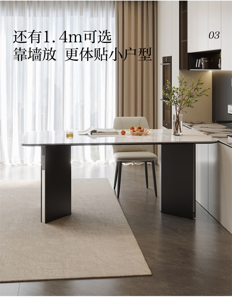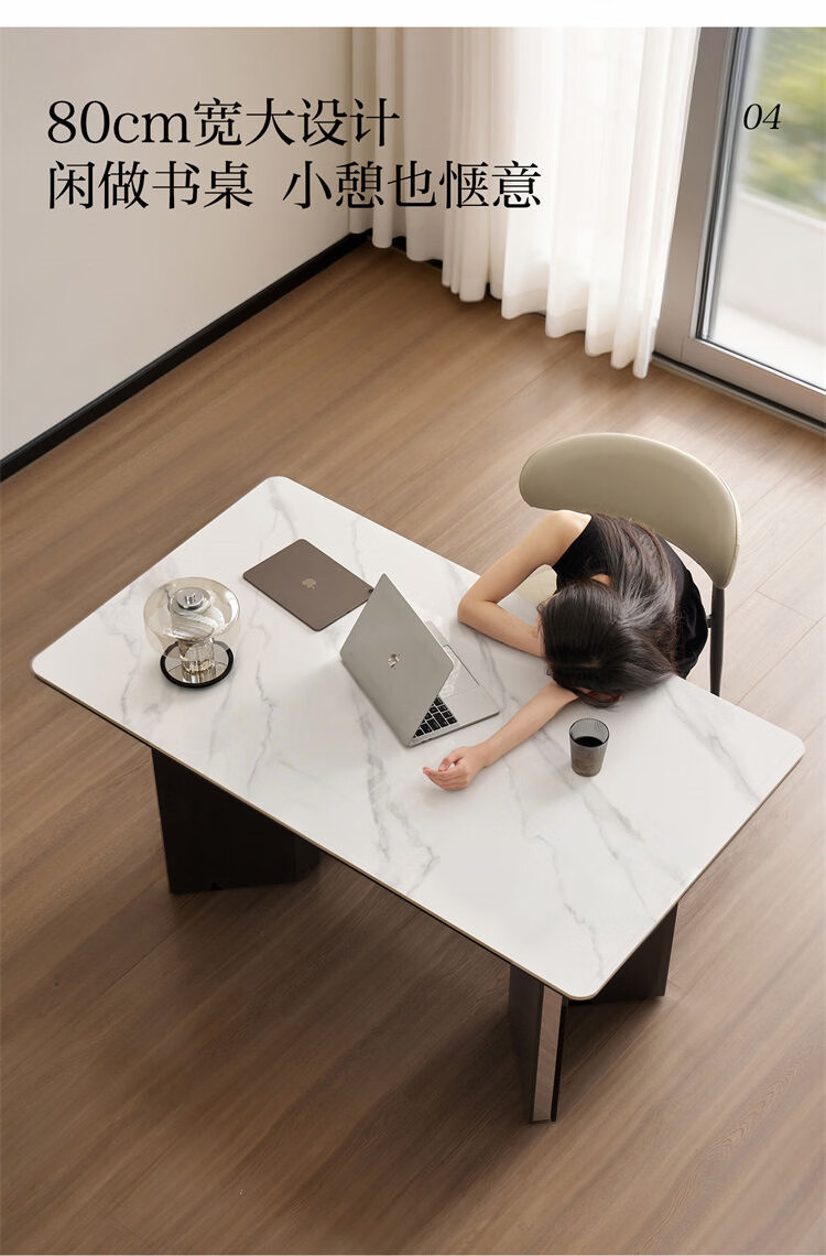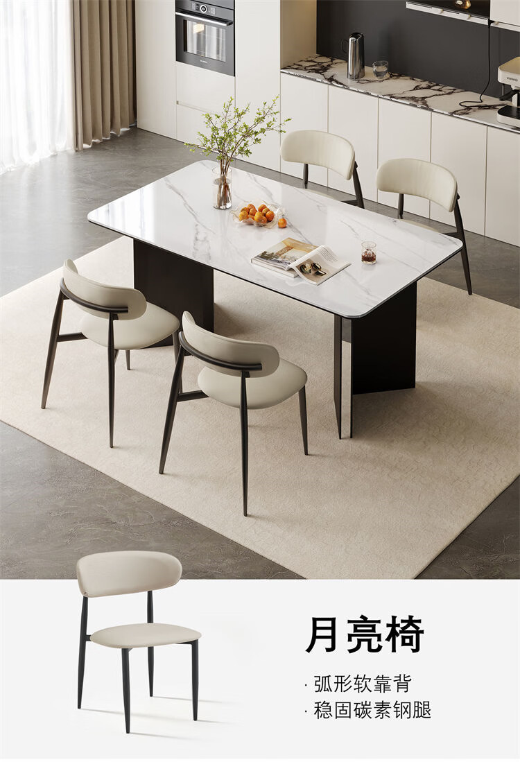 全友家居意式极简餐桌椅全套高级感2026新款岩板餐桌子客厅家用小户型 【汉白玉色 | 亮光岩板】1.6米餐桌