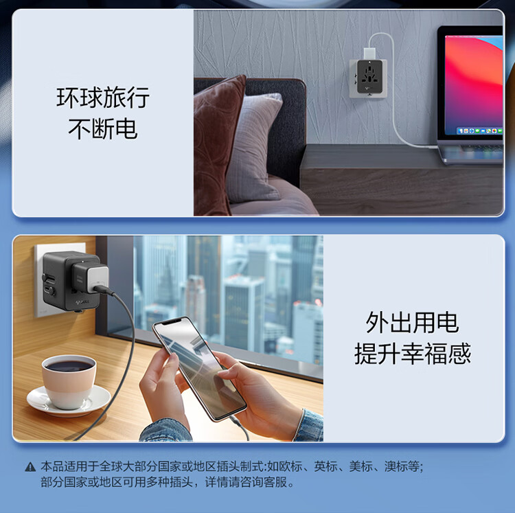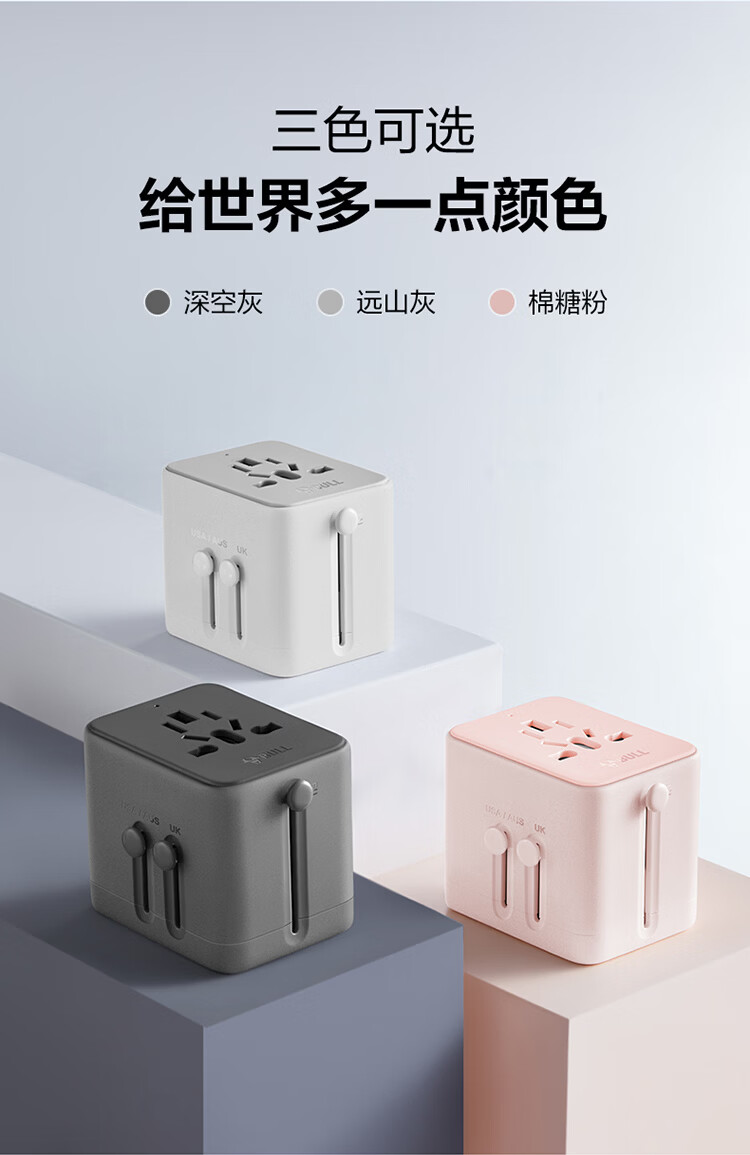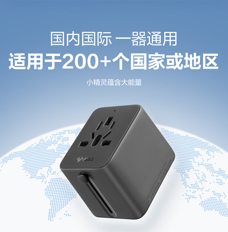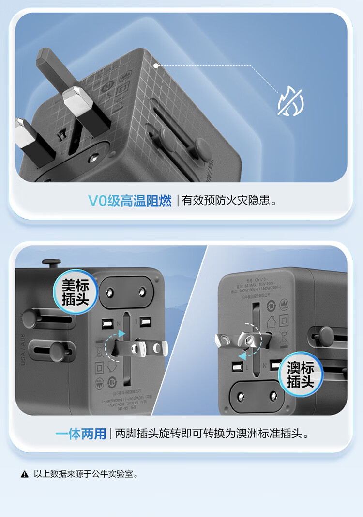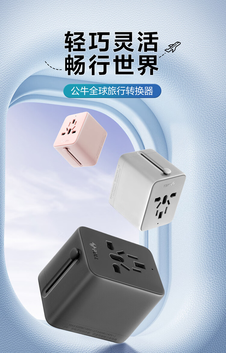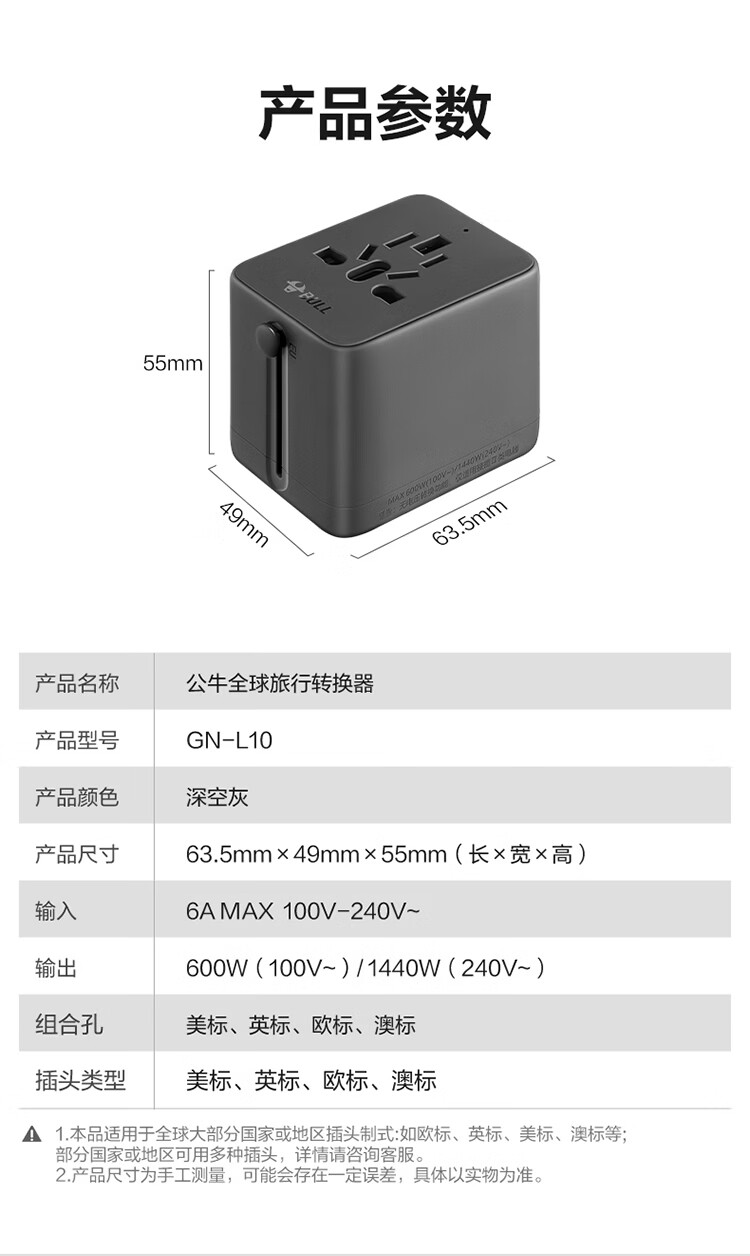 公牛(BULL)2位多国插座畅行世界转换插头/出国旅行出差留学超功率保护插头欧标美标澳标英标GN-L10 深空灰