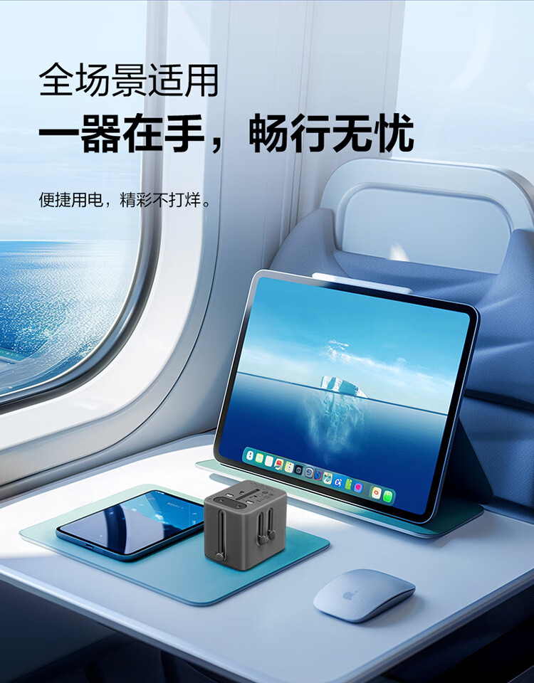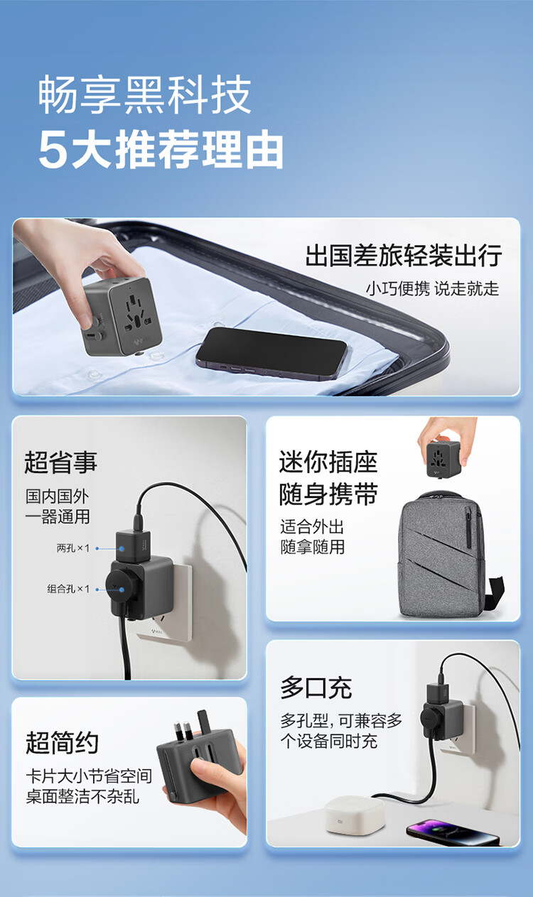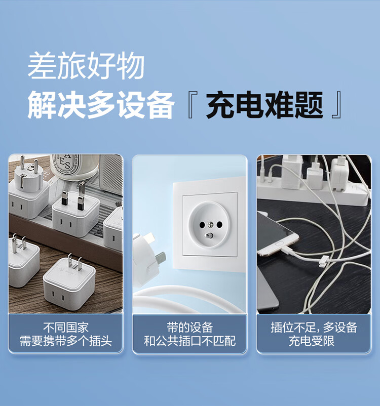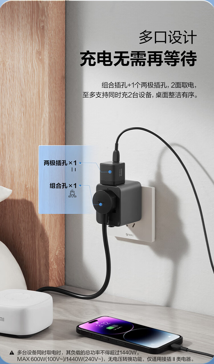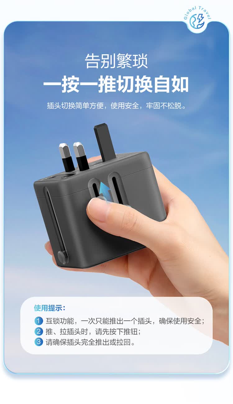公牛(BULL)2位多国插座畅行世界转换插头/出国旅行出差留学超功率保护插头欧标美标澳标英标GN-L10 深空灰