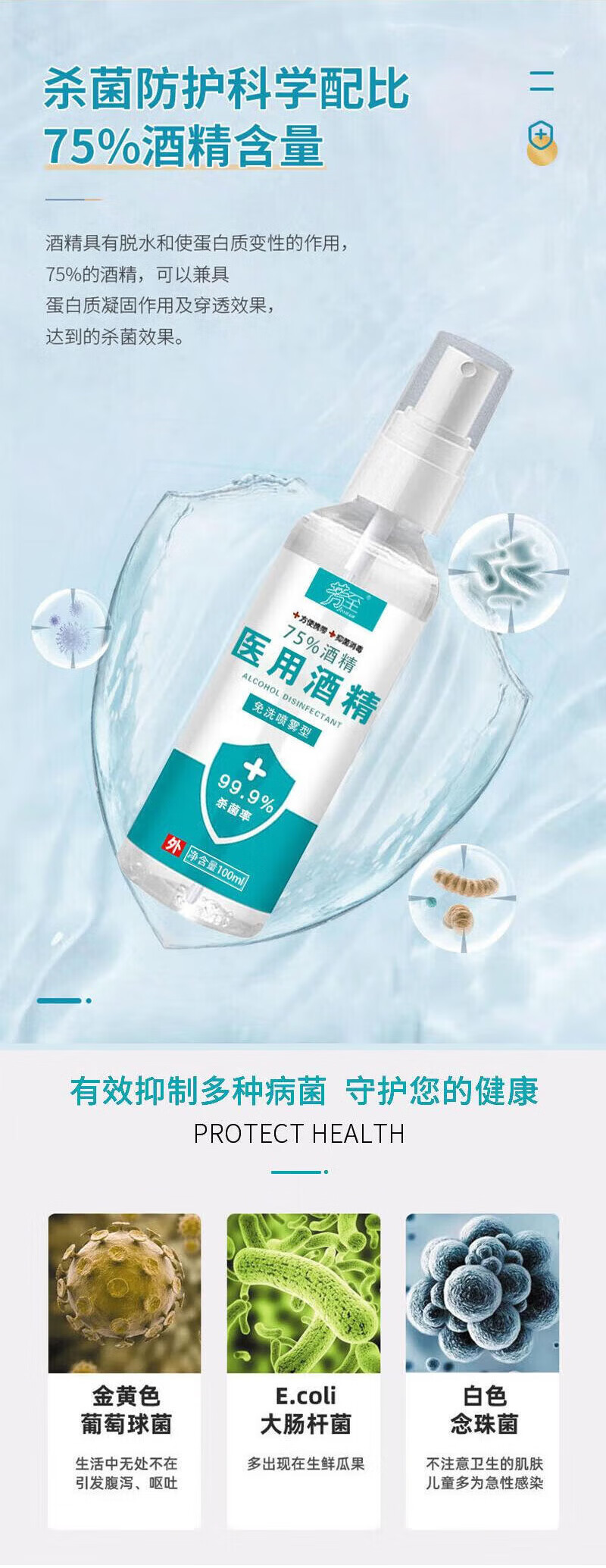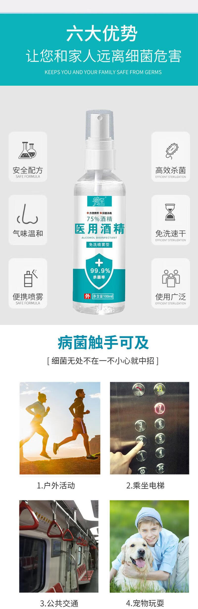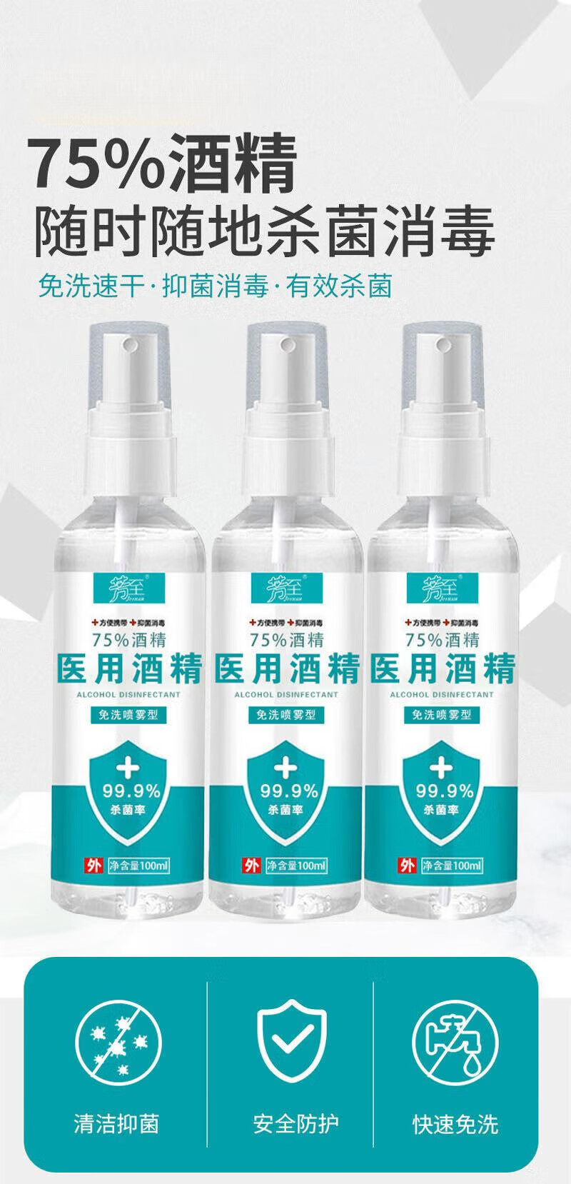 芳至【厂家直供】75酒精喷雾速干液便携式酒精喷雾 500ml*1瓶 酒精喷雾(新老包装随机发)