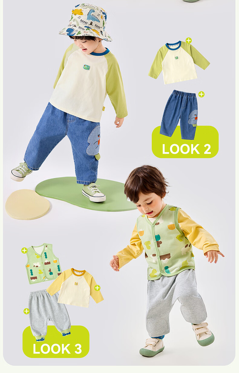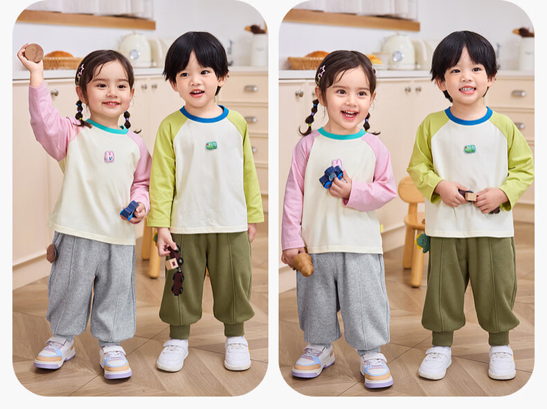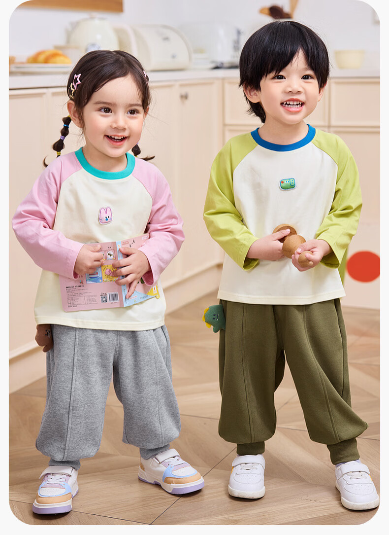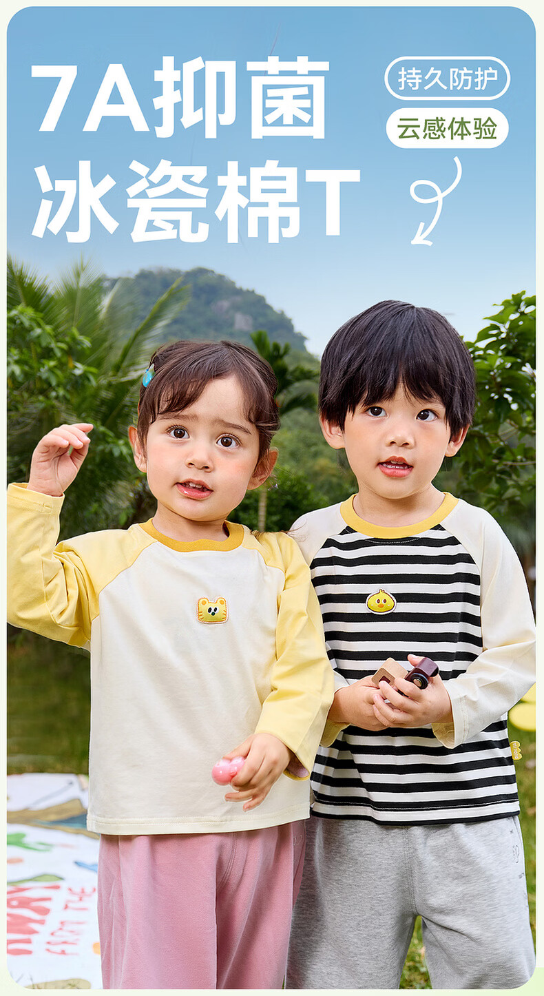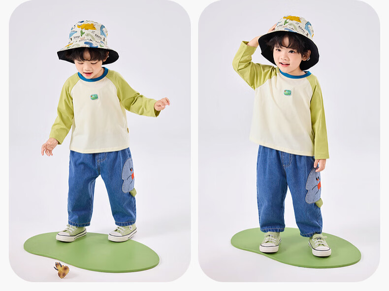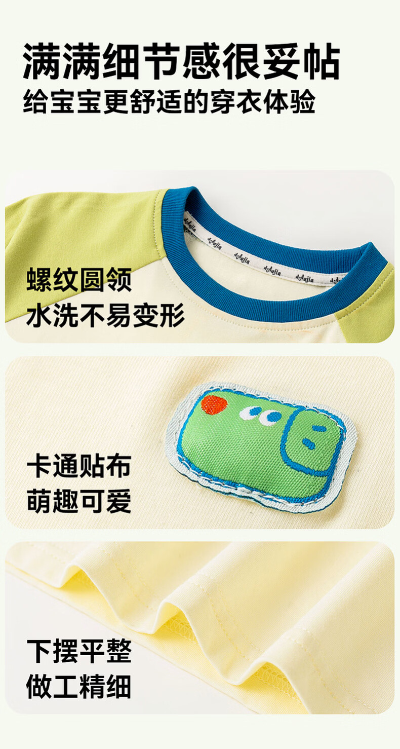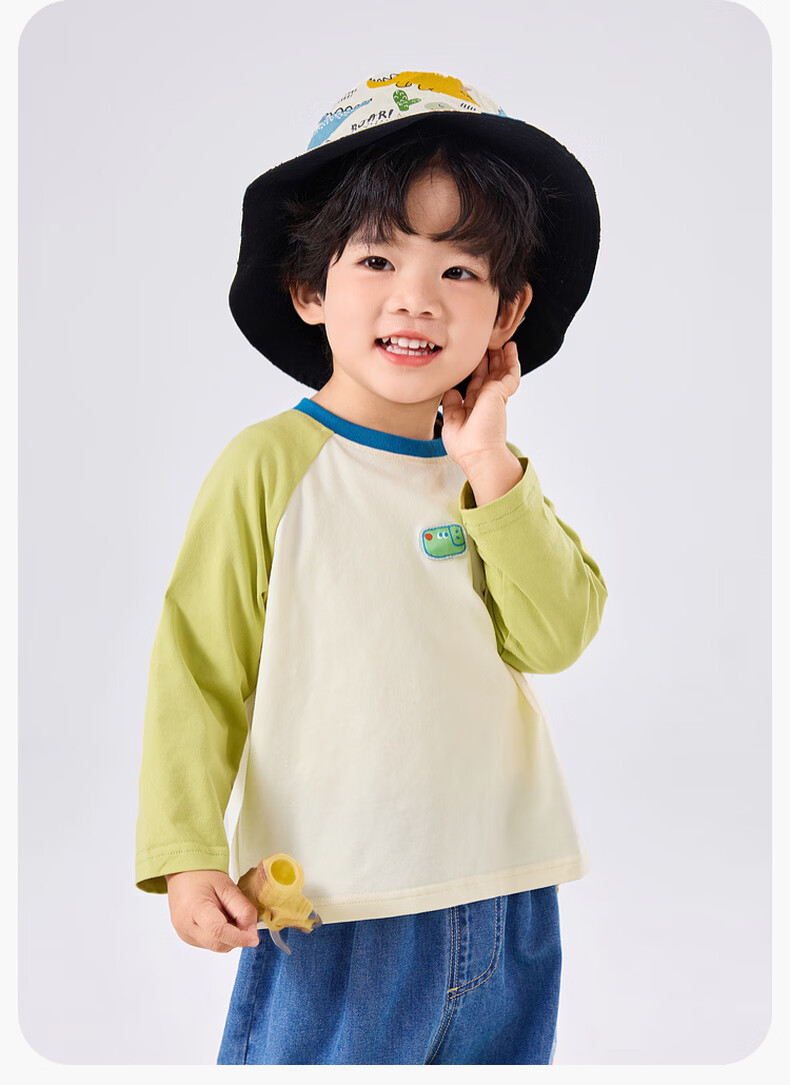 嘟嘟家【7A抑菌】儿童t恤卡通春装男童长袖衣服洋气潮女童春季上衣时髦 绿色 100