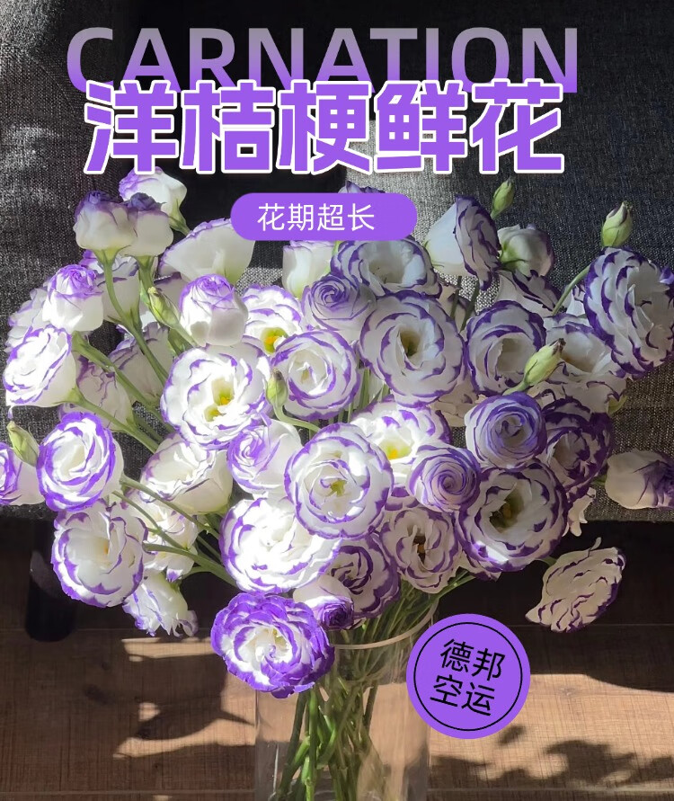 花间町紫边色洋桔梗鲜花束云南昆明基地发鲜切花圣诞新年花礼物源头直发
