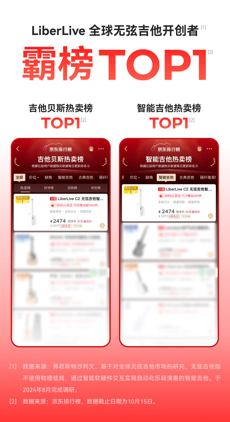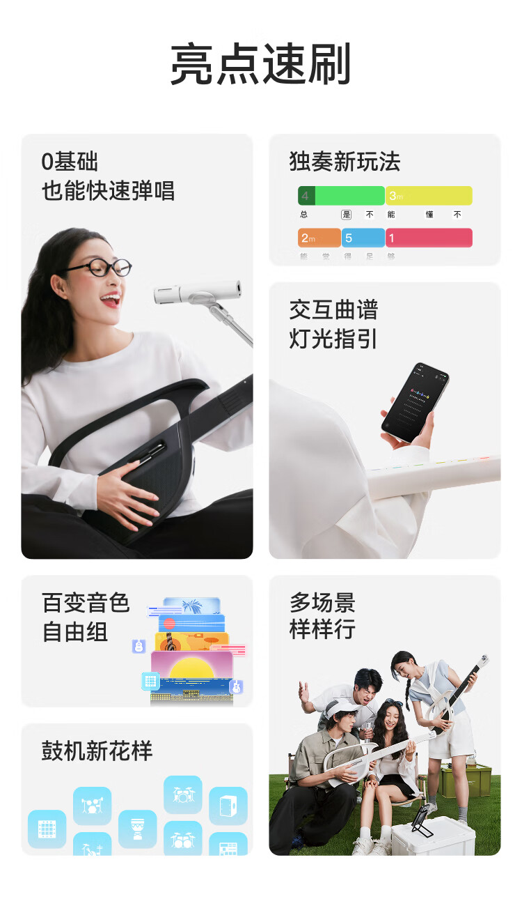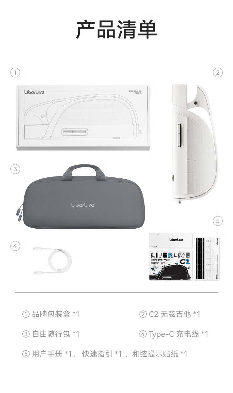 LIBERLIVE C2 无弦吉他智能电子吉他智能初学者自动挡吉他新年礼物 无垠白