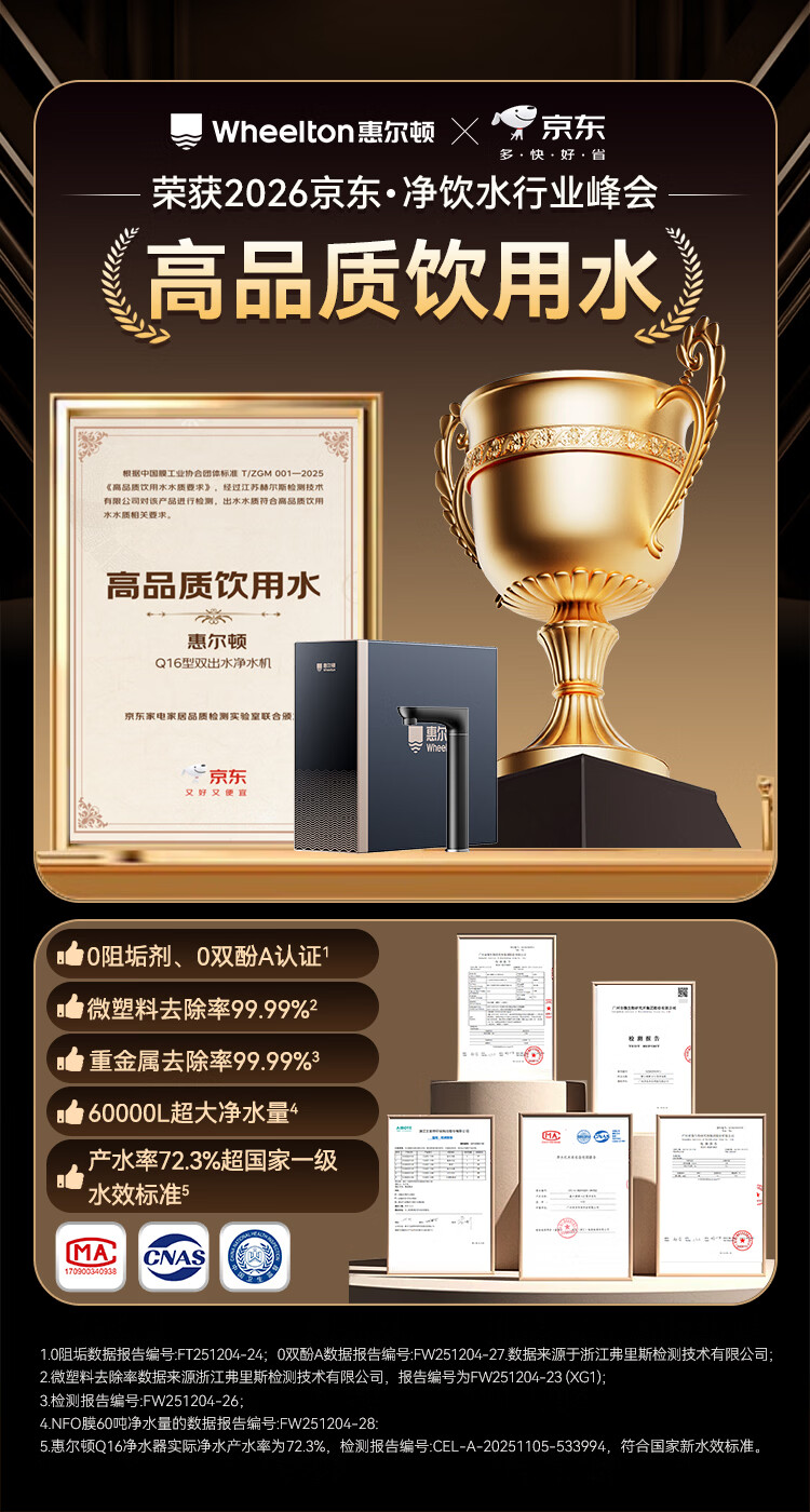 惠尔顿(WHEELTON)轻矿净水器家用厨下母婴8年RO反渗透直饮矿物质净水机加热壁挂式管线机接自来水全屋滤水器套装Q16 【1800G 8年长效】轻矿好水 健康直饮