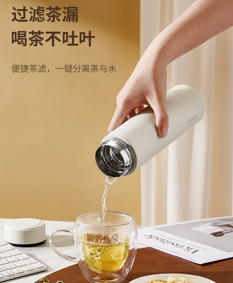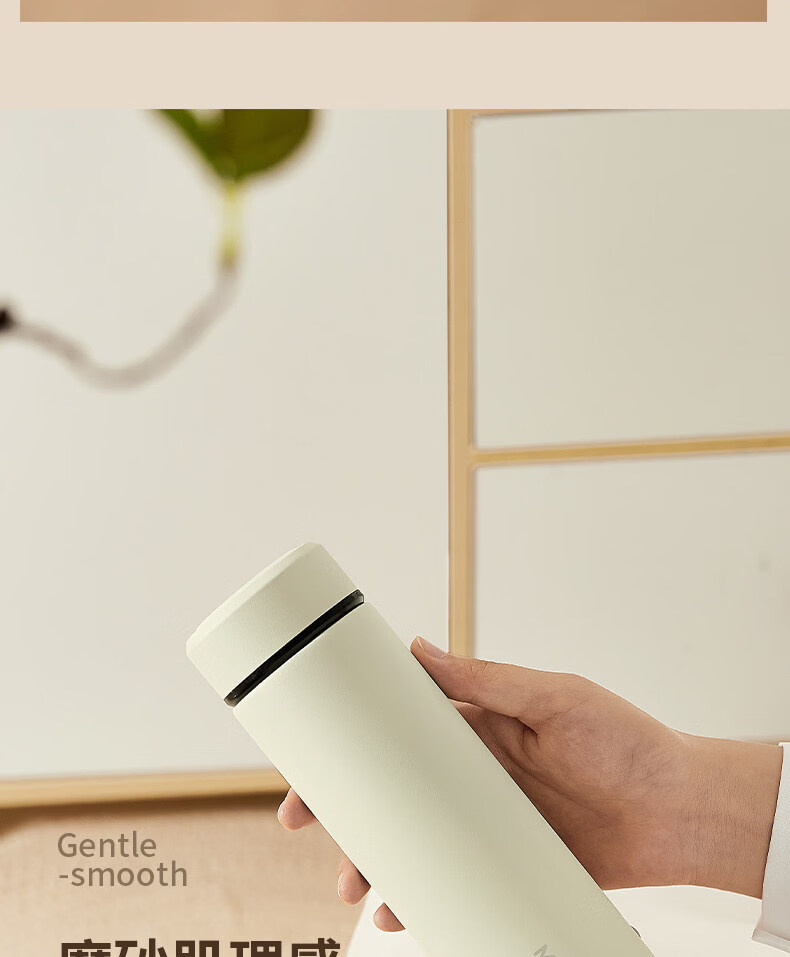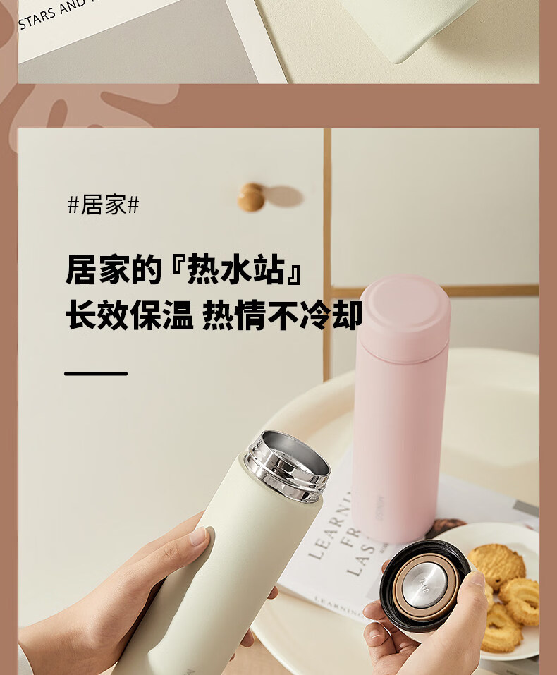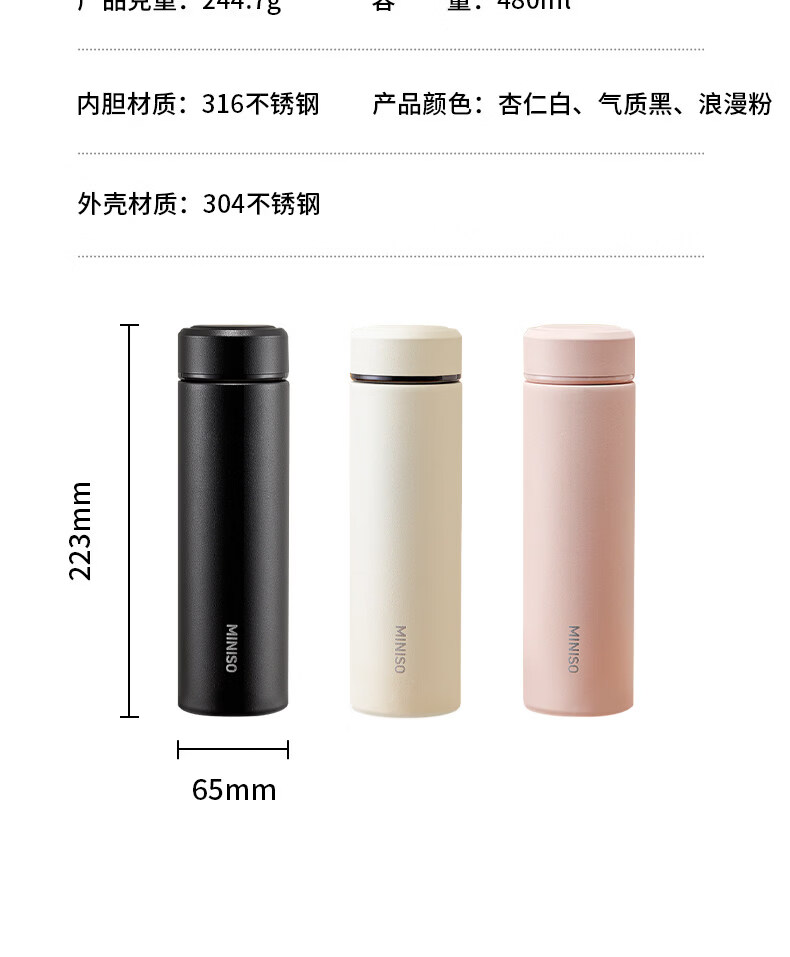 MZXM日本进口品质水杯男款女生可携式茶杯子不锈钢学生保温杯 【温显款】气质黑480ML【316内胆】+升级杯盖+升级316