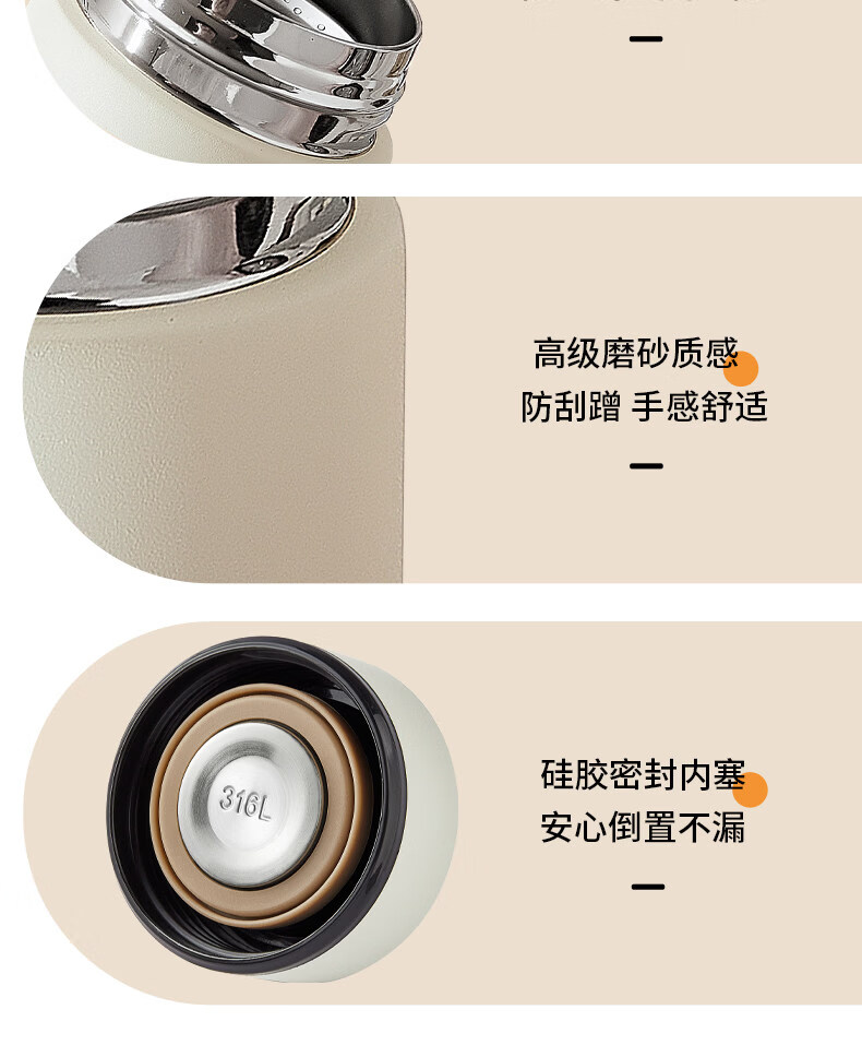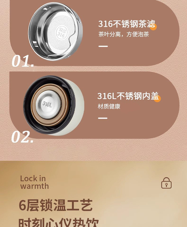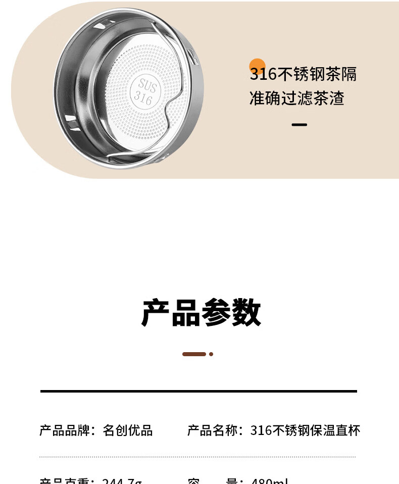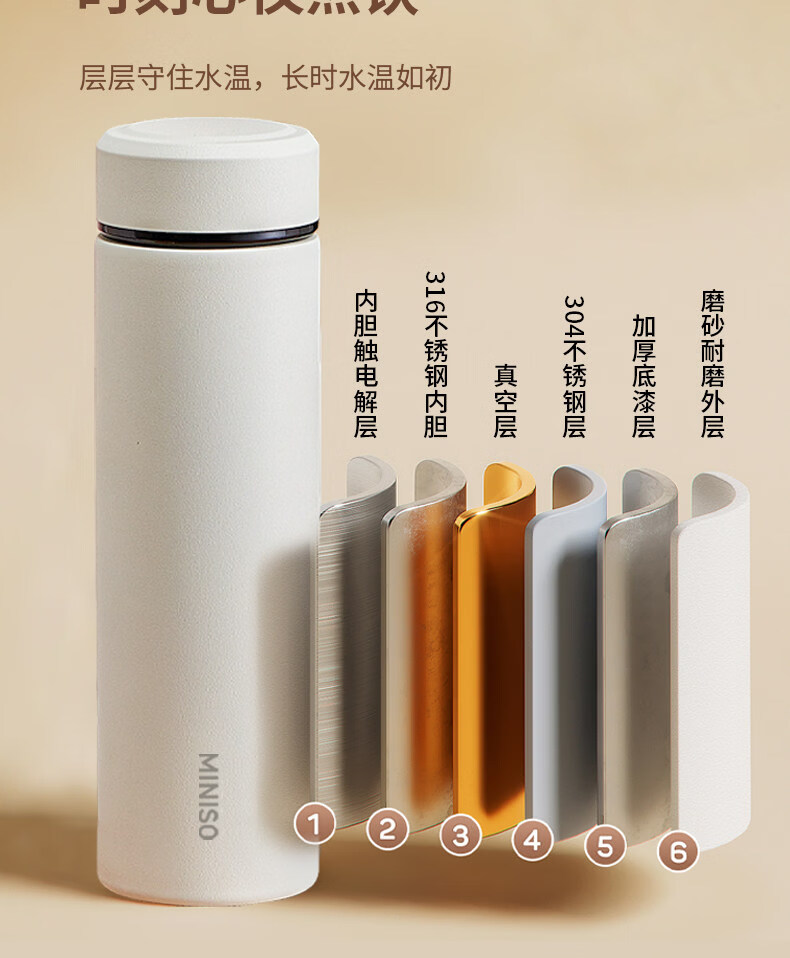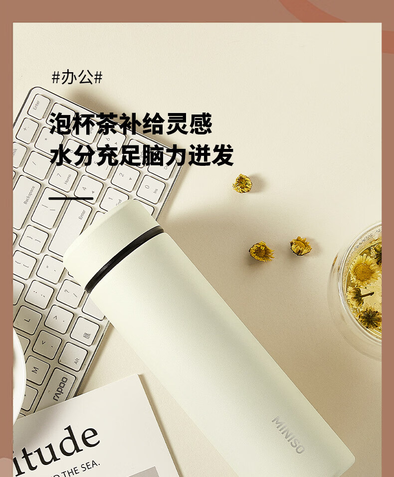 MZXM日本进口品质水杯男款女生可携式茶杯子不锈钢学生保温杯 【温显款】气质黑480ML【316内胆】+升级杯盖+升级316