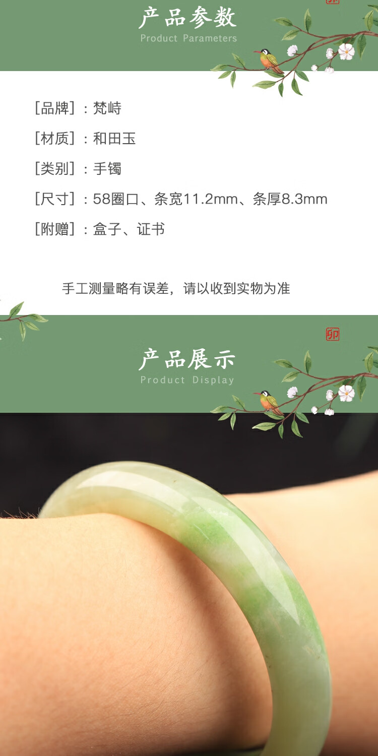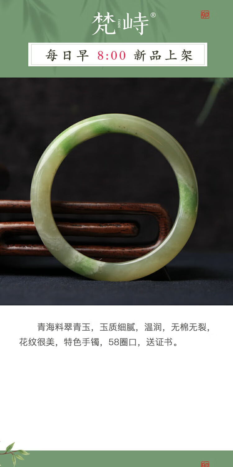 梵峙和田玉手镯58翠青玉青海料送证书玉质细腻 58