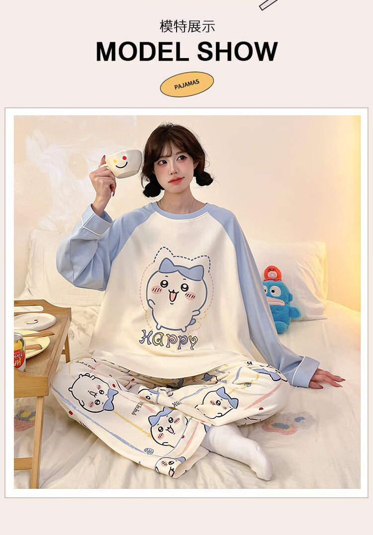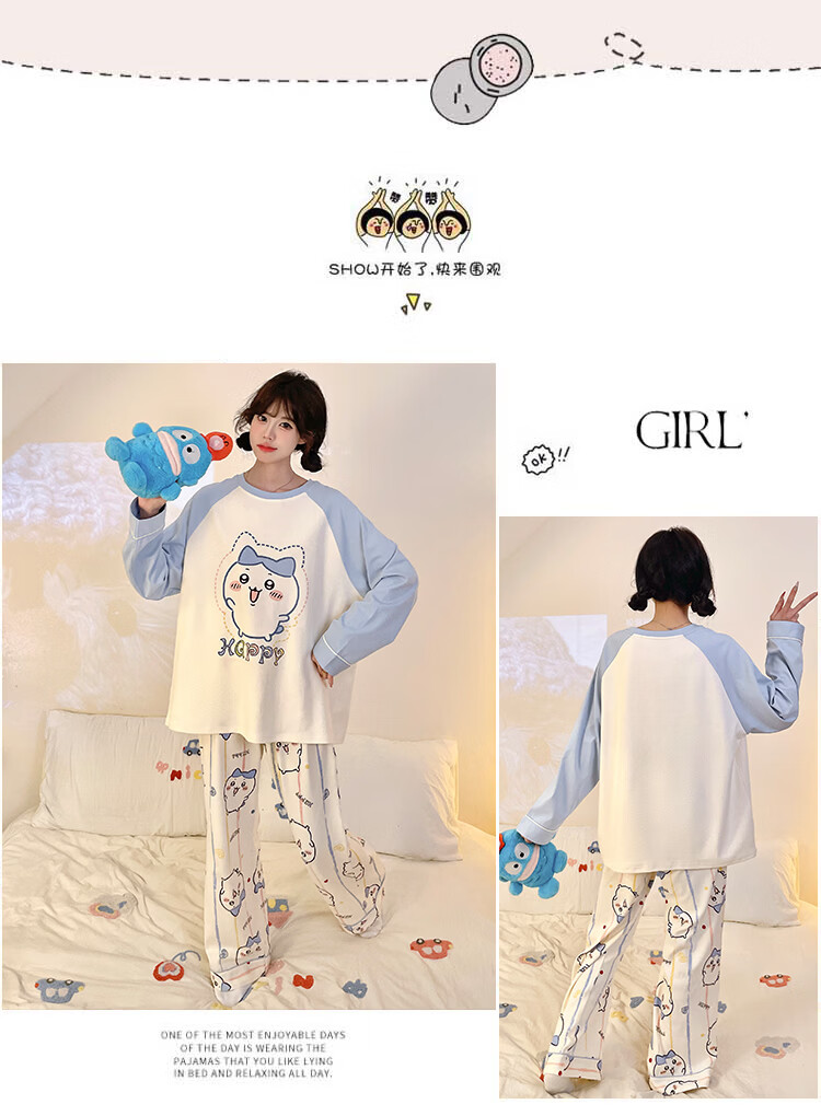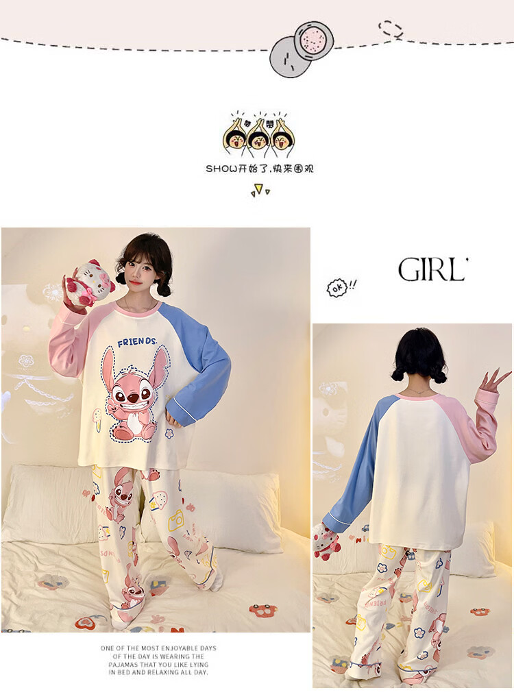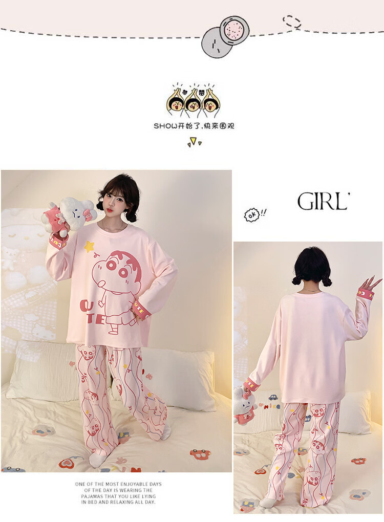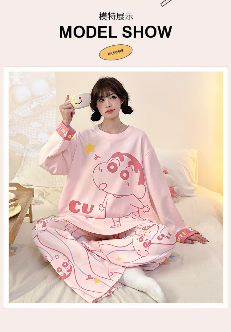 萧淑妃睡衣女春秋季ins风卡通蜡笔小新可爱少女学生大码纯棉家居服套装 星星人 3XL